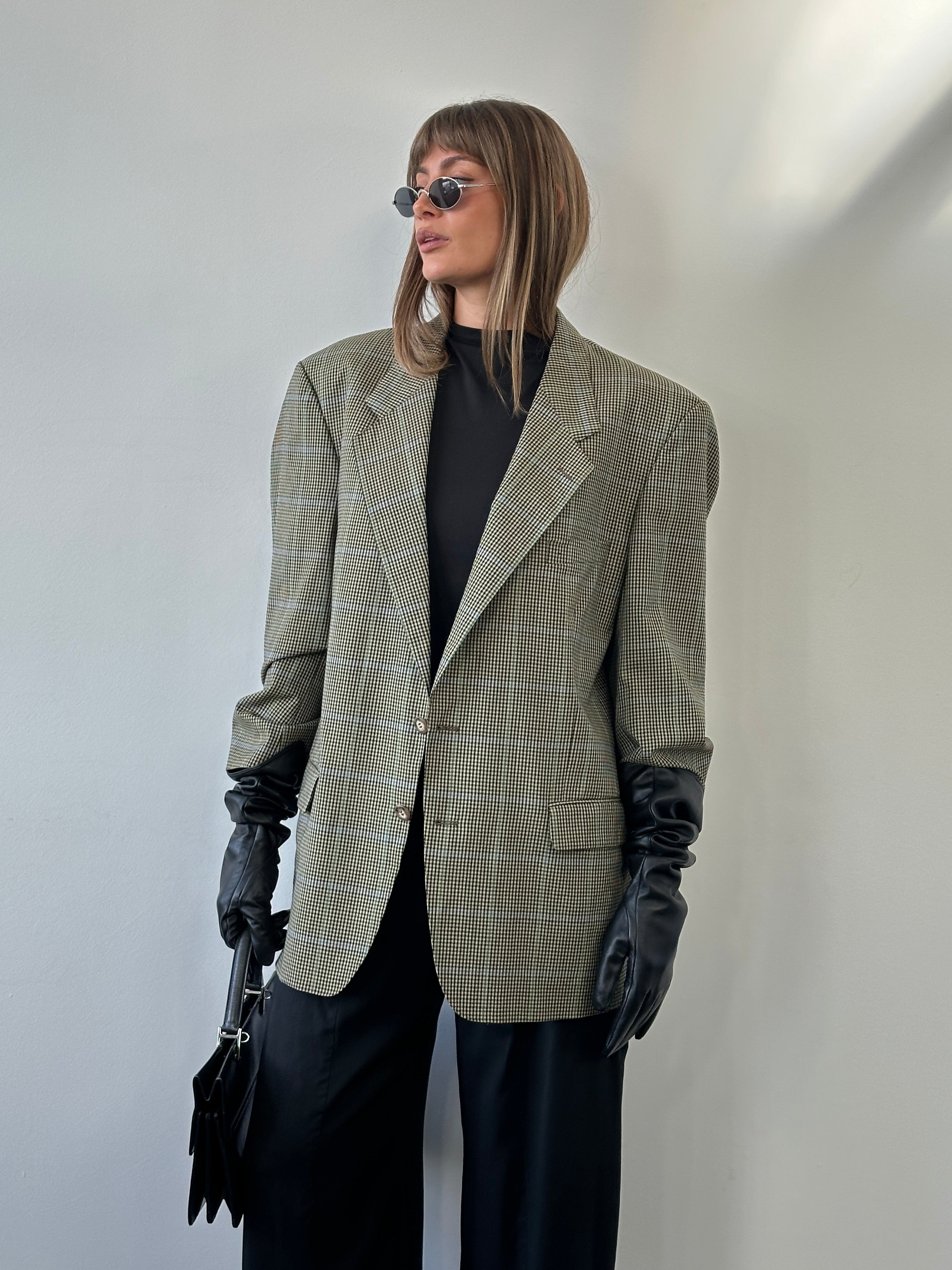Yves Saint Laurent Pour Homme 1990s Wool Single Breasted Check Blazer - 44R/XL