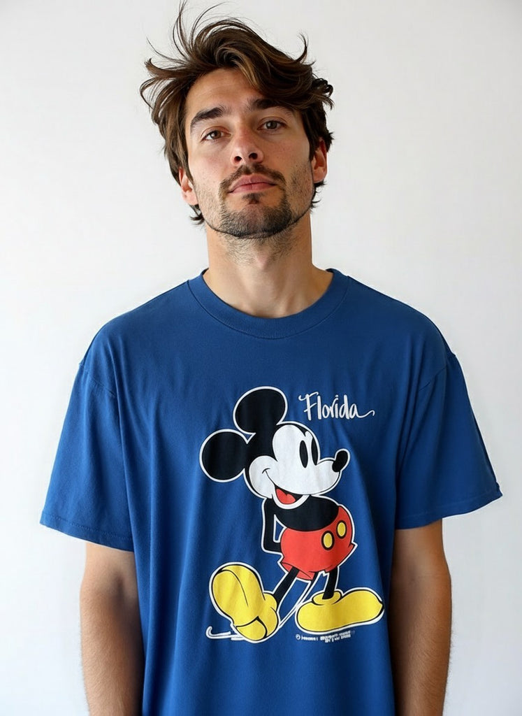 Original Vintage 1980'S Mickey Mouse Blue T Shirt UK - M