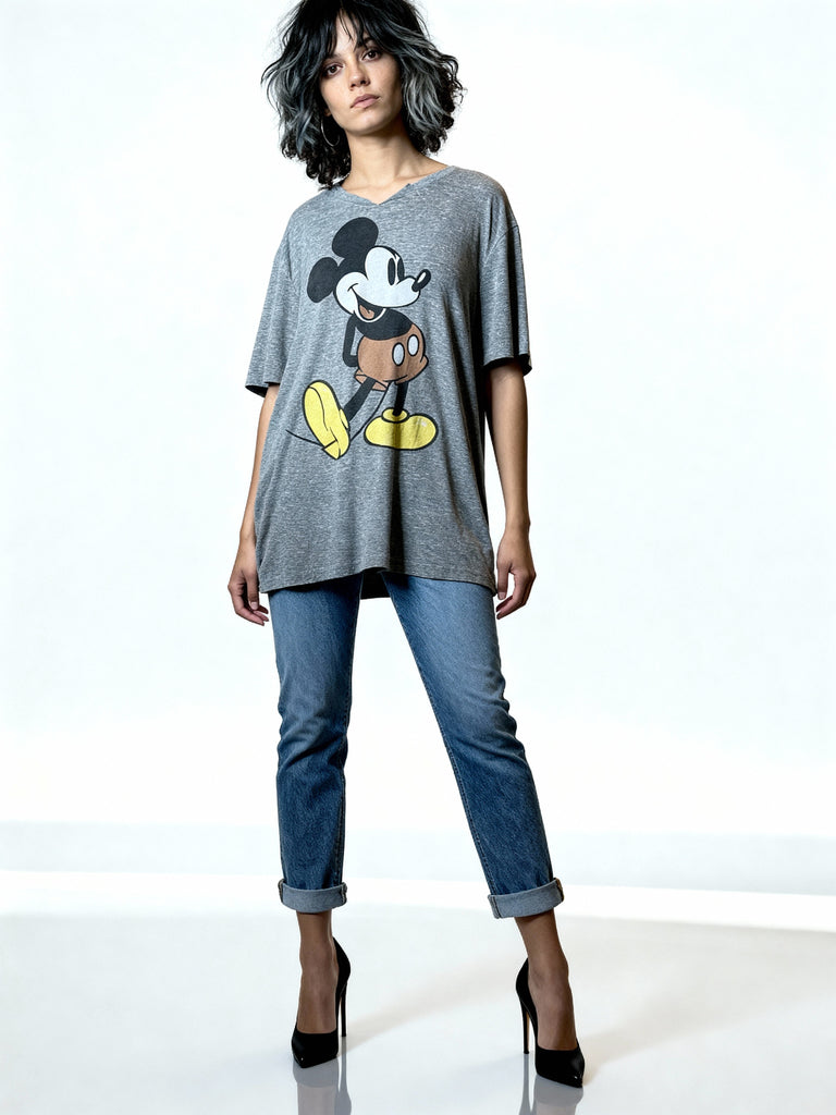 Original 1990's Vintage Disney Mickey Mouse Grey T Shirt UK 8 - 14