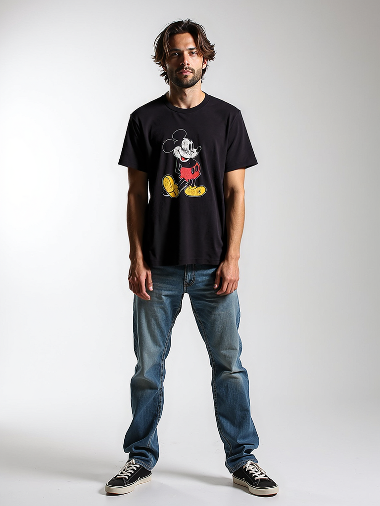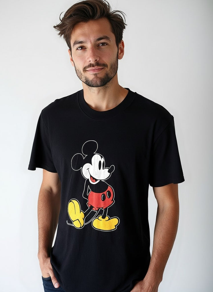 Original Vintage 1980's Mickey Mouse Black T Shirt UK 8 - 12