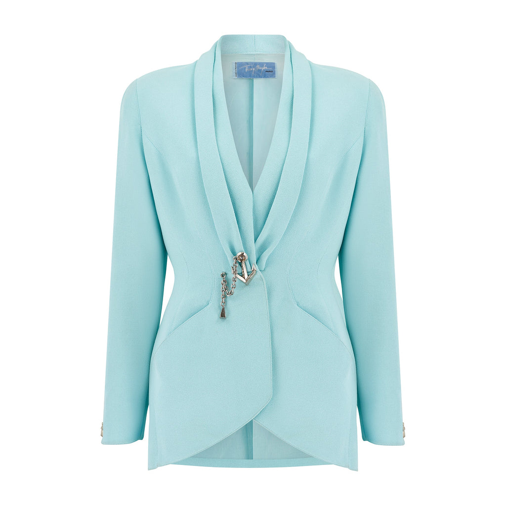 1990s Thierry Mugler Turquoise Jacket with Anchor Motif