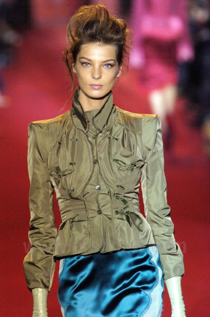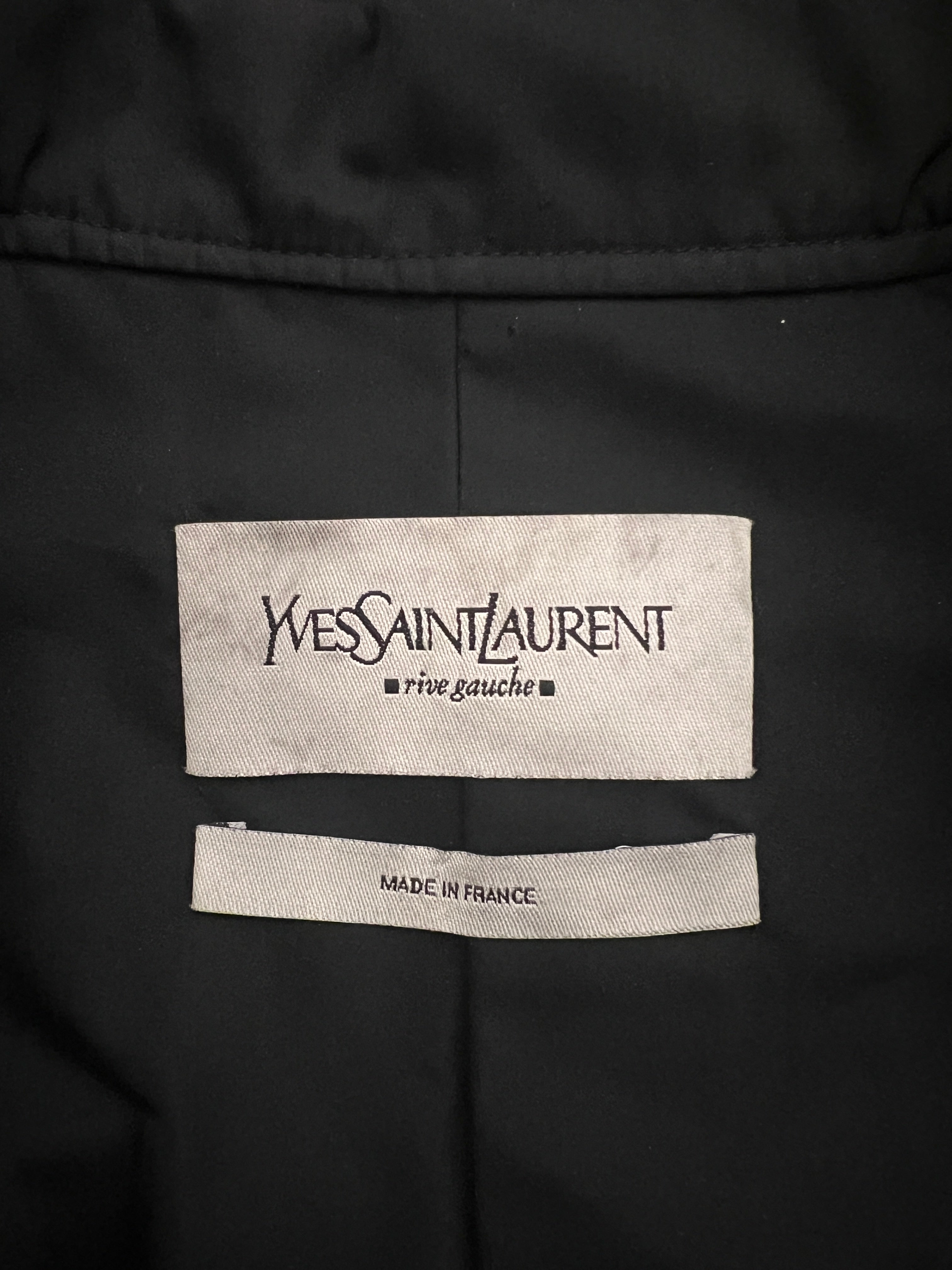 Tom Ford stepped down from his role as Creative Director at both Gucci and Yves Saint Laurent in 2004. Made in France, this jacket was created by Ford in 2004 for the final show he designed for the house of Yves Saint Laurent. This exact design walked the runway in green, pink and grey in Yves Saint Laurent’s lauded Fall 2004 show.