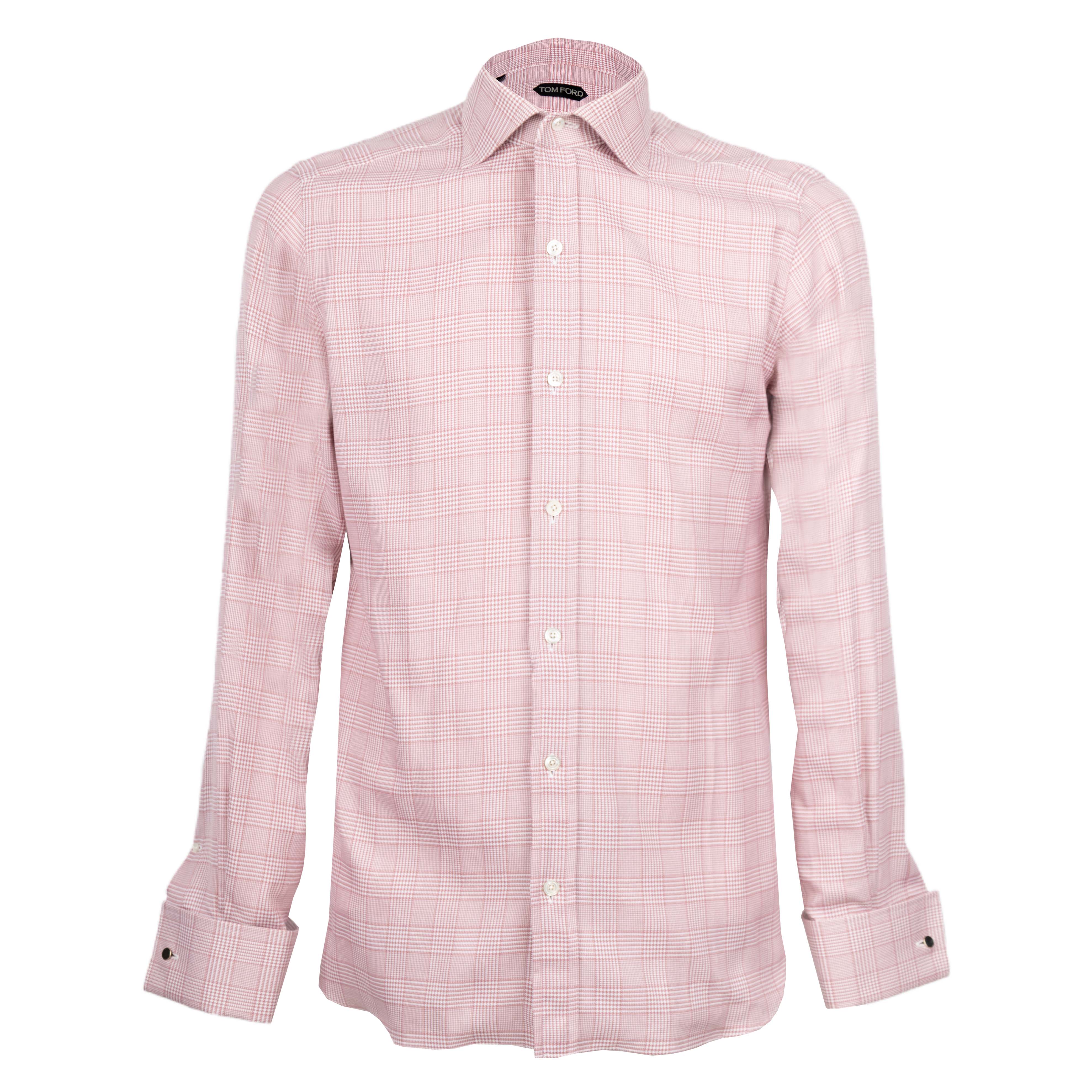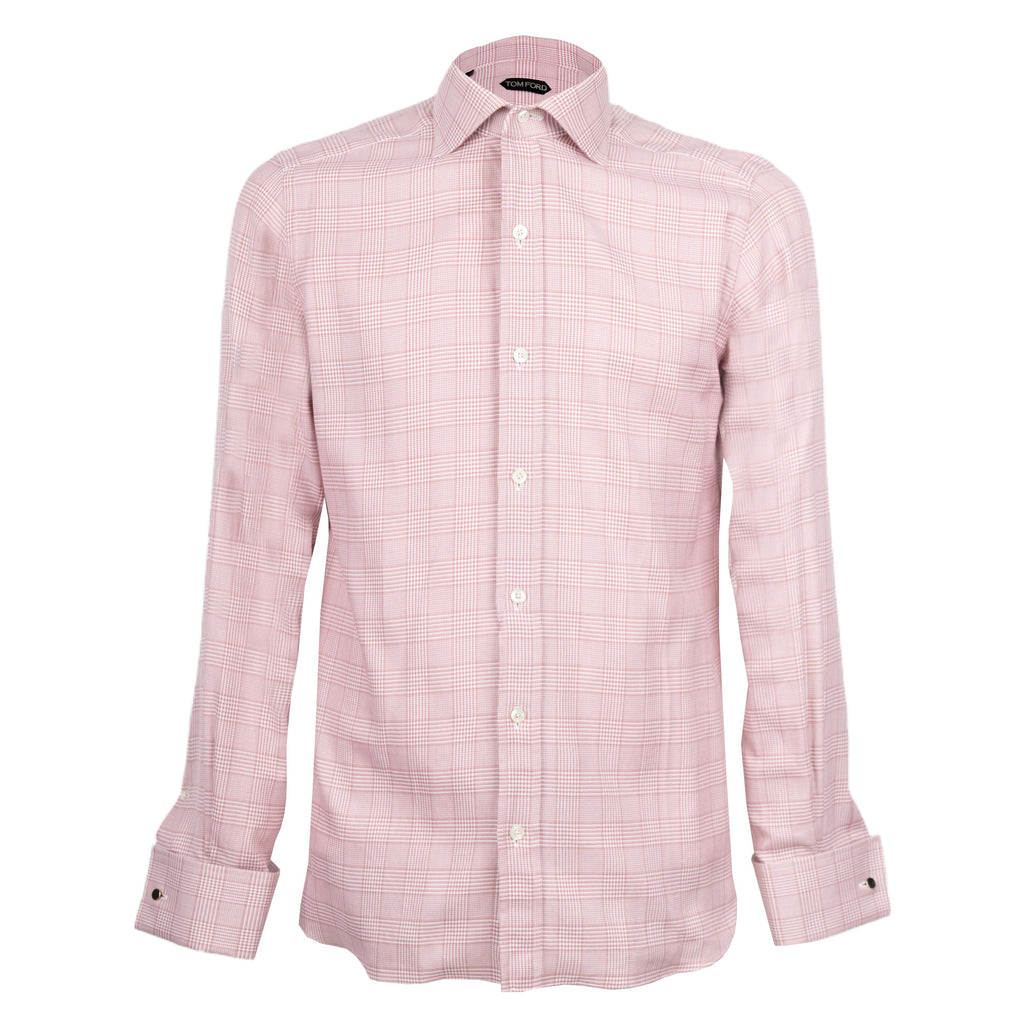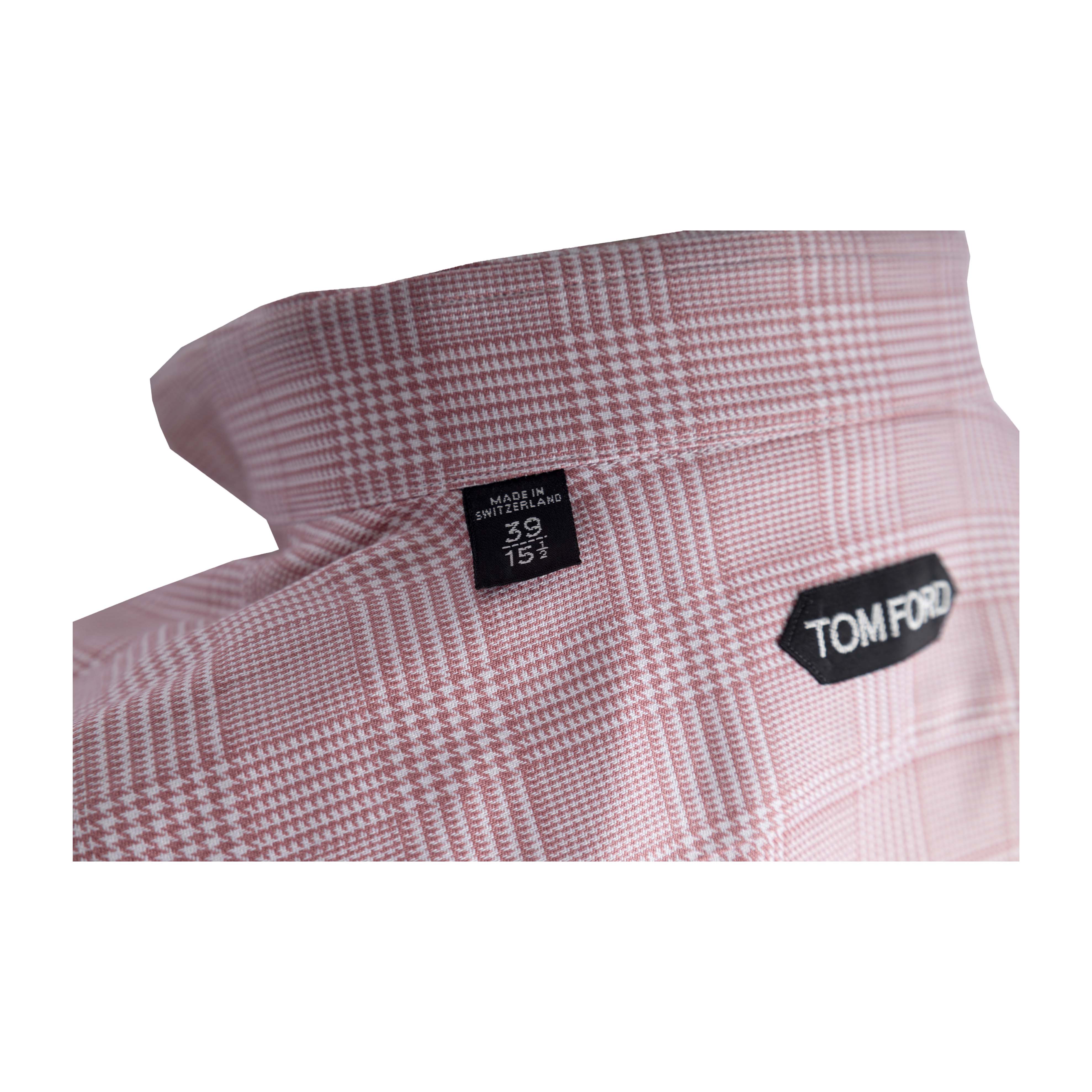 Tom Ford red pied de poule shirt featuring a classic button fastening, crafted for a refined and sophisticated look with impeccable tailoring.