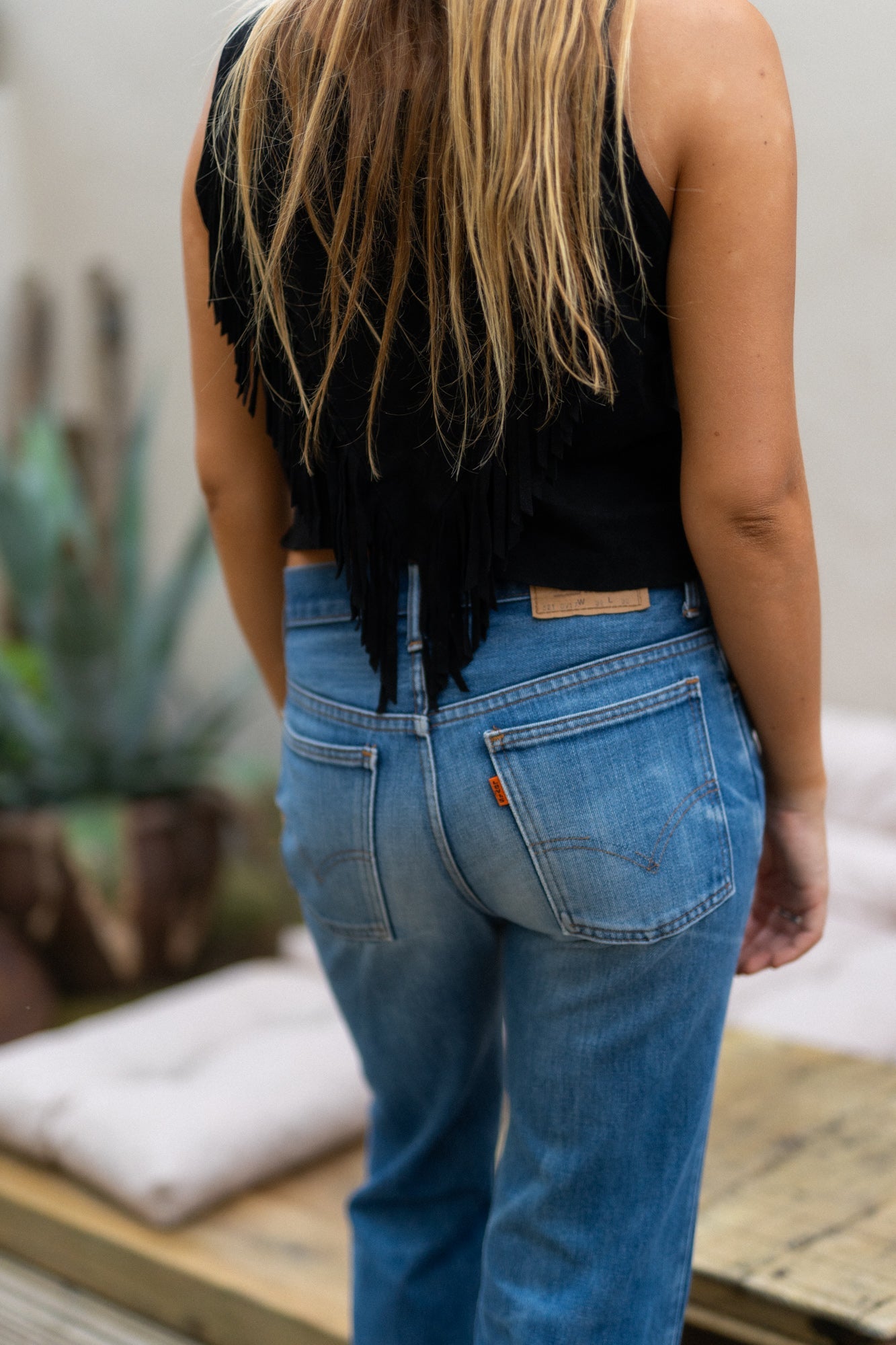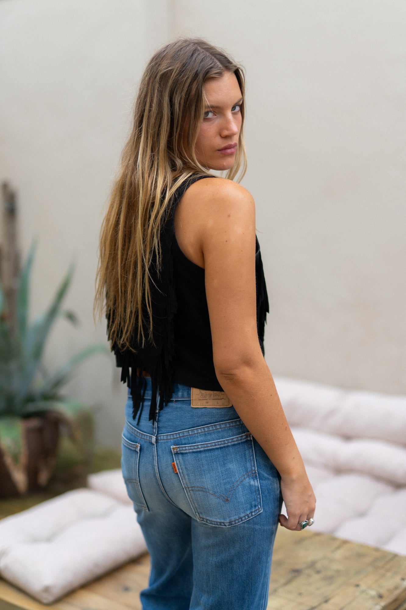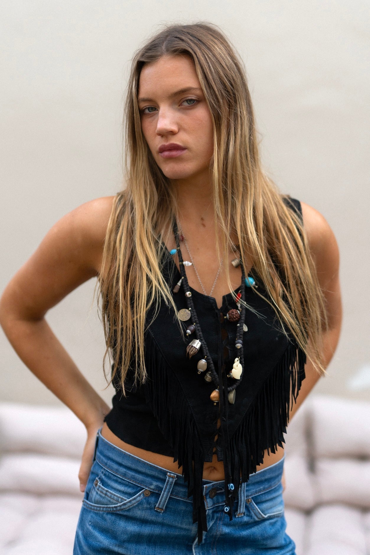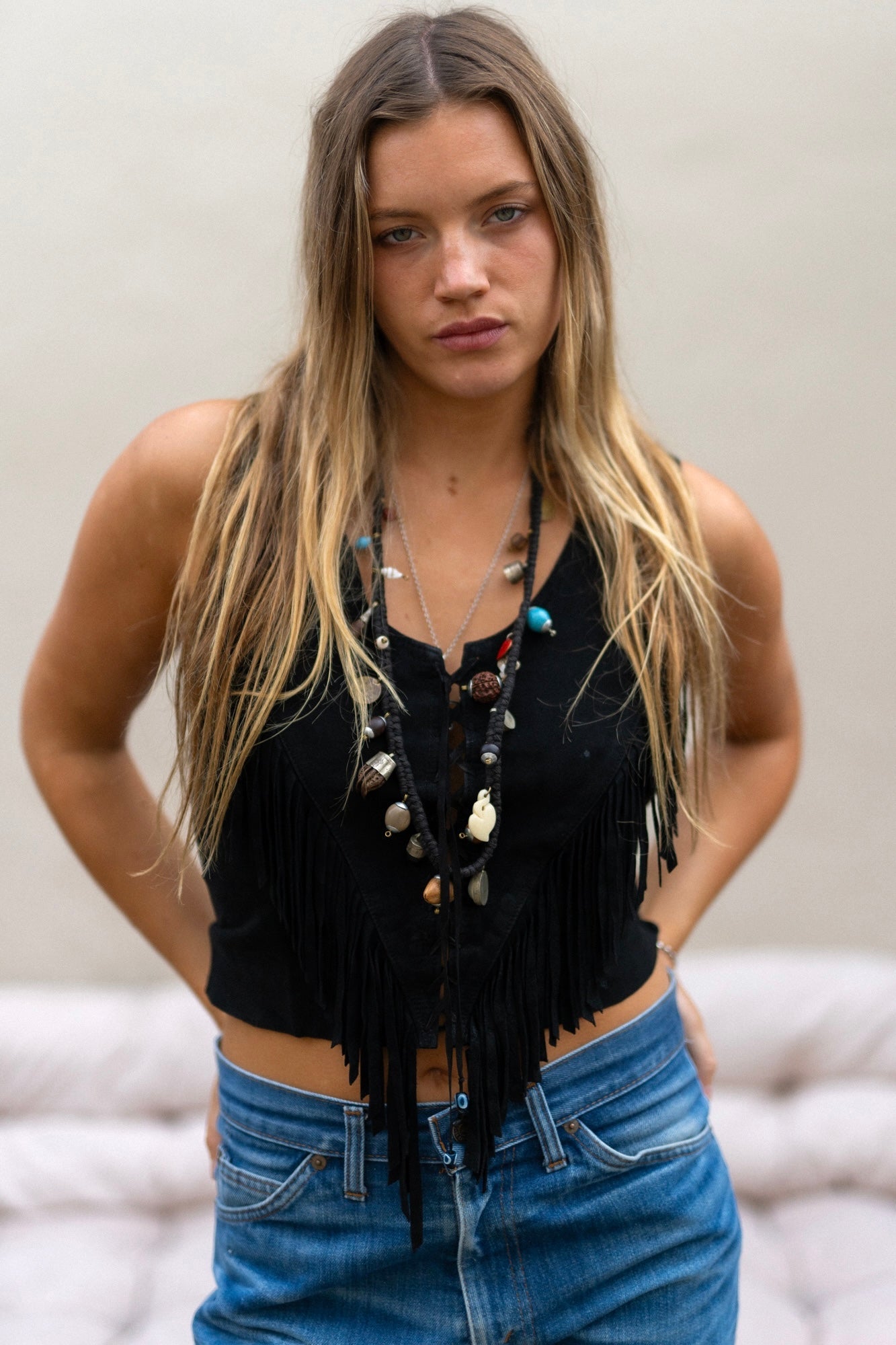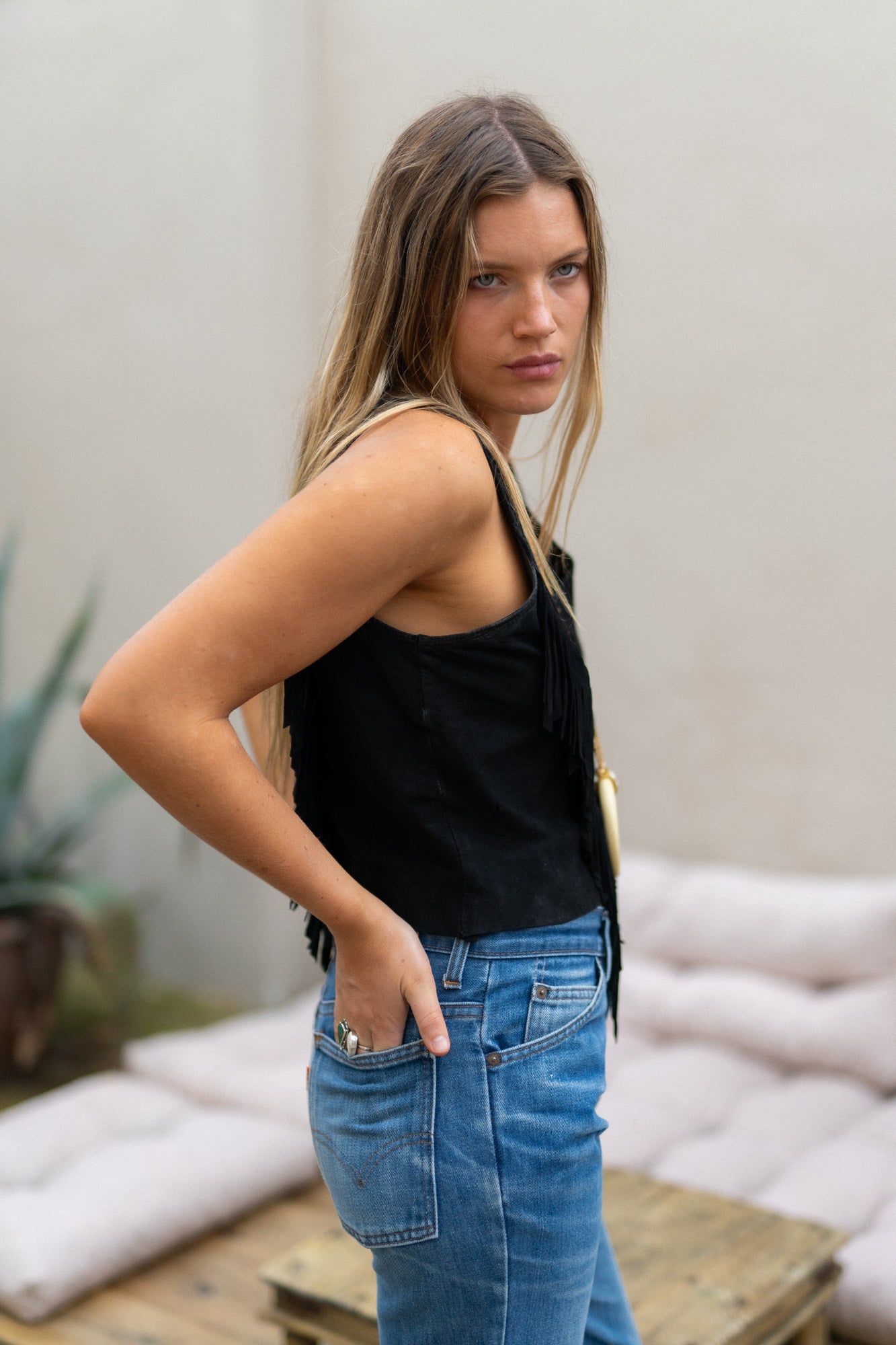 BLACK SUEDE FRINGE TOP