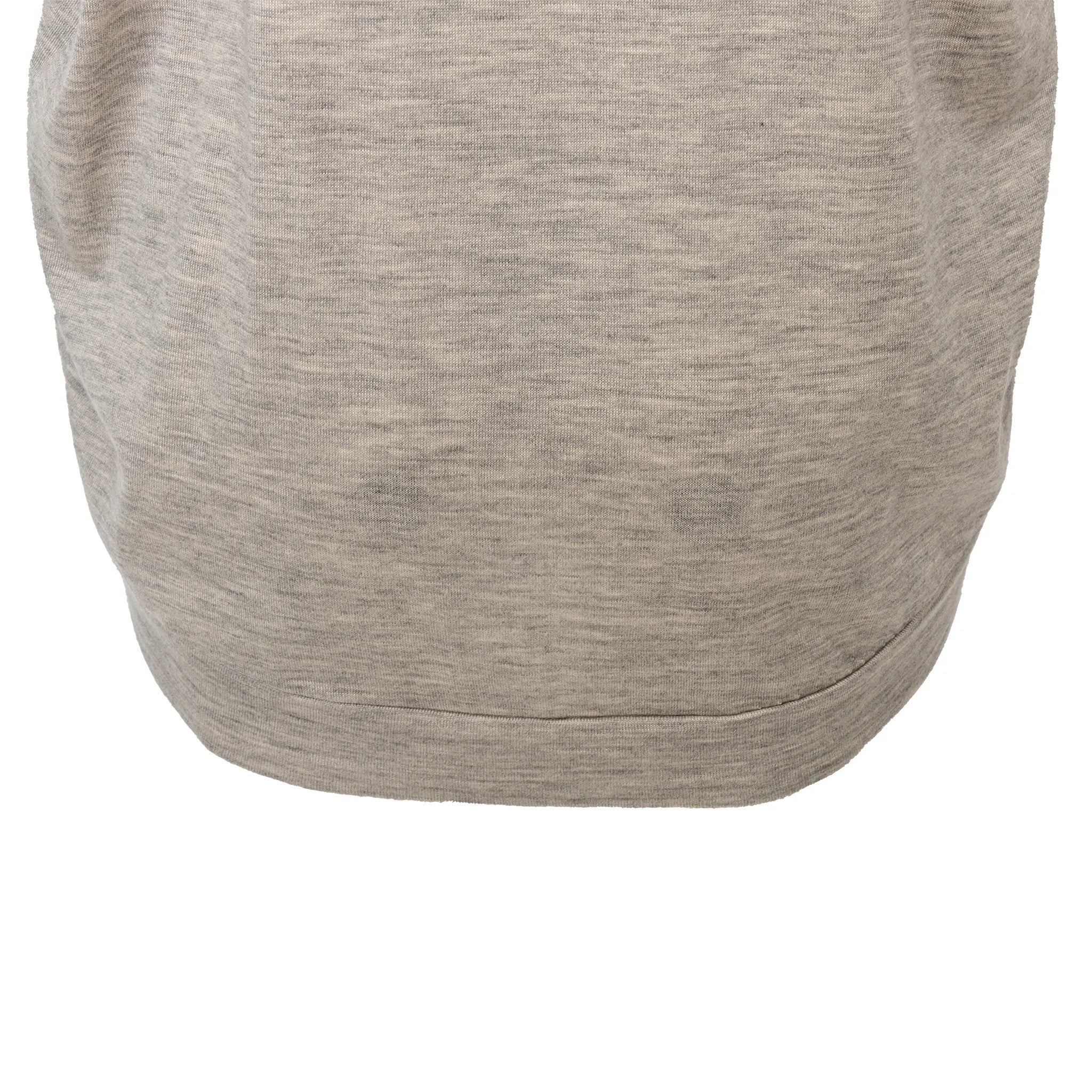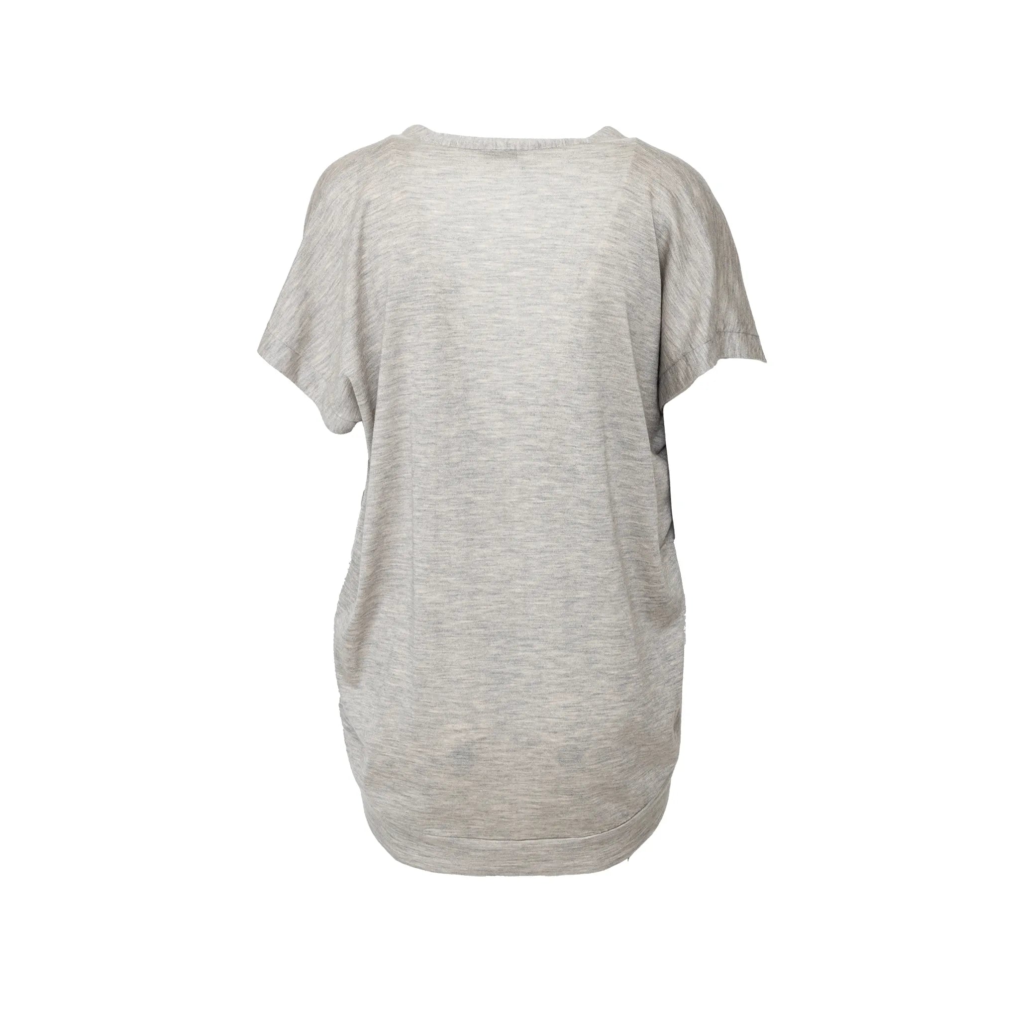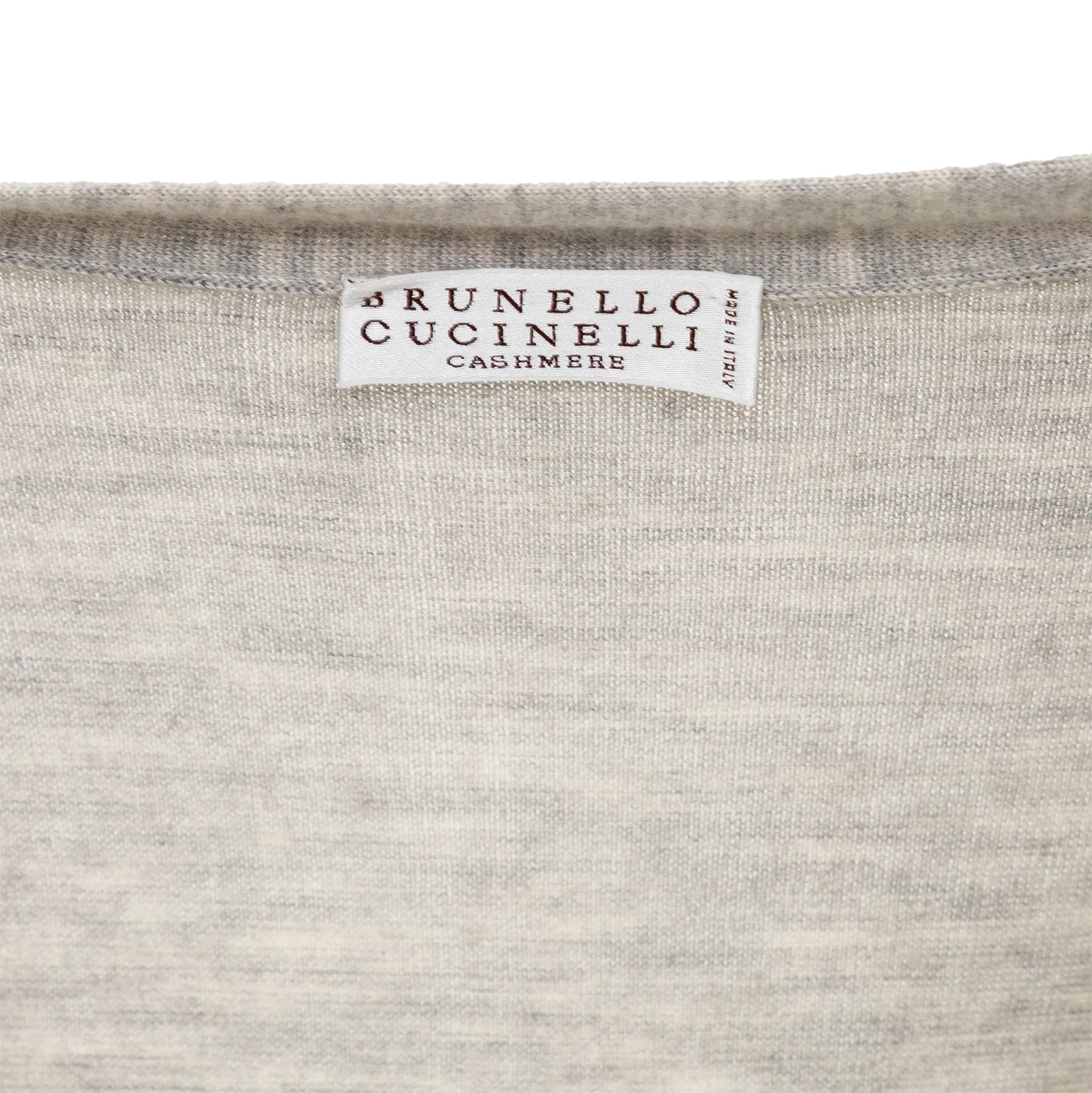 Brunello Cucinelli light grey top in a luxe cashmere-silk blend. Features a deep V-neck, relaxed fit, and subtly shorter front for a casual silhouette.
