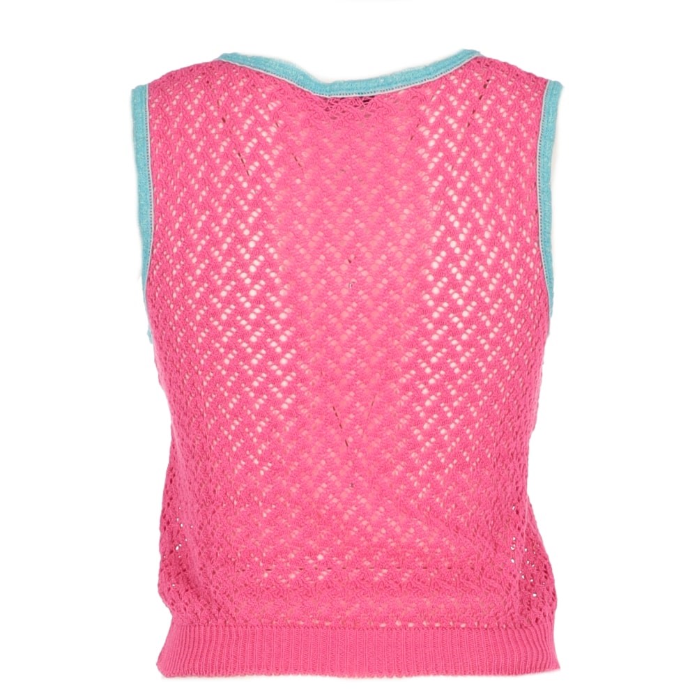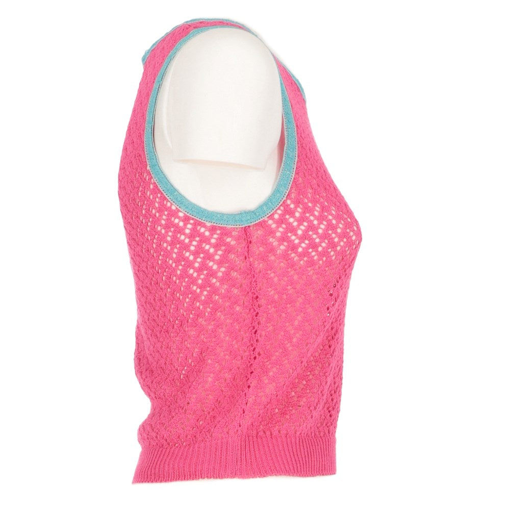 Dolce&Gabbana 2000s fuchsia perforated cotton sleeveless top. Contrasting turquoise edges.