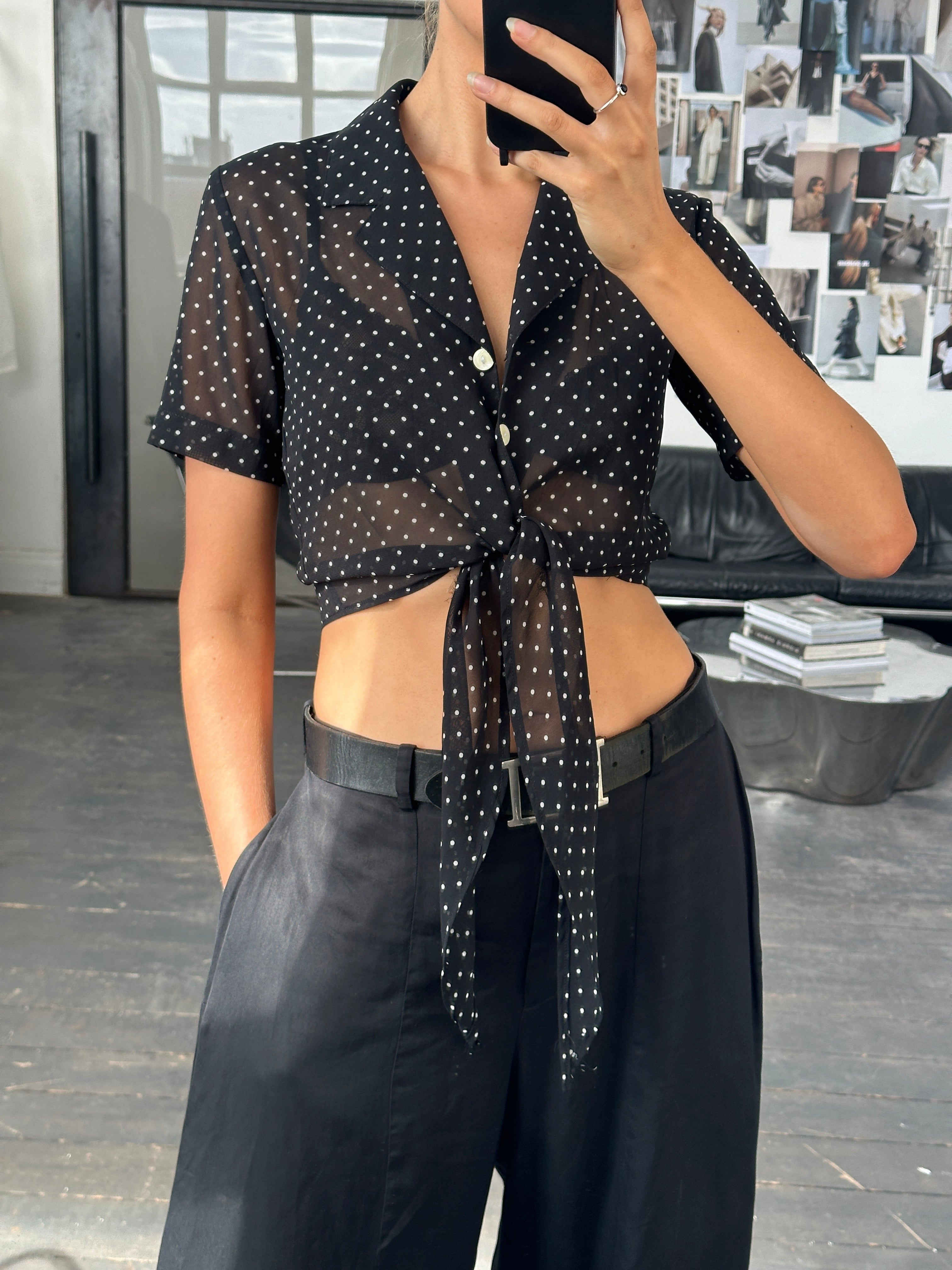 Italian Vintage 2000s Polkadot Sheer Tie Top - S