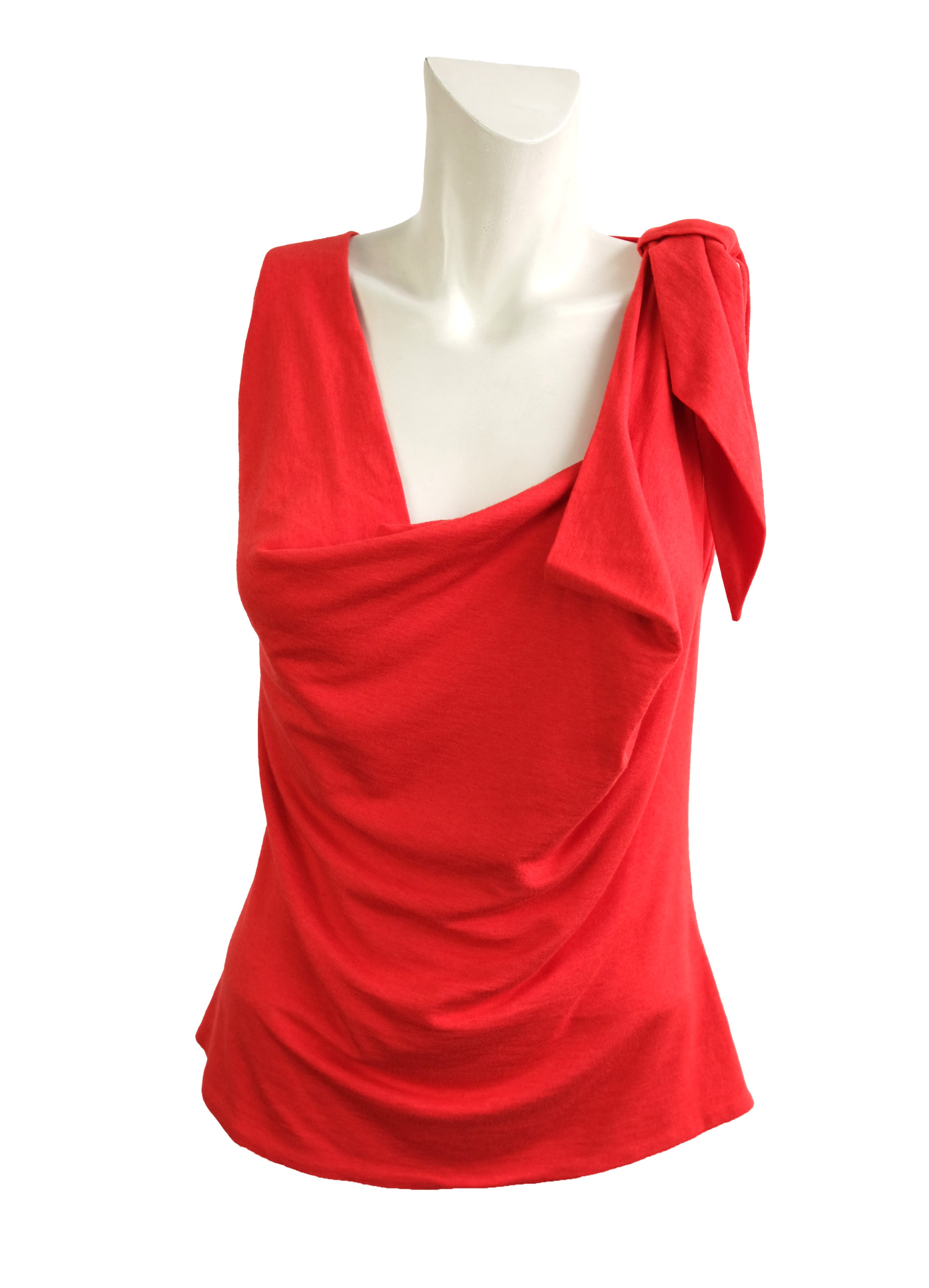 A vibrant sleeveless top by Vivienne Westwood Red Label in fiery red jersey.