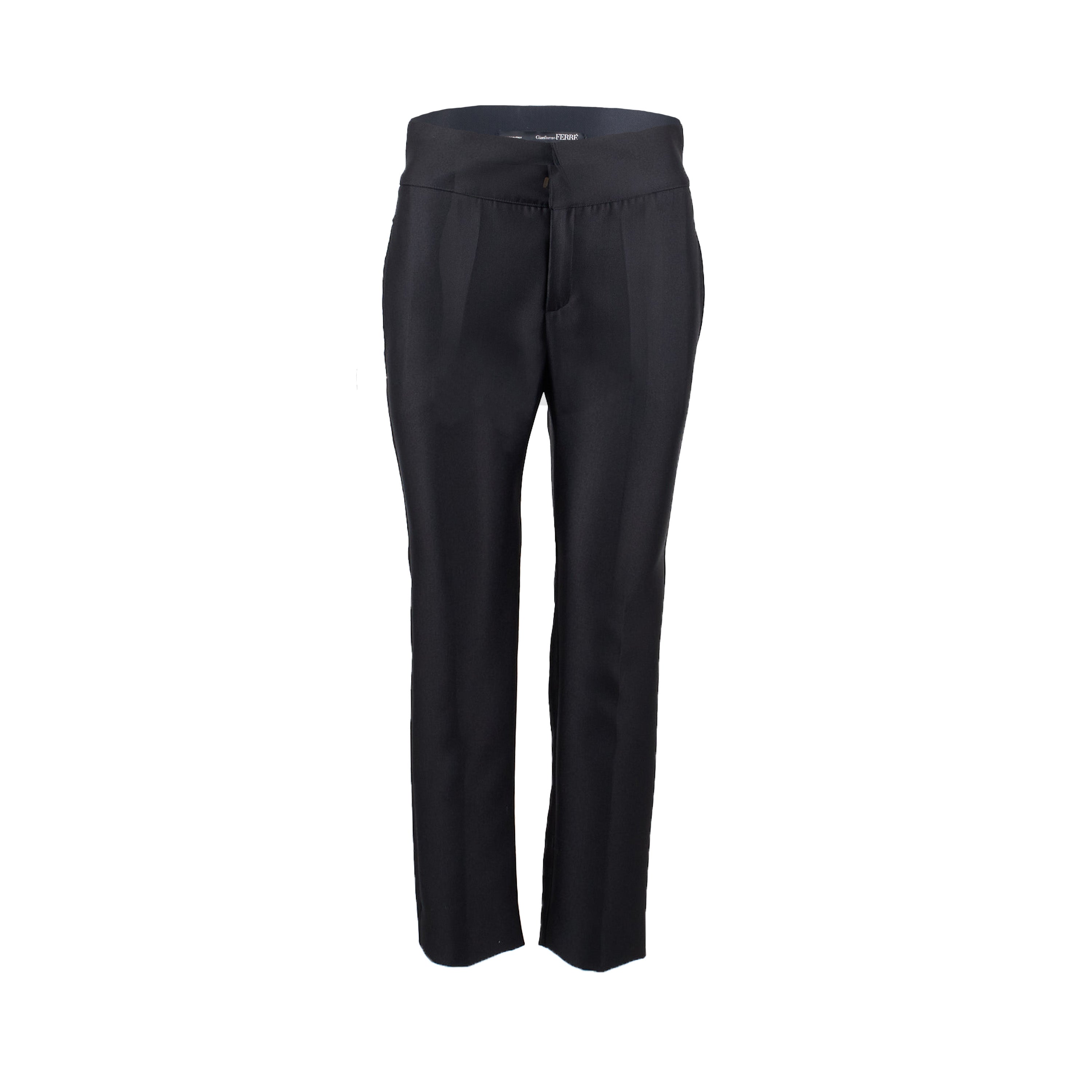 These Gianfranco Ferré Tailored Pants are crafted from luxurious silk and feature a high-waisted fit. The tailored look is finished with a wide waist belt and pockets on the back and sides for secure pocket storage. With their elegant silhouette, these pants will elevate all of your smart looks.