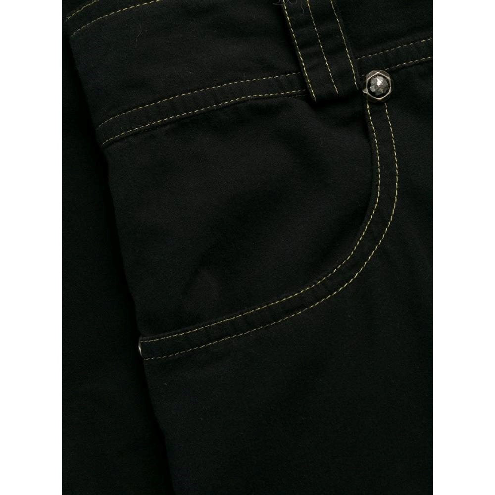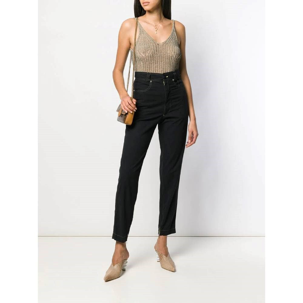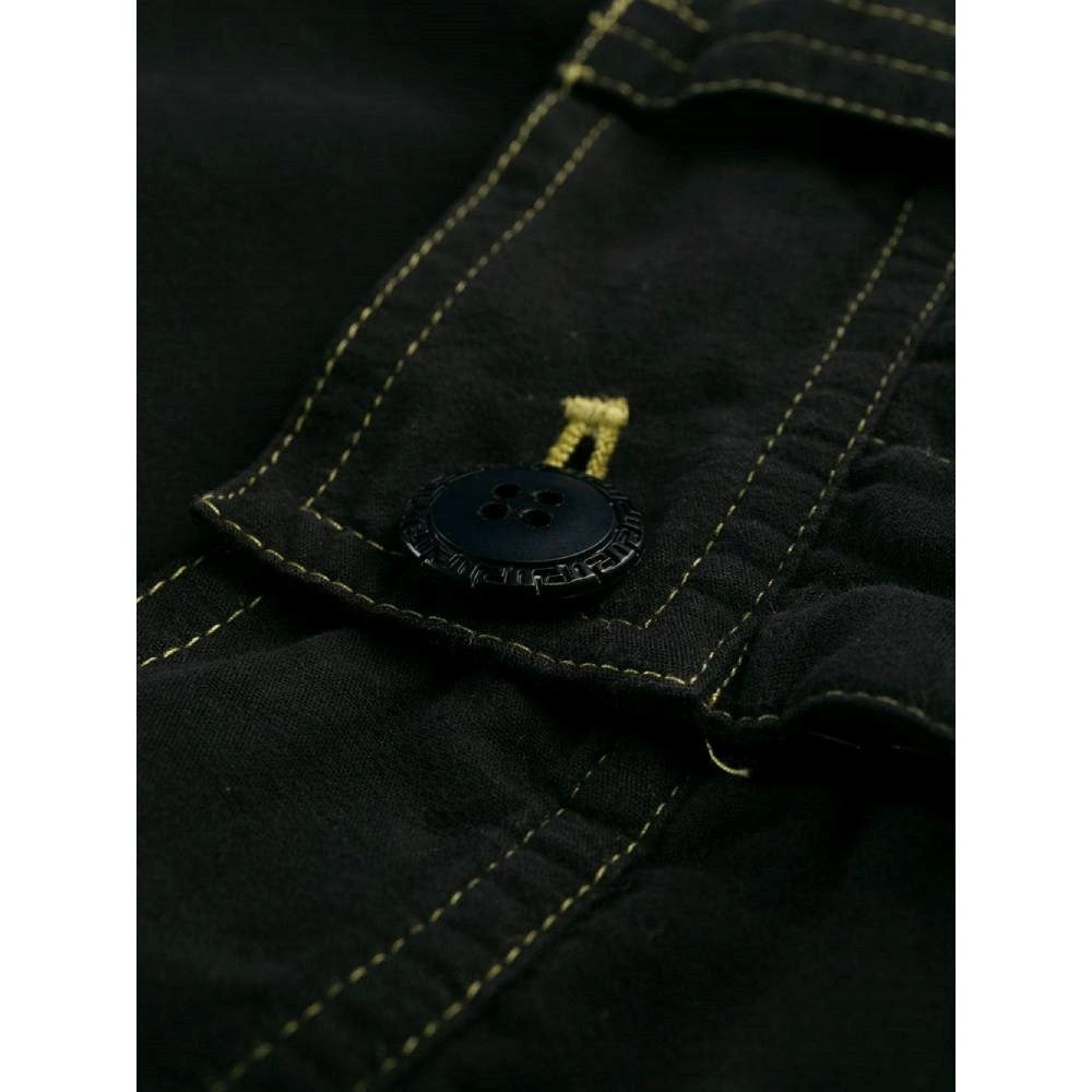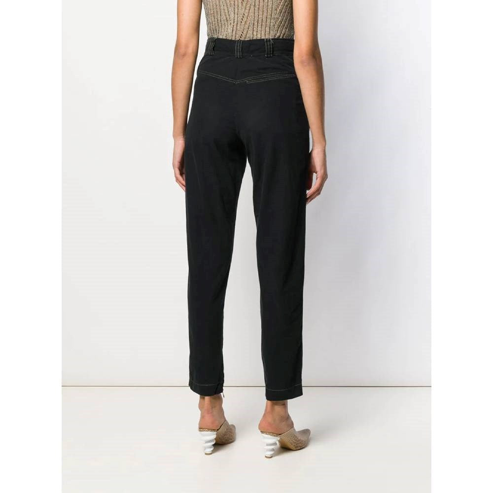 Gianni Versace black cotton 80s high waist trousers with yellow offset seam, two side welt pockets and one on the back. Bottom zipped. Frontal button and hidden zip fastening.