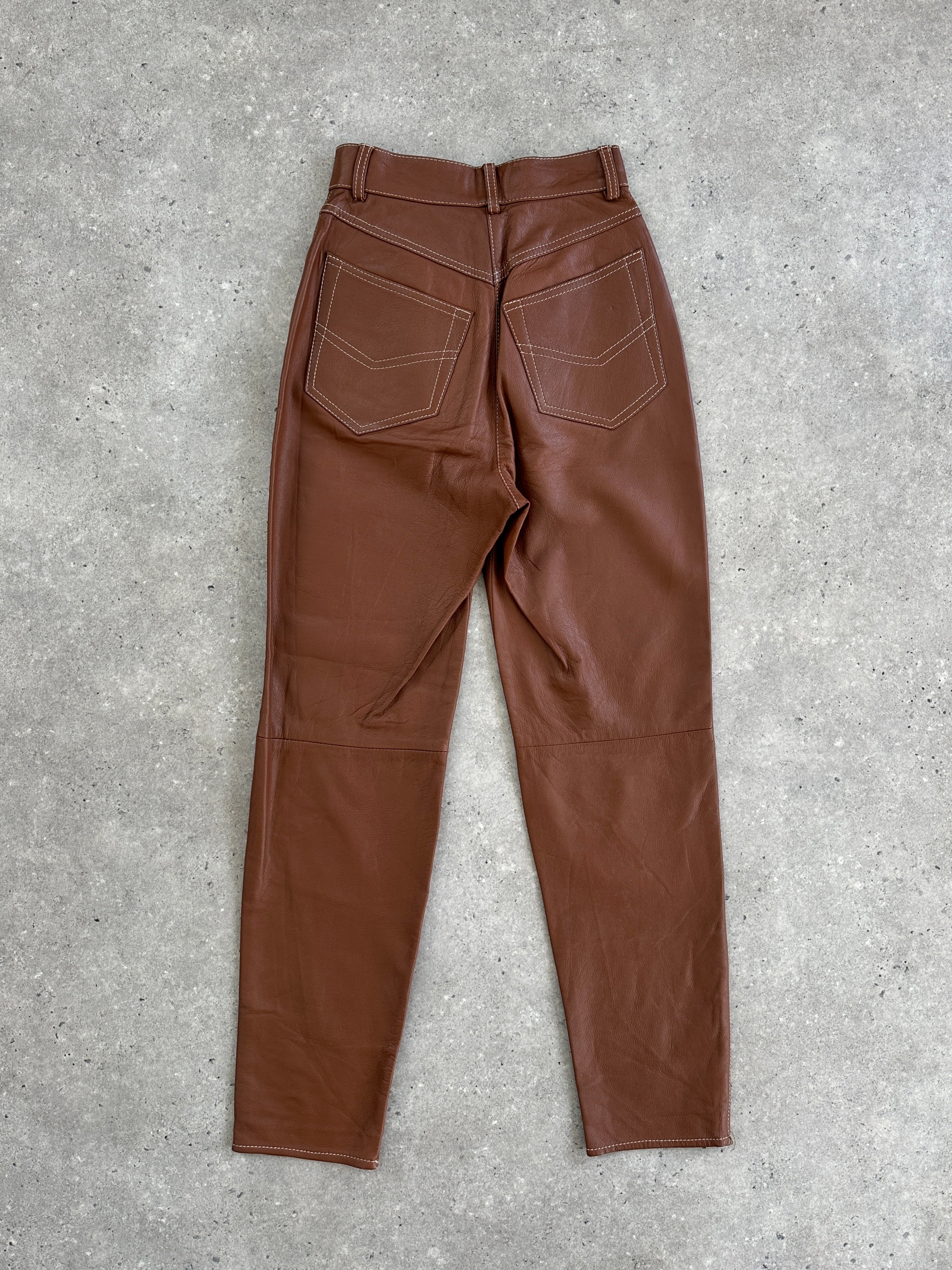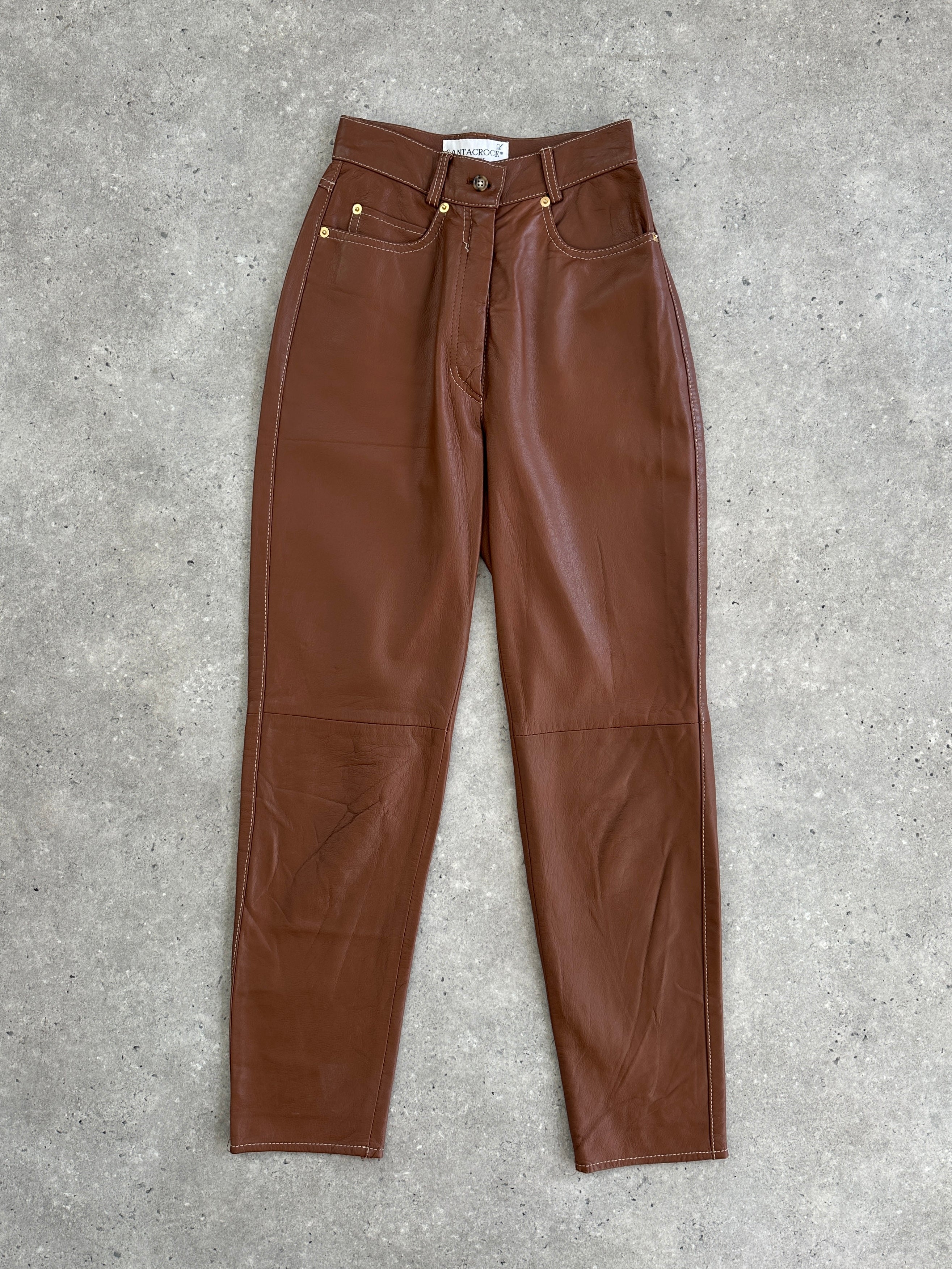 Italian Vintage Tapered Leg High Waisted Leather Trousers - W22
