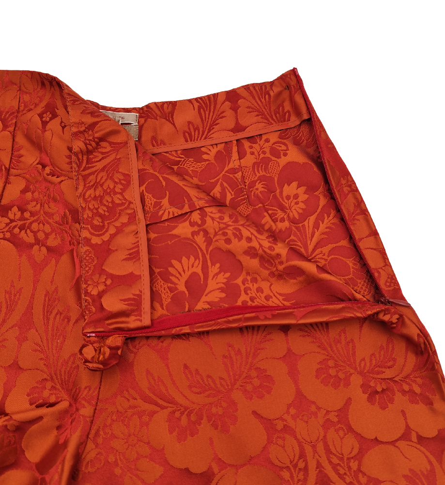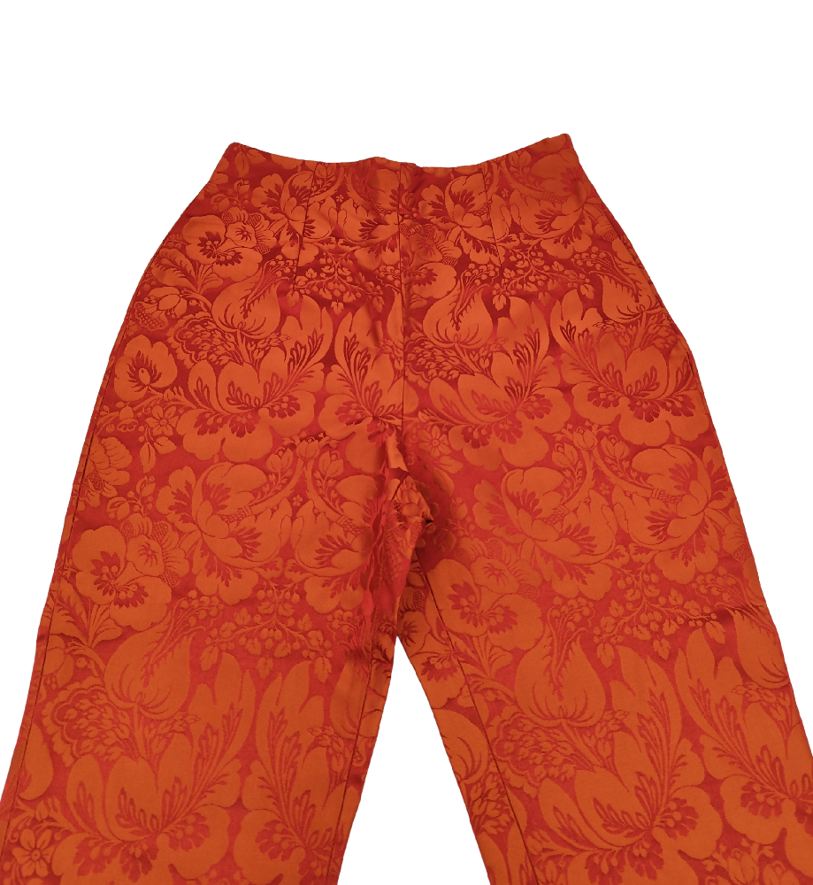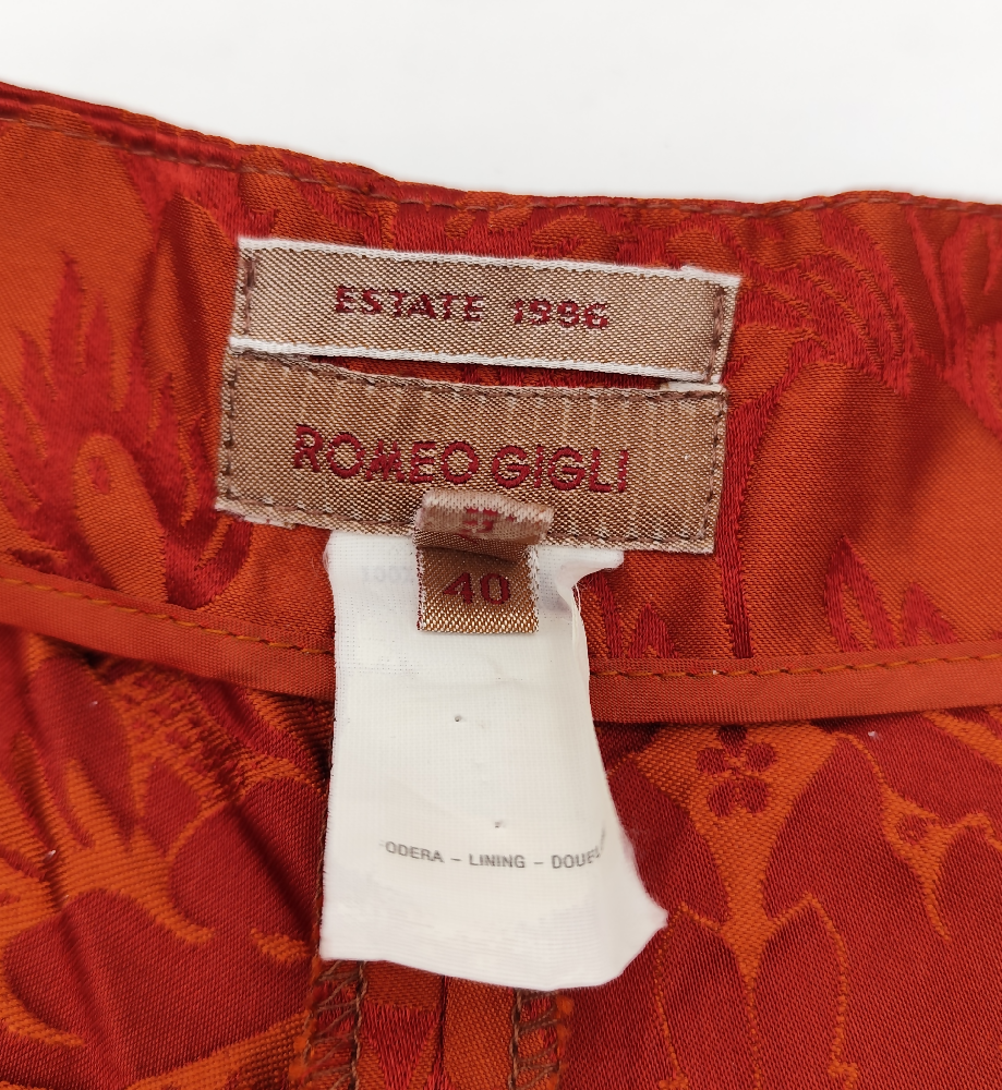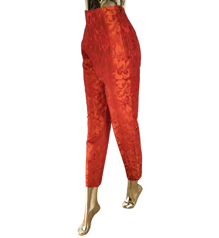 ROMEO GIGLI S/S 1996 RED FLORAL SILK HIGH WAIST PANTS