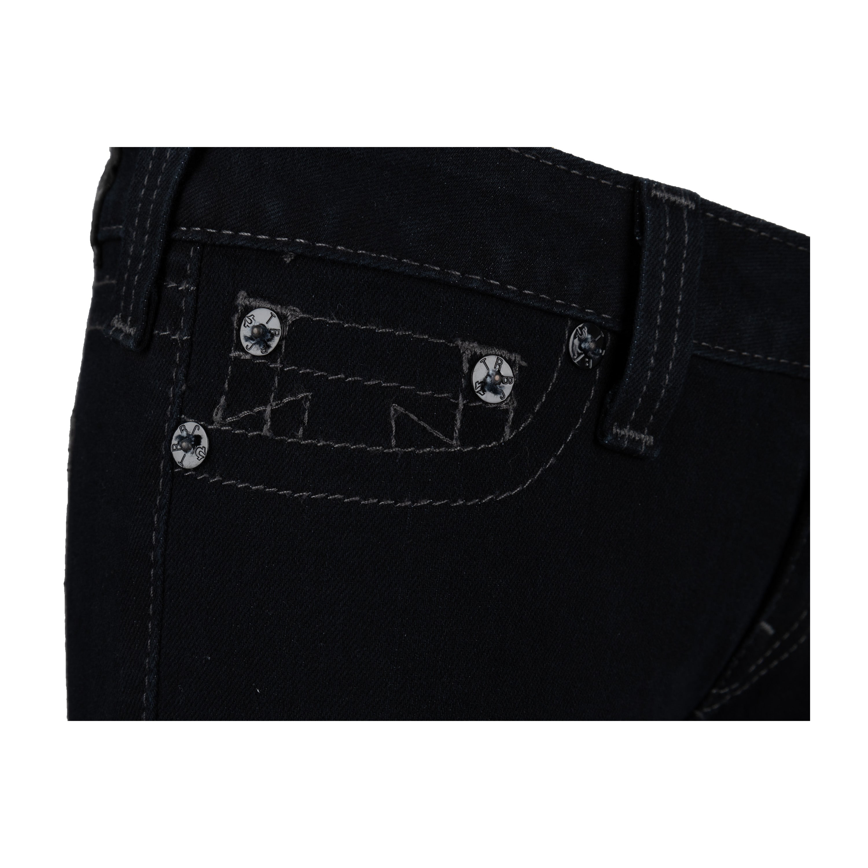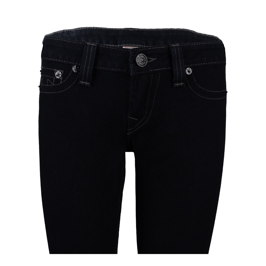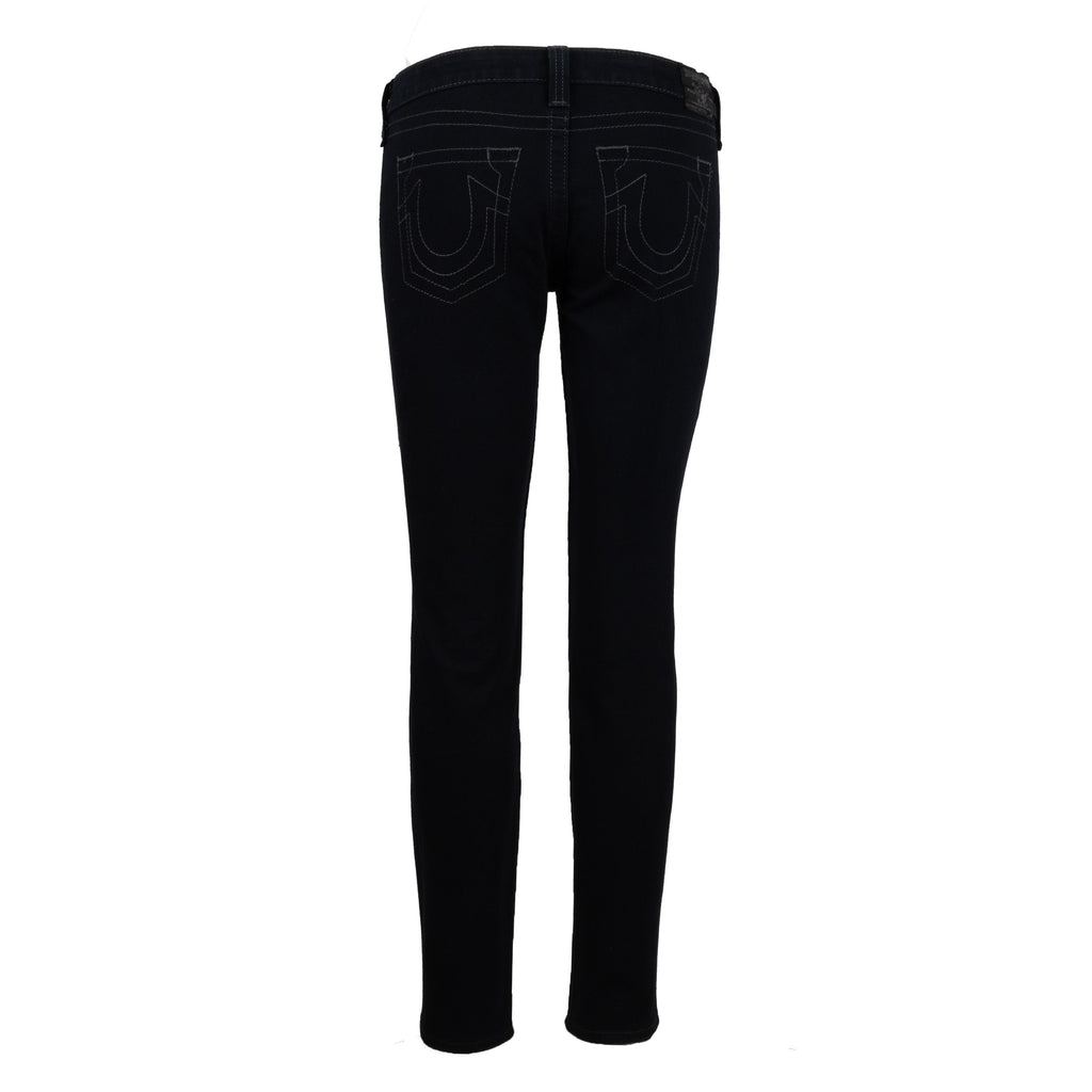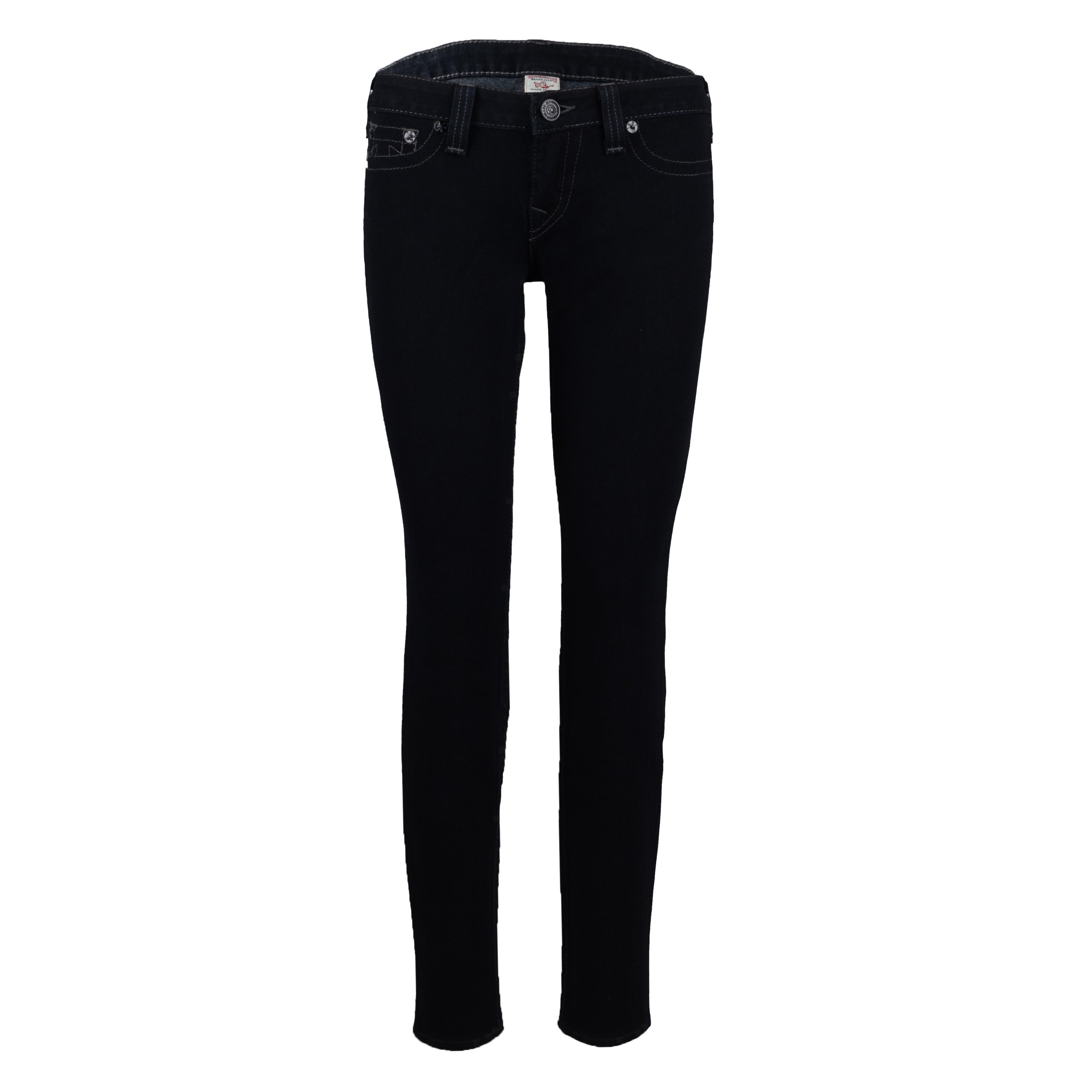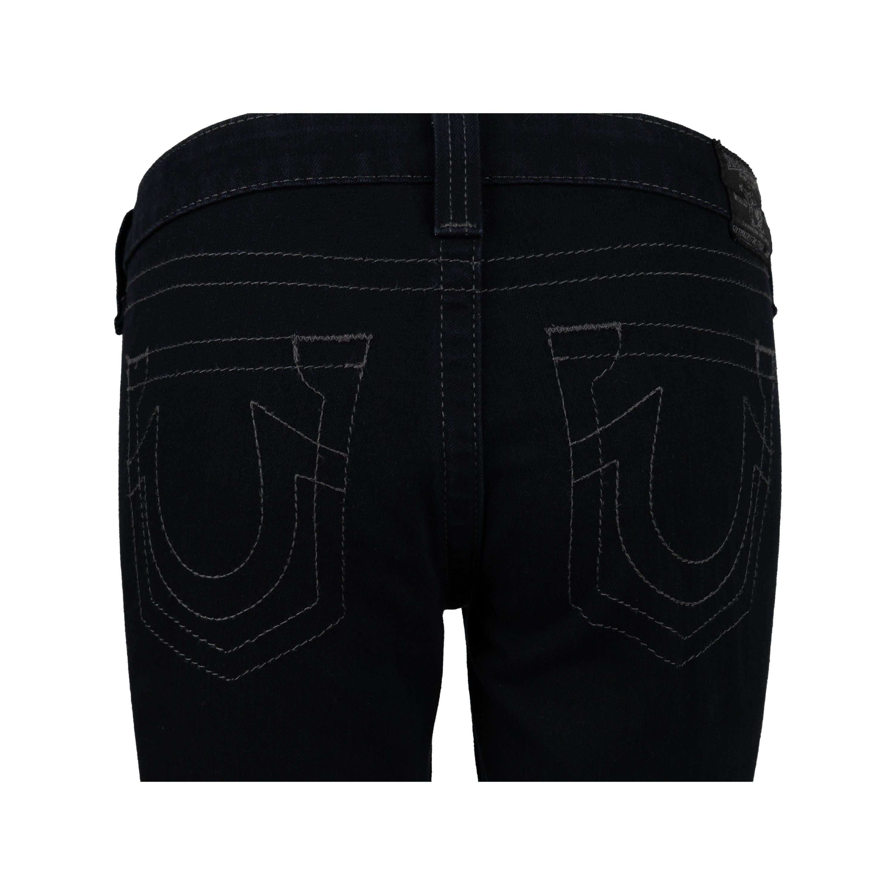 These dark denim jeans by True Religion are crafted with a low waist fit from a blend of cotton and elastane. The combination ensures the perfect fit, providing maximum comfort and stretchability. Skinny fit with a tonal stitch detailing that replicates the shape of a pocket - without any real pockets.