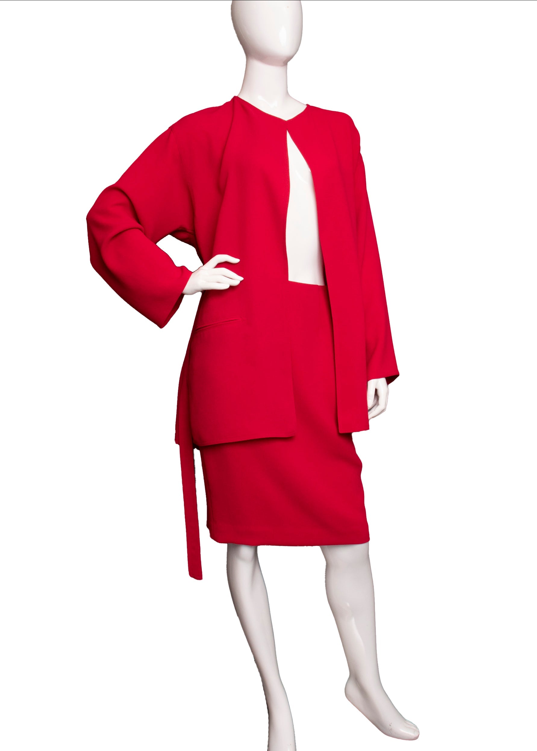 Emanuel by Emanuel Ungaro Red Jacket and Skirt Set.