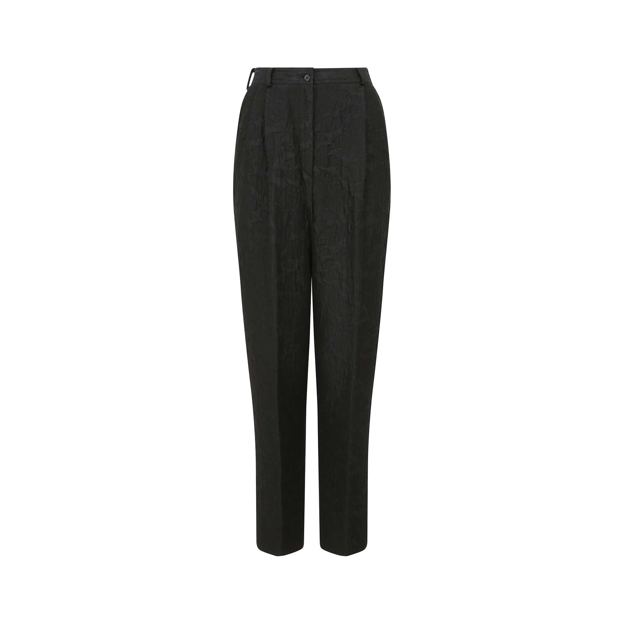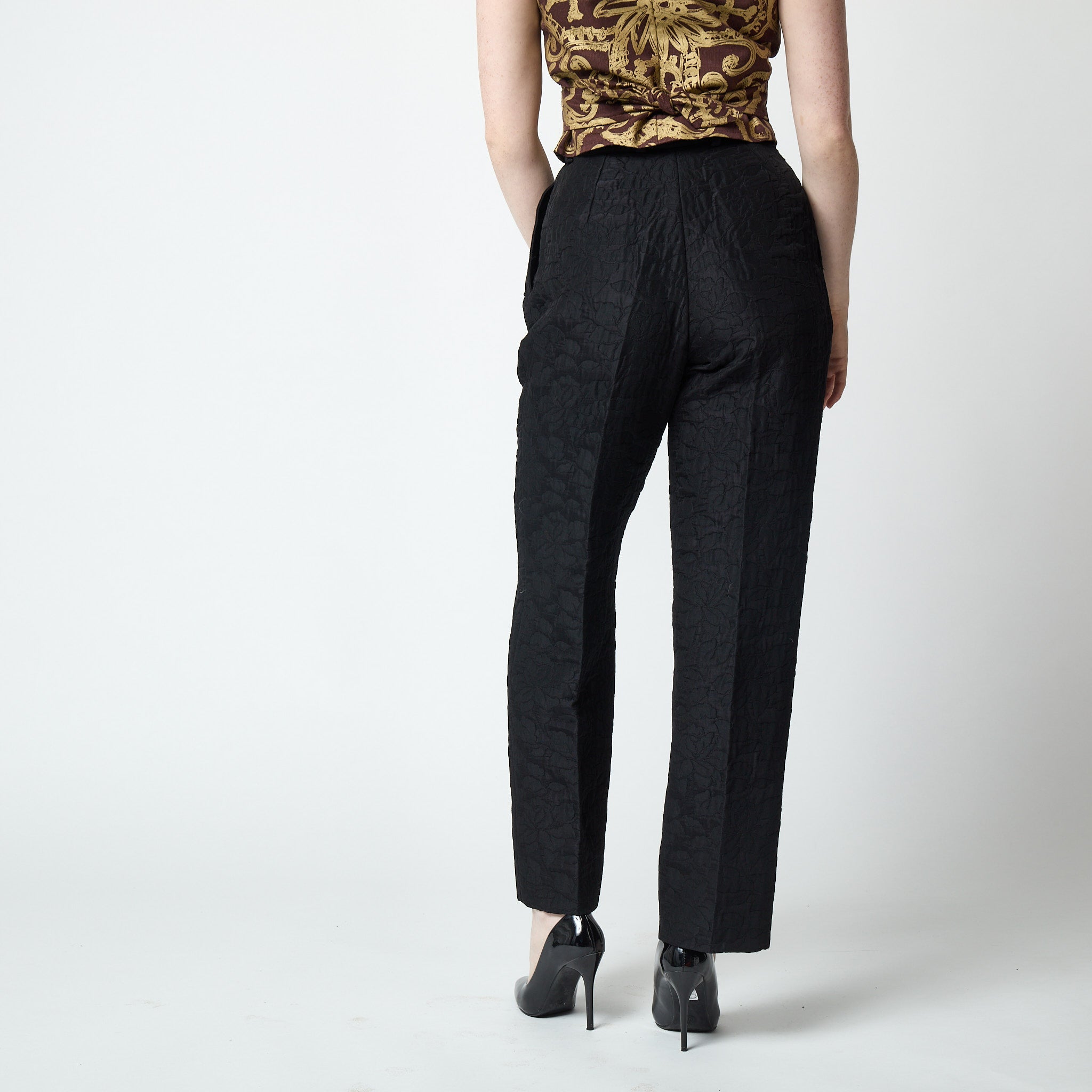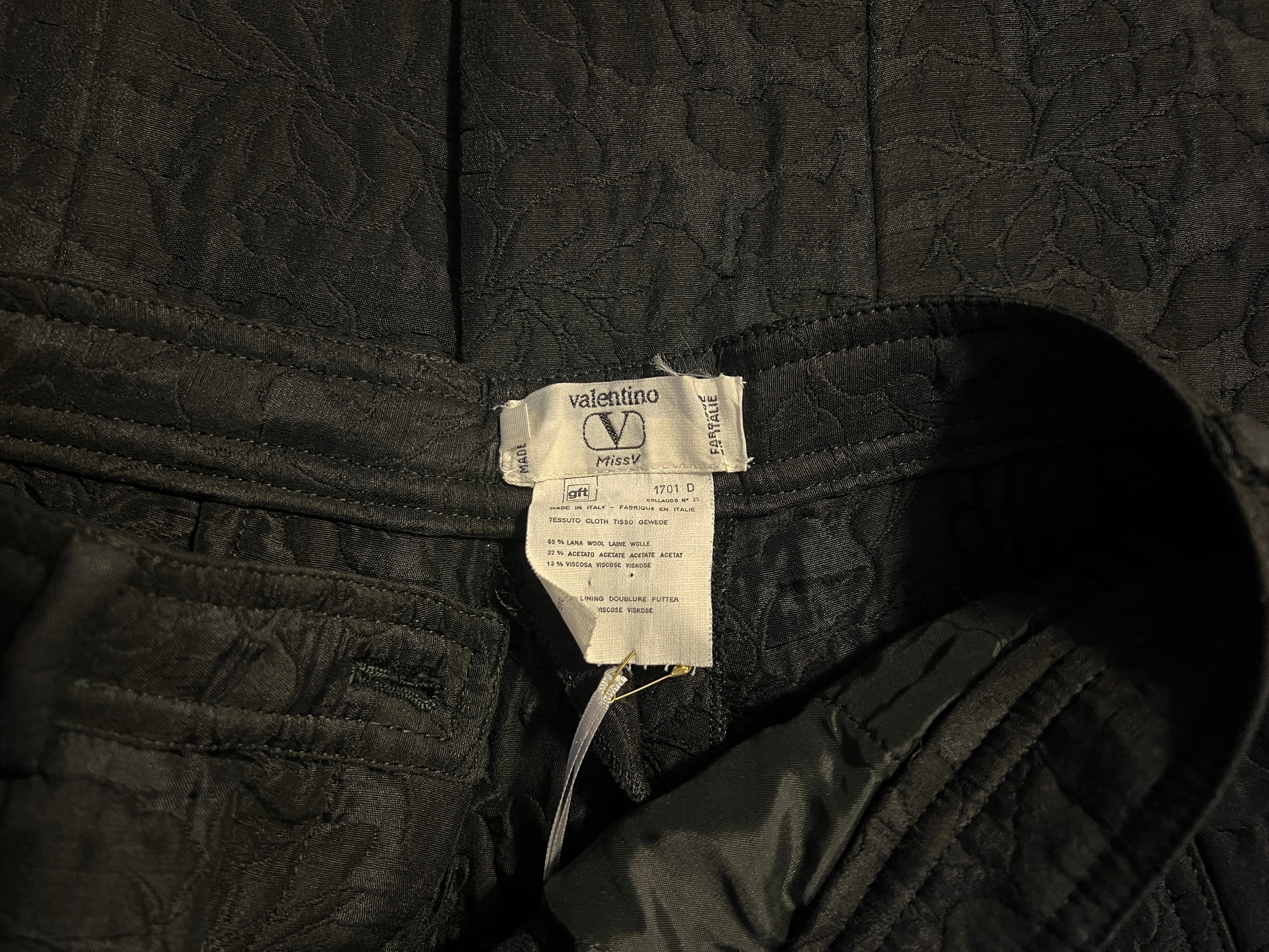 1990s Valentino Black Floral Jacquard Trousers