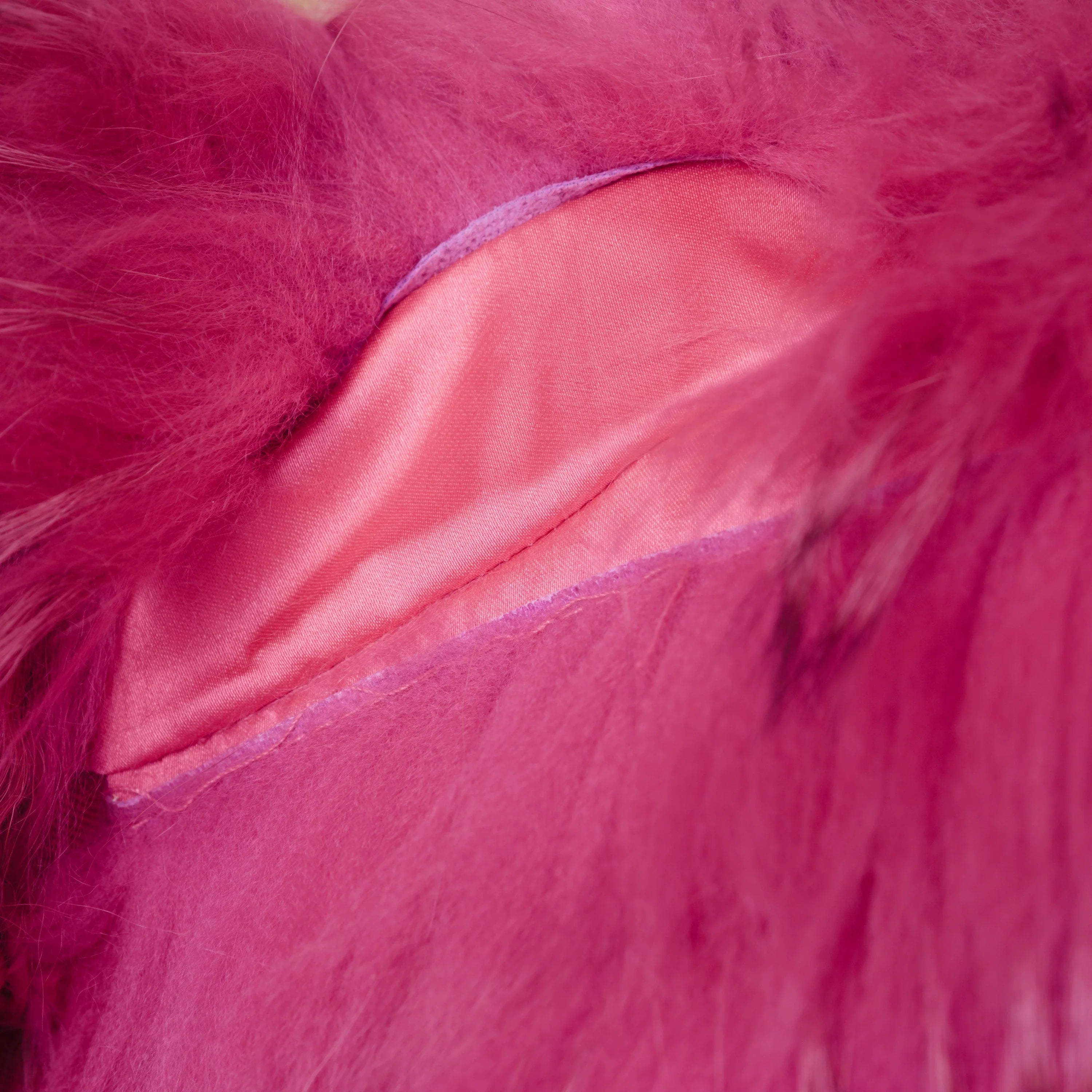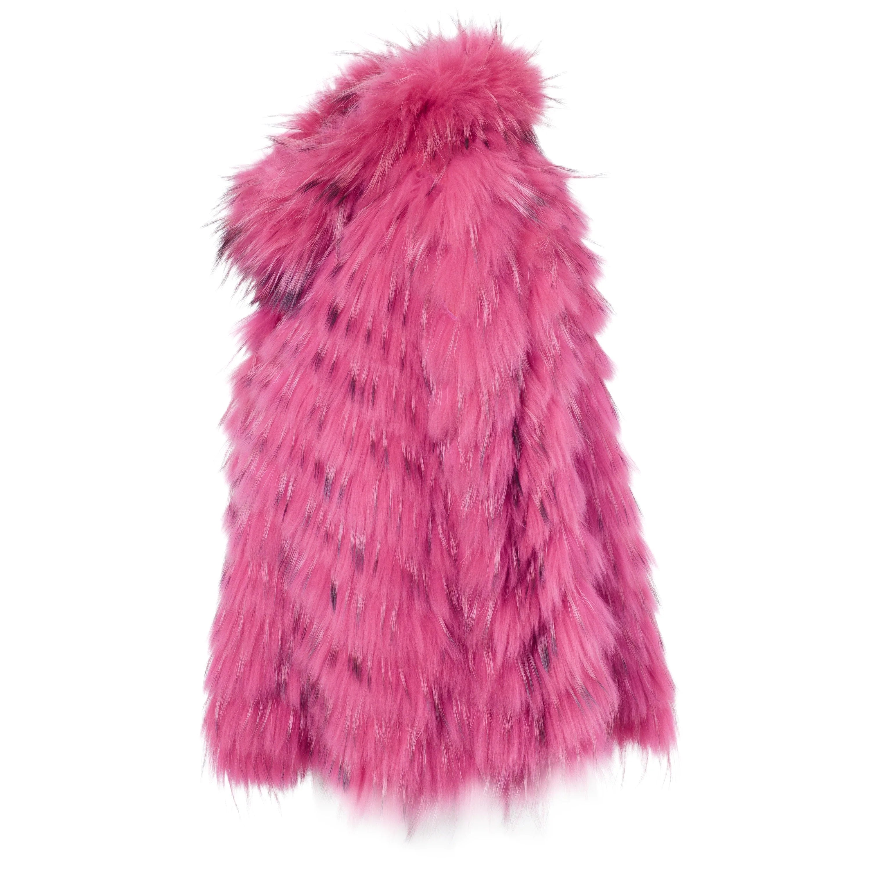 Fur coat by Red Valentino in fuchsia, crafted from high-quality materials with meticulous finishes. Straight-cut design with modern lines, long sleeves, and a soft collar detail, giving the garment an elegant volume.