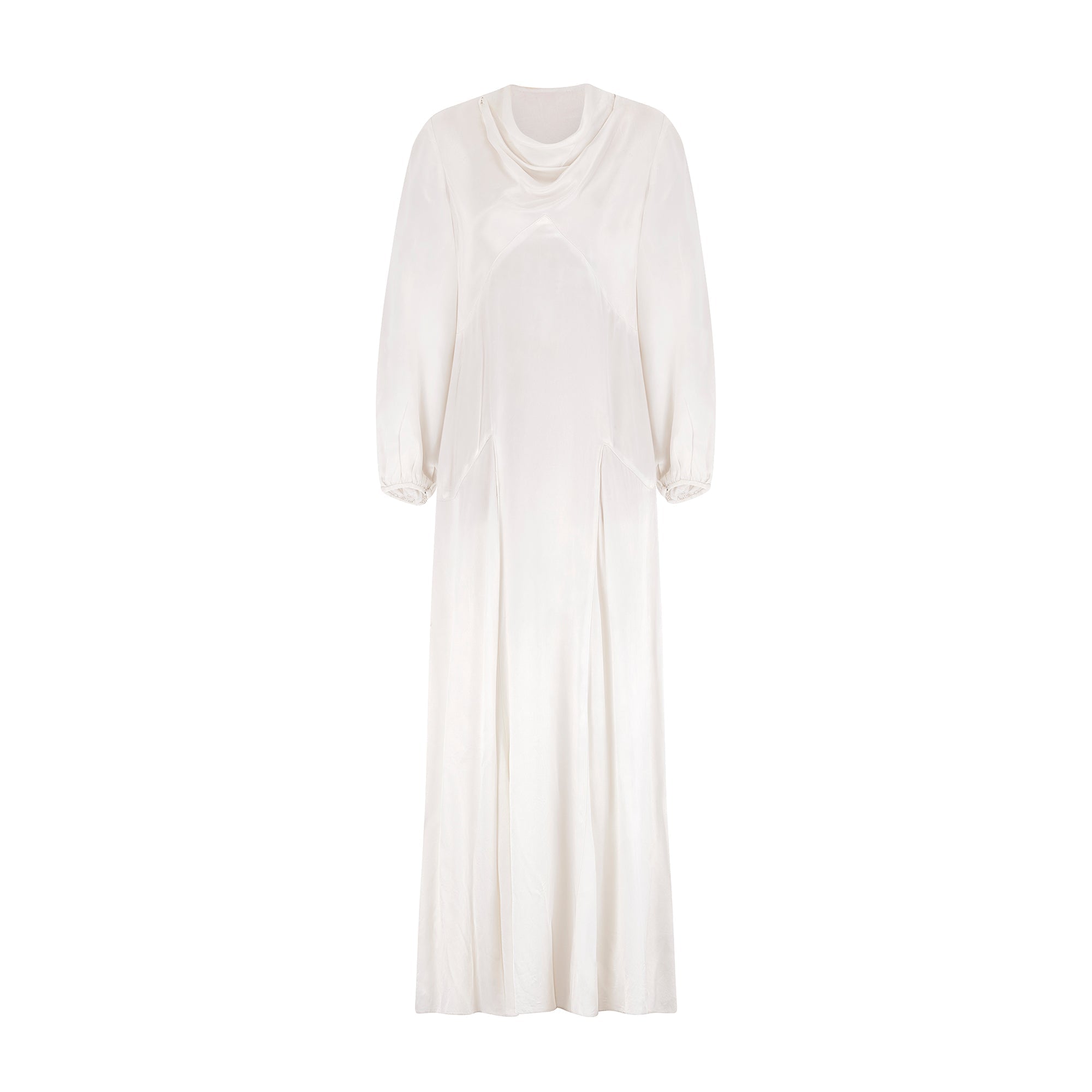 1930s Cowl Neck Gathered Cuff White Satin Dress