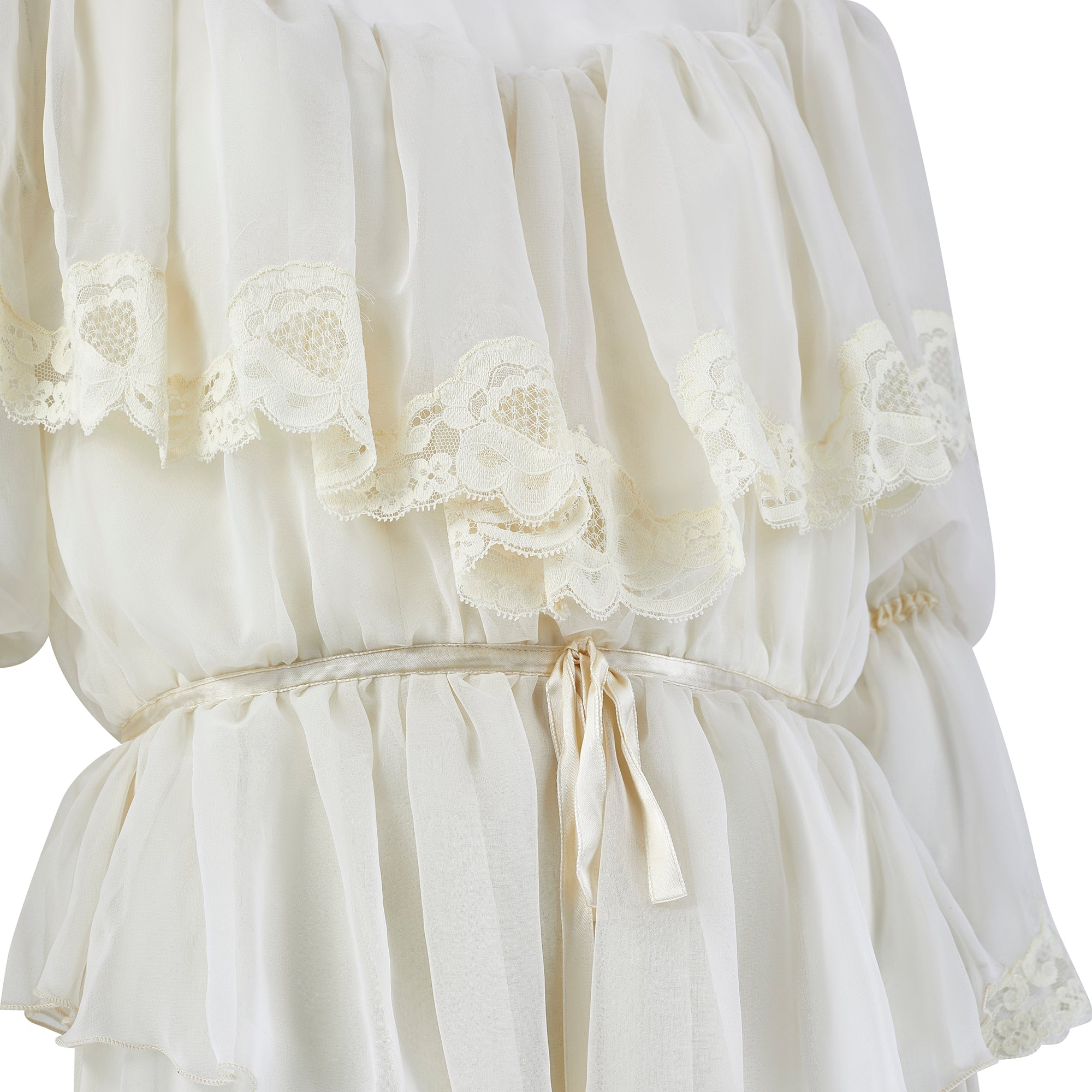 1970s Edwardian Style Cream Chiffon Maxi Dress