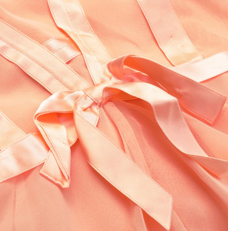 1970s Jean Varon Peach Chiffon Dress With Ribbon Trim