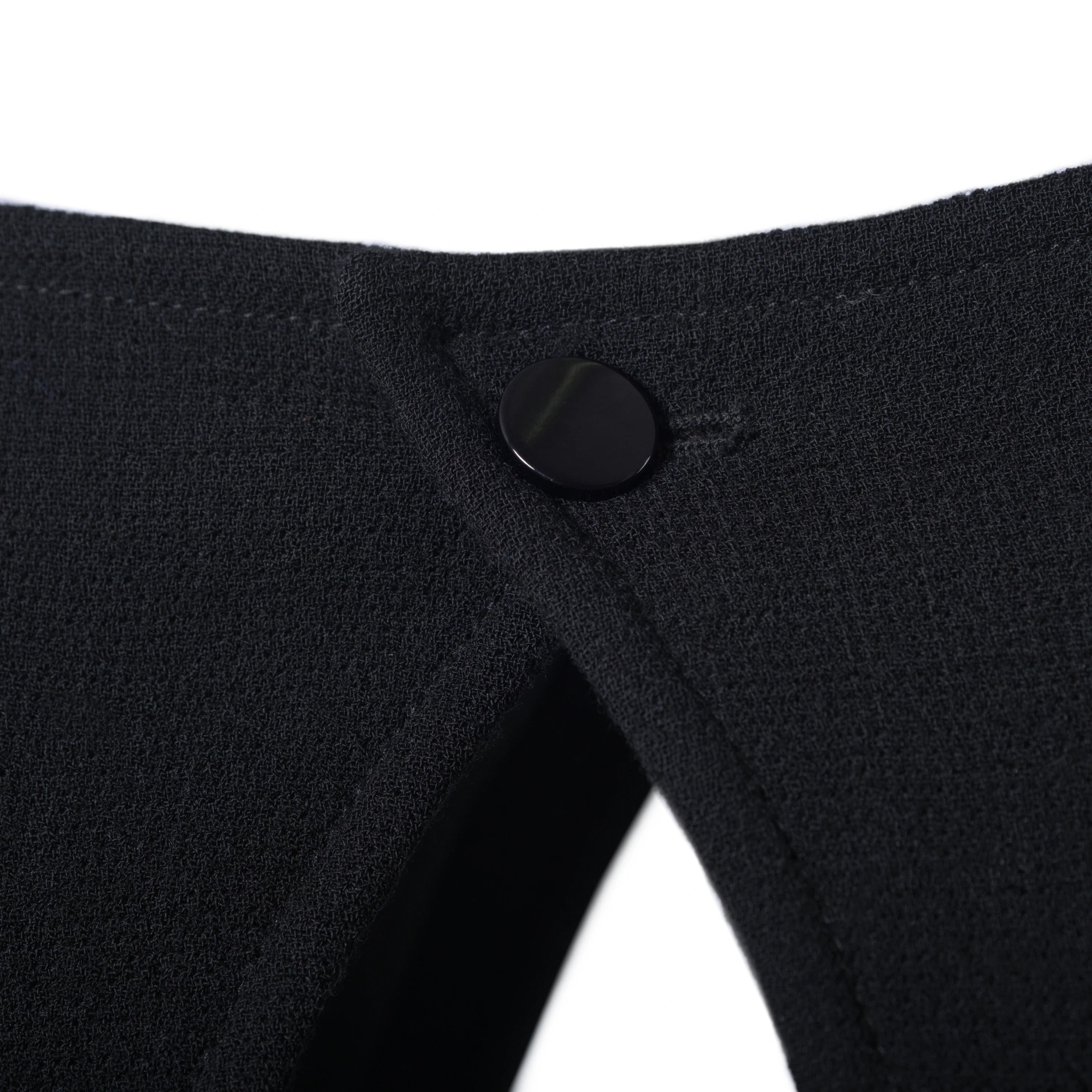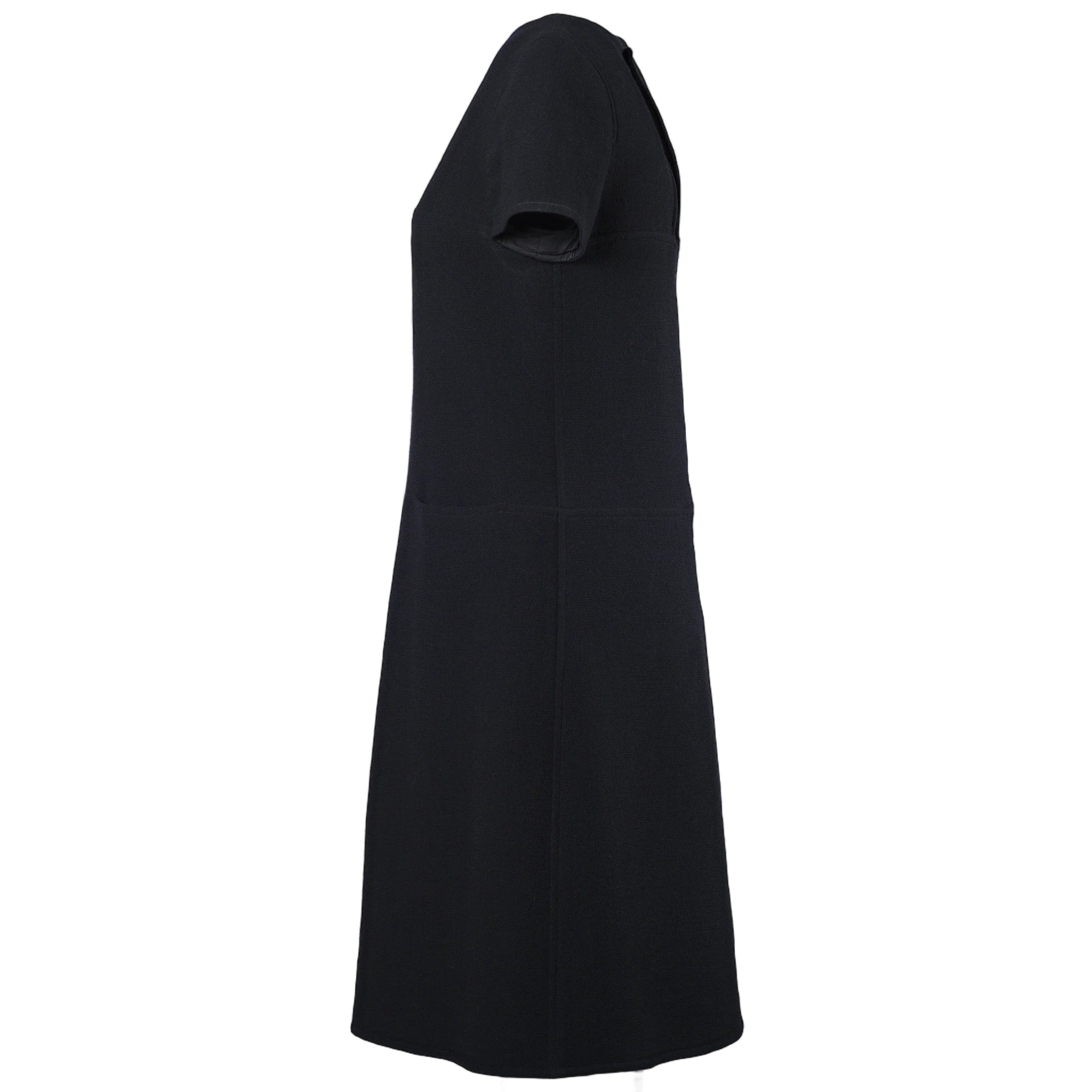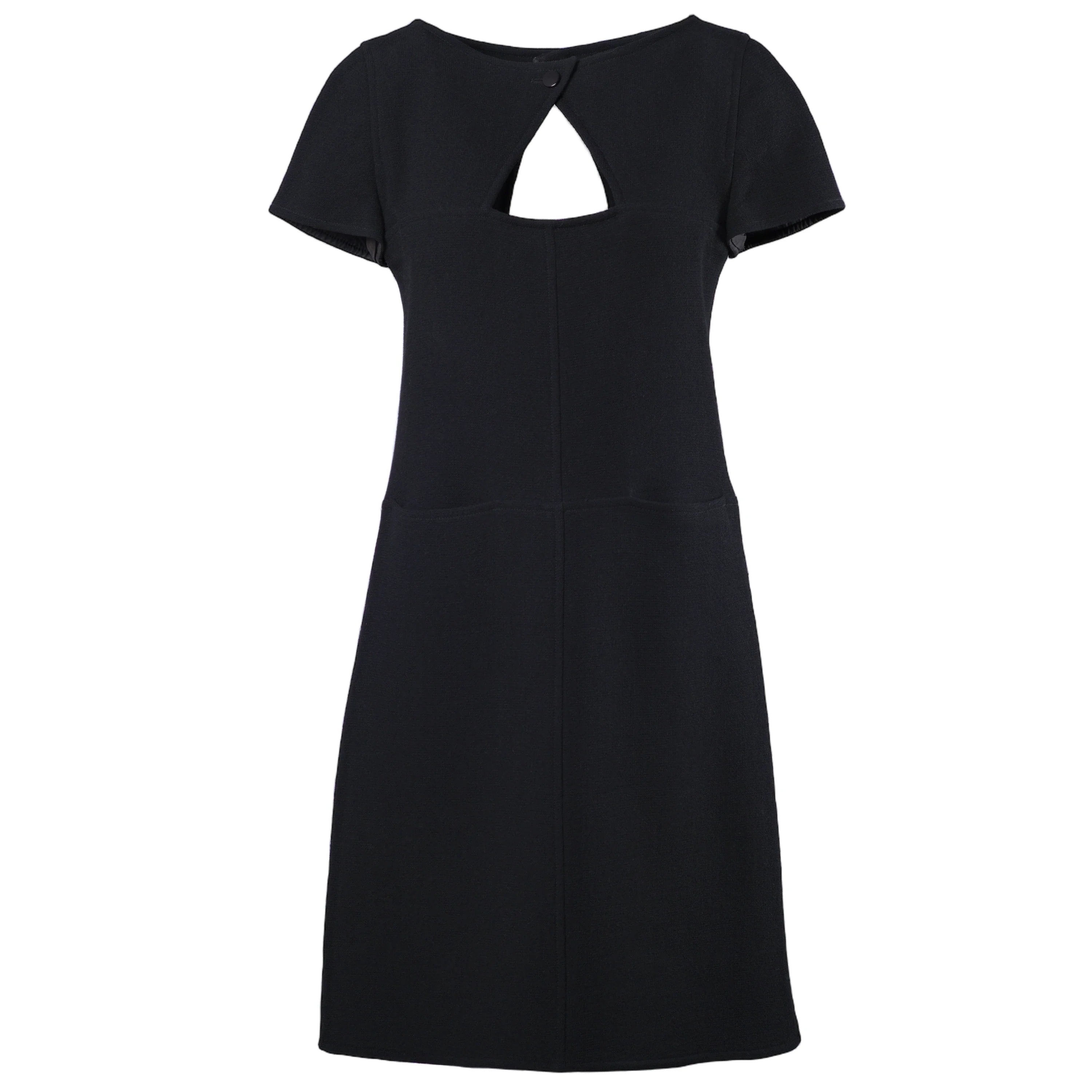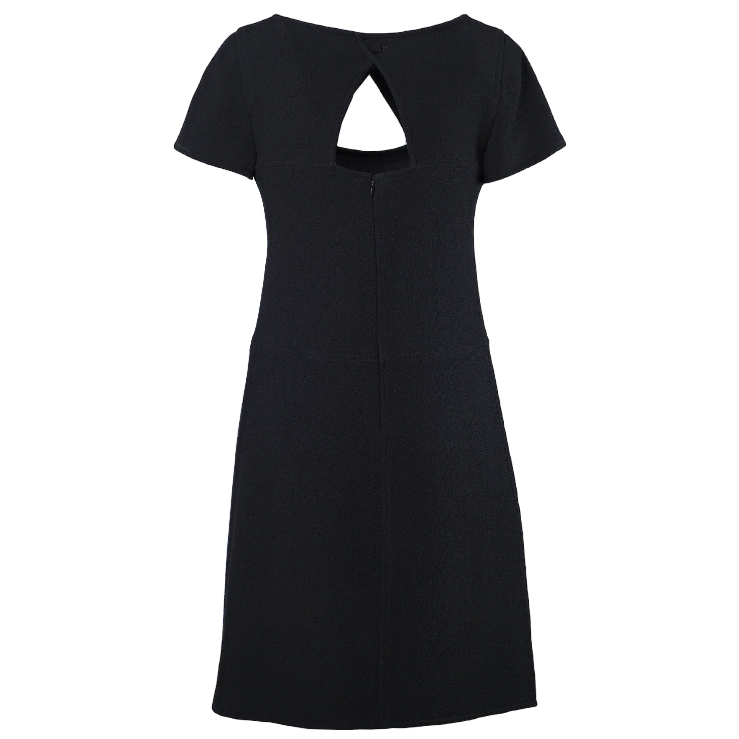 Black dress by Courrèges, made from high-quality wool. Straight-cut design with a neckline detail and clean, minimalist lines.