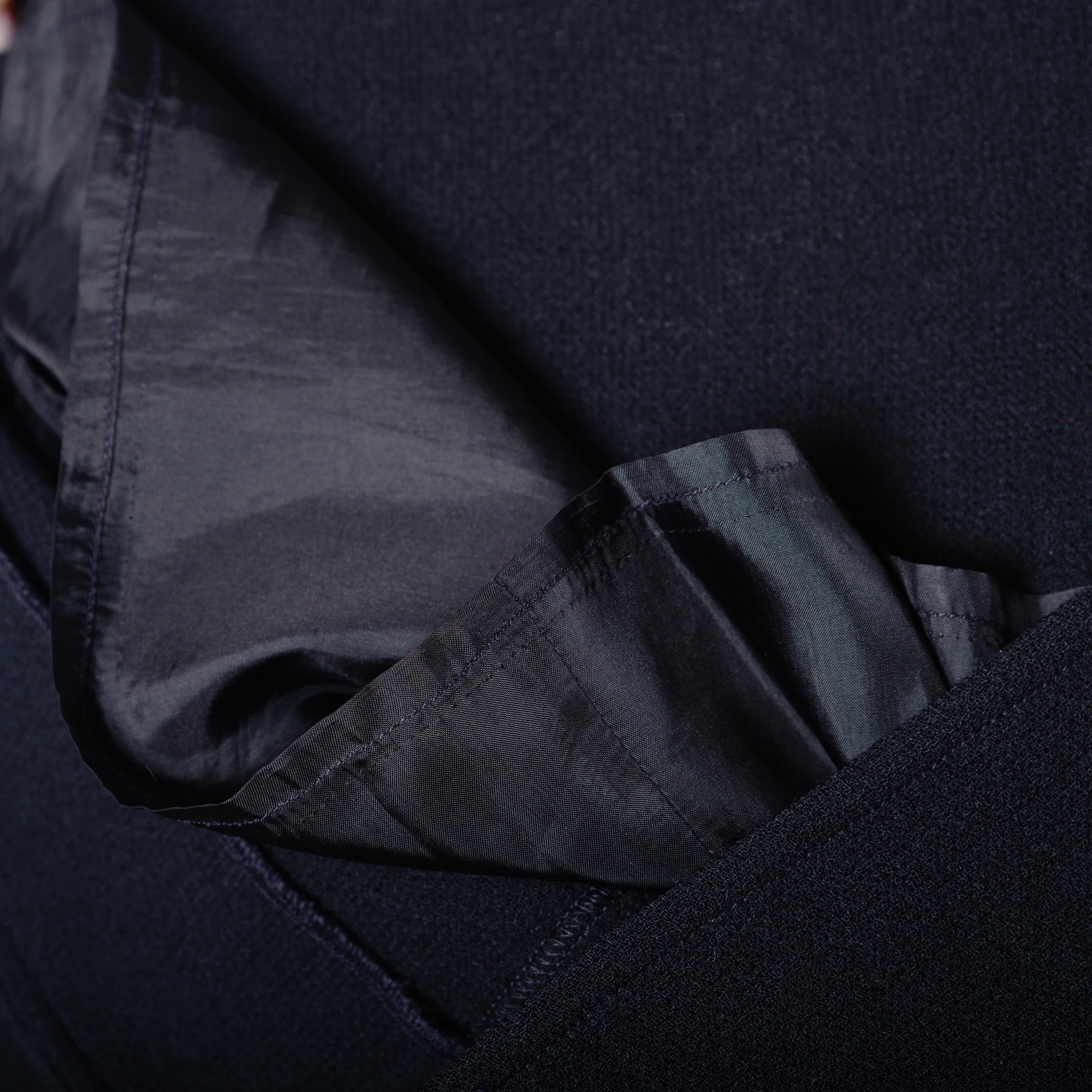 Soft, structured, and durable fabric with precise, meticulous finishes, giving the garment solidity and attention to detail.