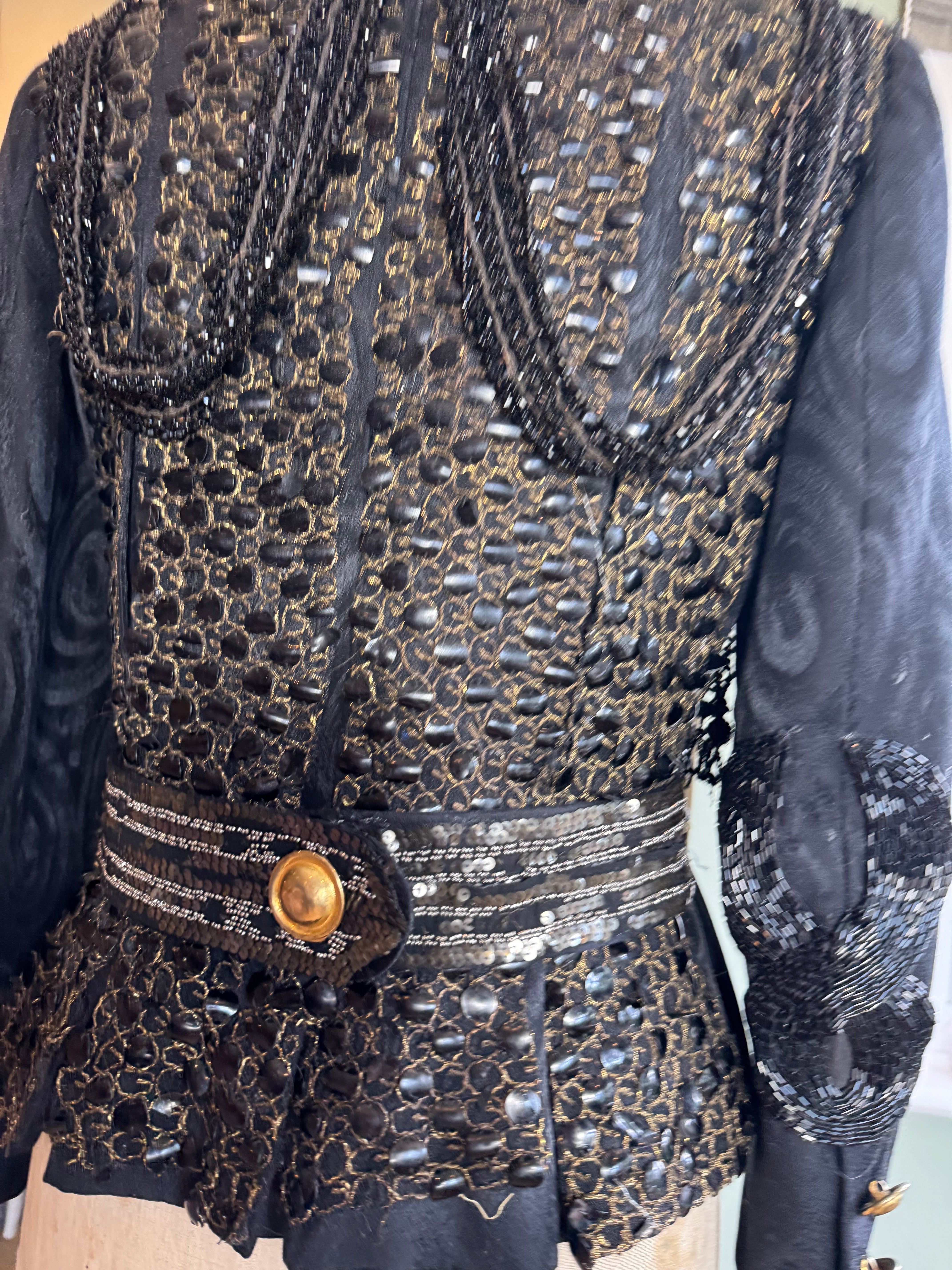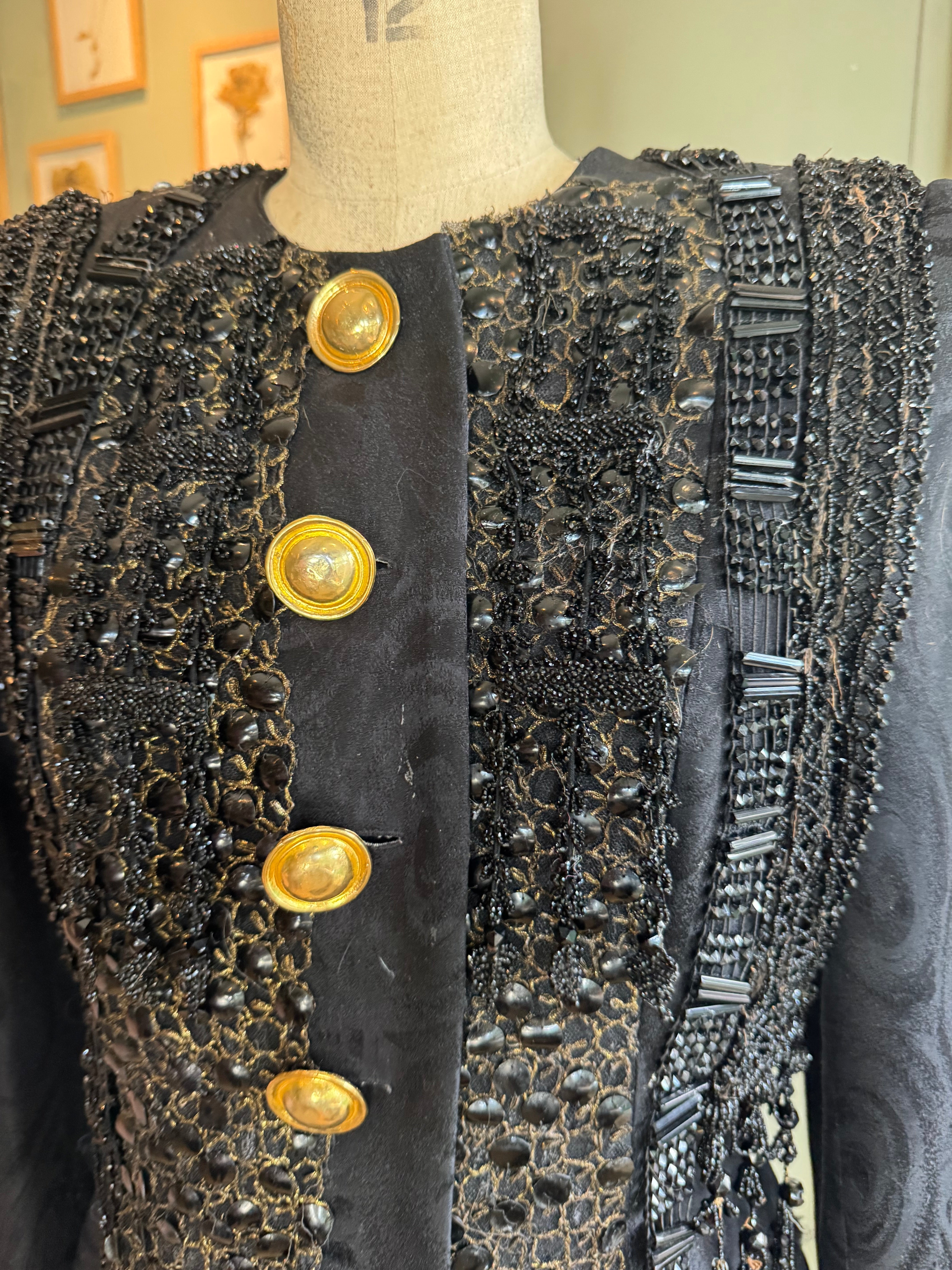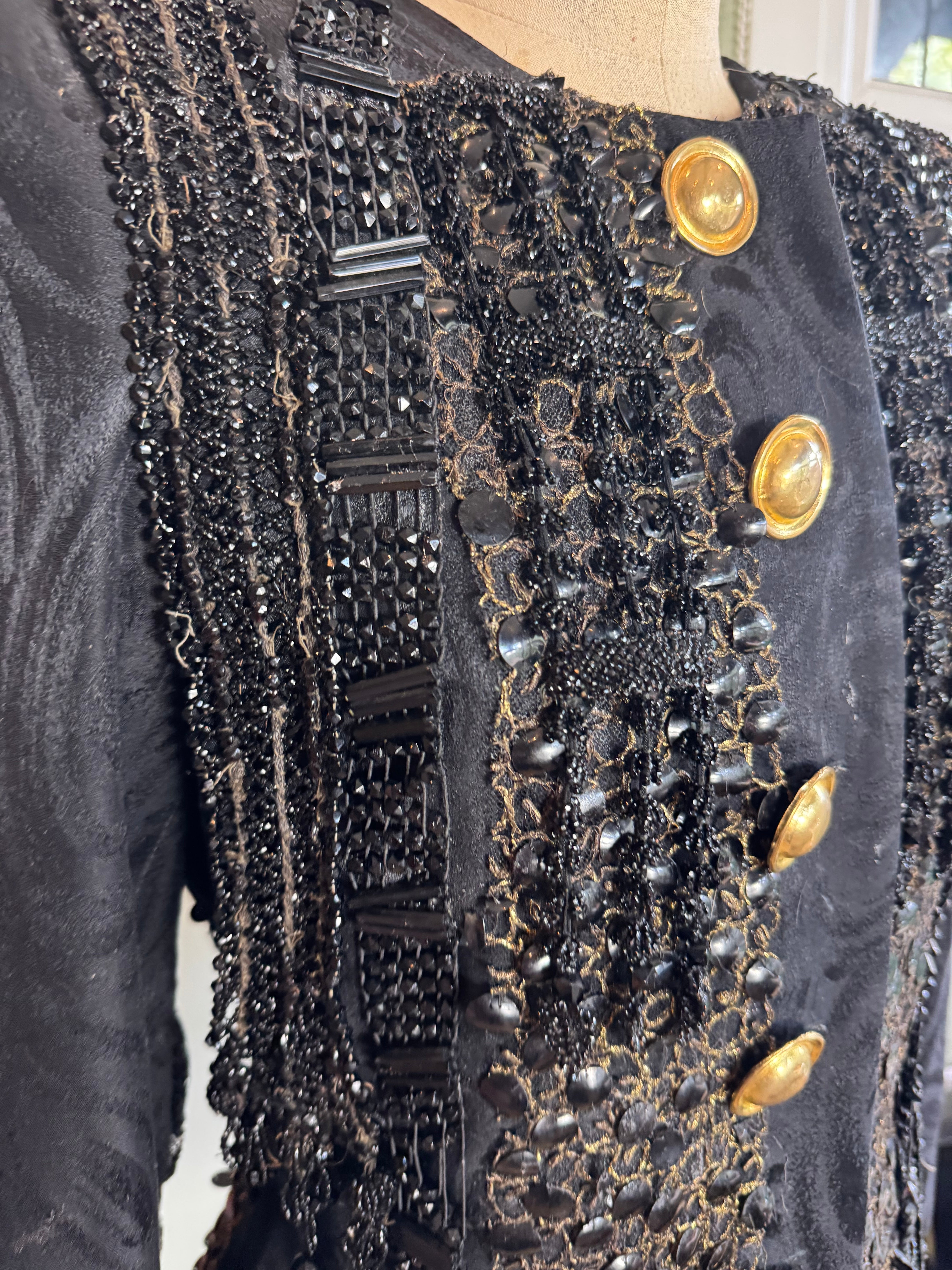 Kooki, 80s fitted silk brocade jacket with 20s jet beading