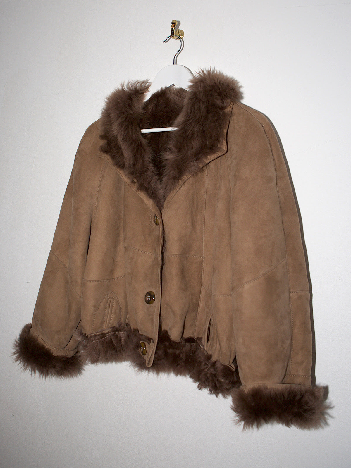 Upcycled sheepskin, they’ve been cropped and fastened with button attachments on both side!