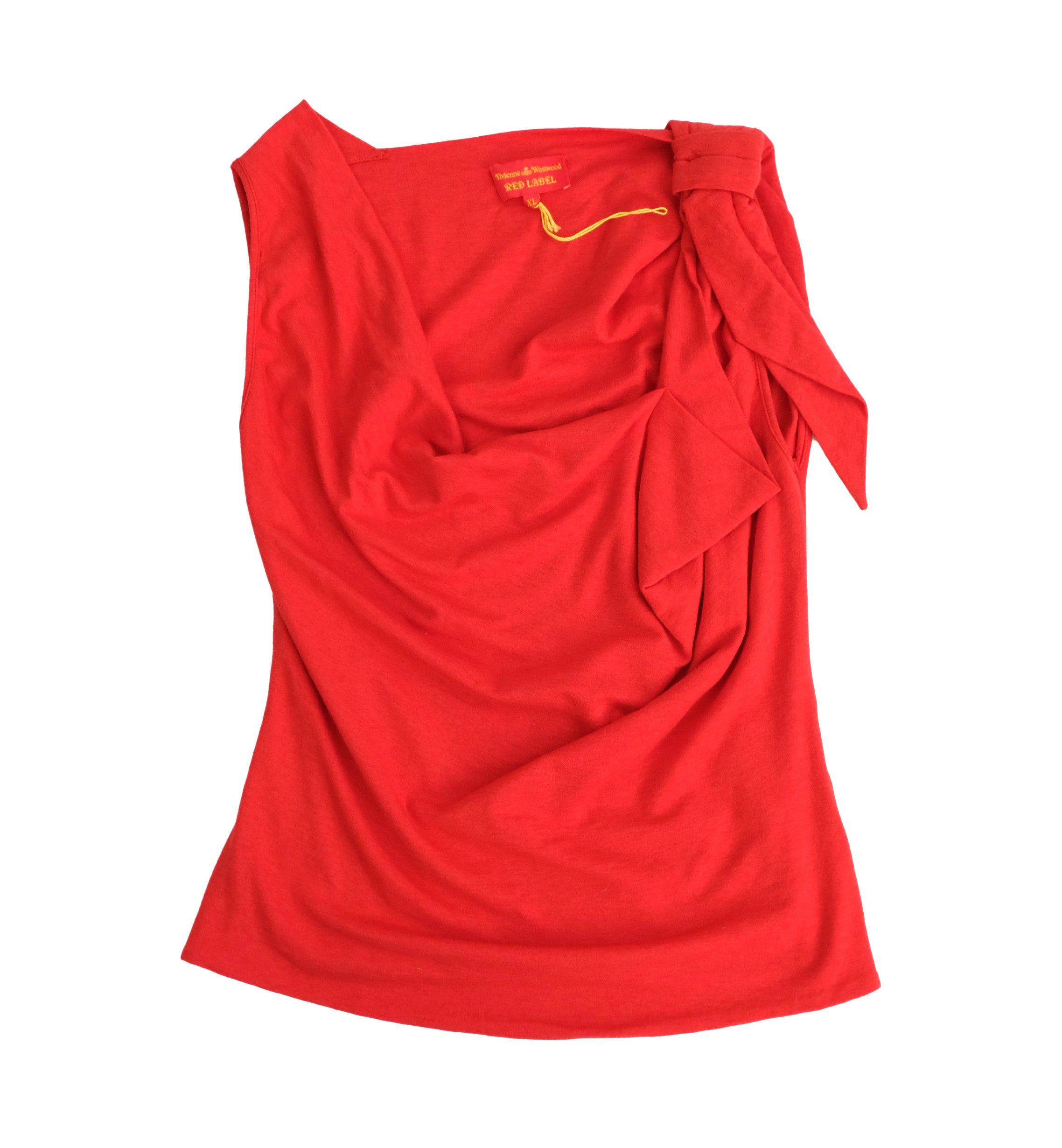 A vibrant sleeveless top by Vivienne Westwood Red Label in fiery red jersey.