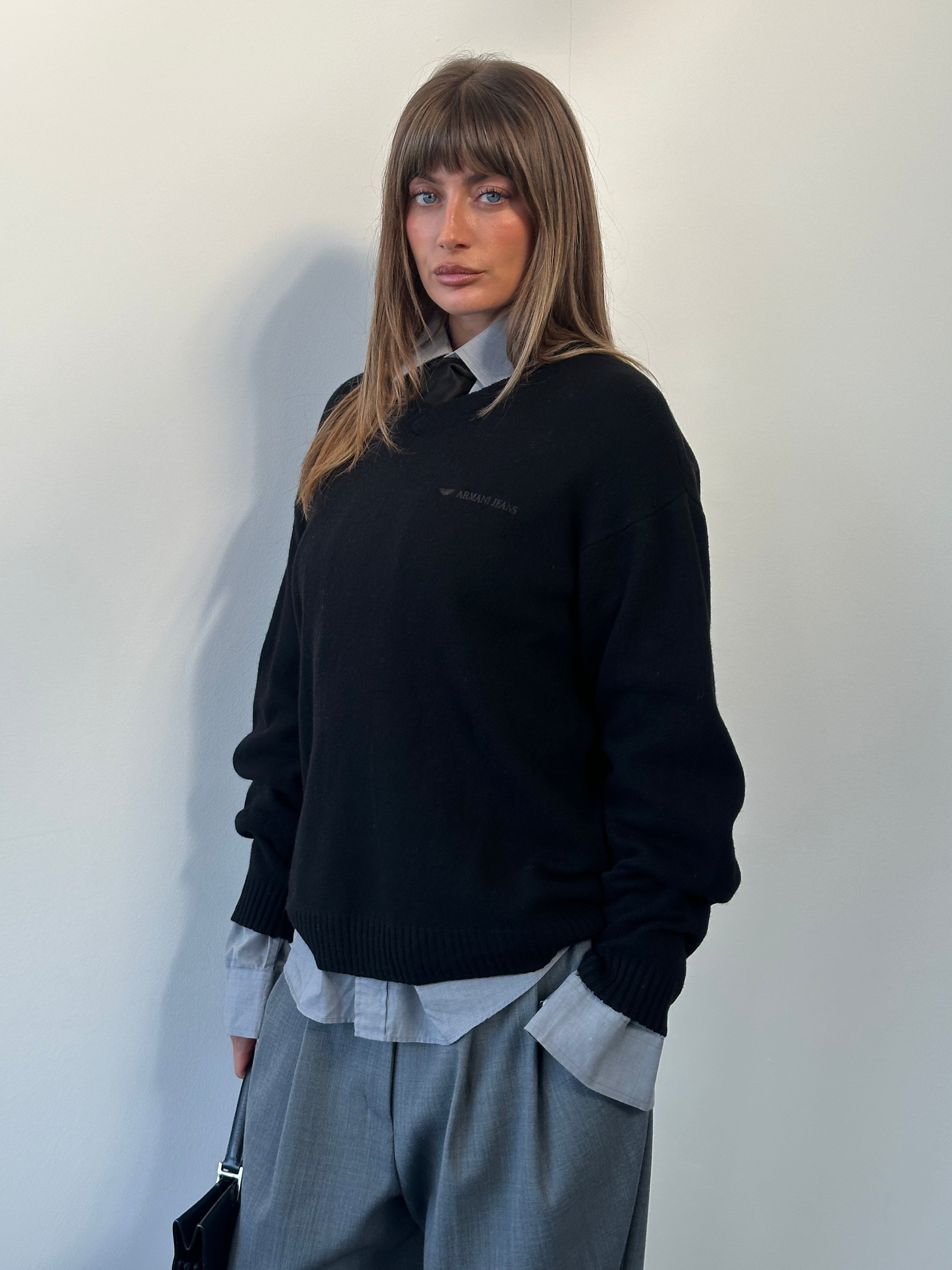 Armani Jeans 1990s Wool Knitted Logo Jumper - L/XL
