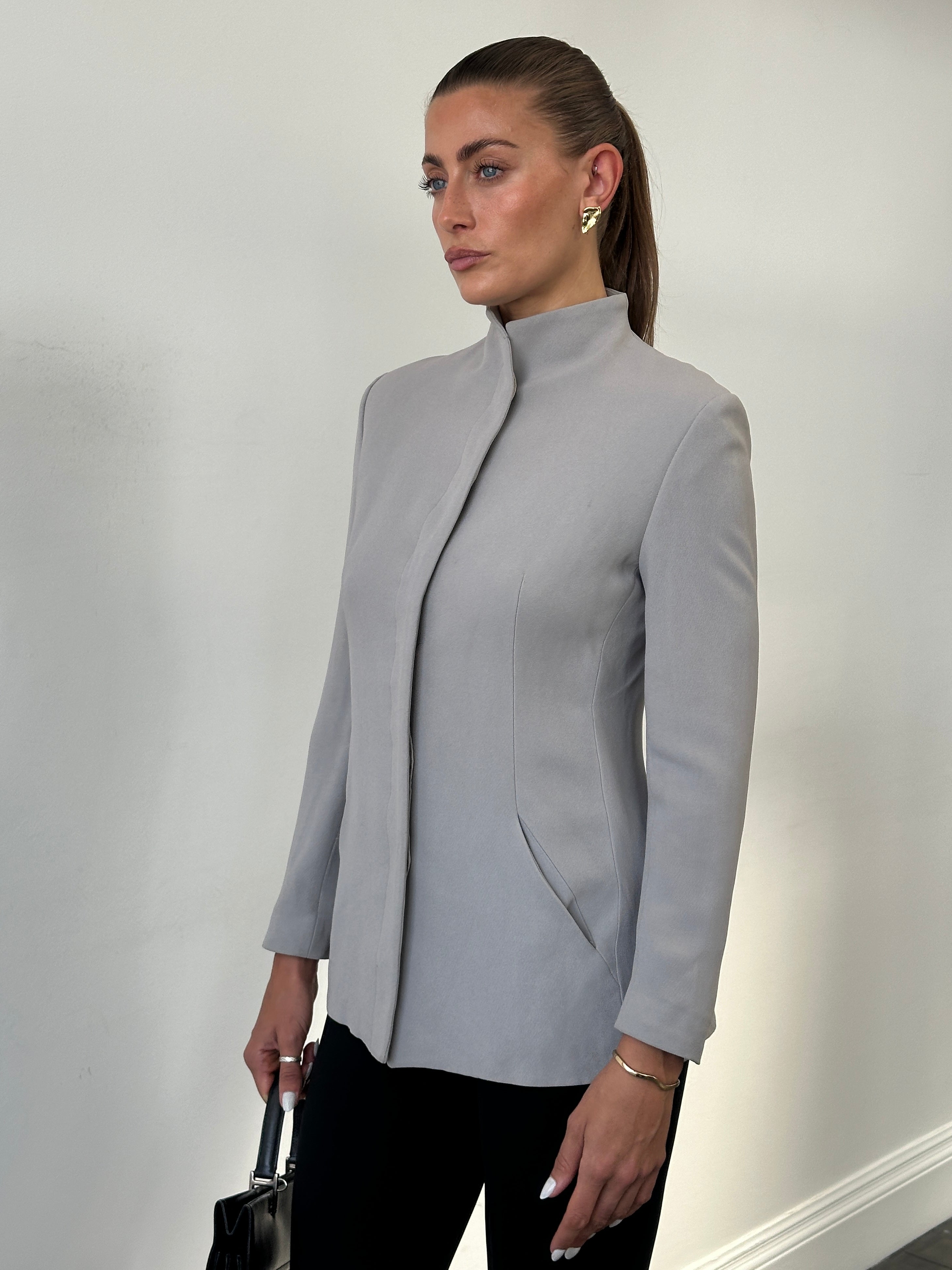 Emporio Armani High Neck Fitted Minimal Blazer Jacket - S/M