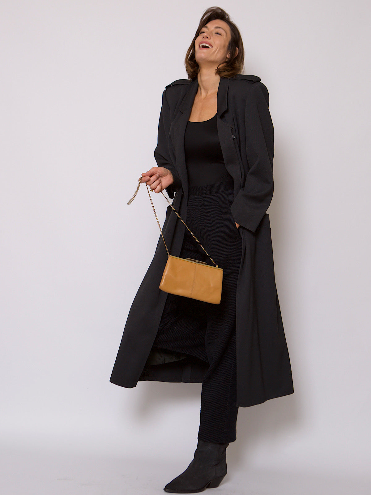 Very elegant vintage belted trench with the bottom back all pleated.
