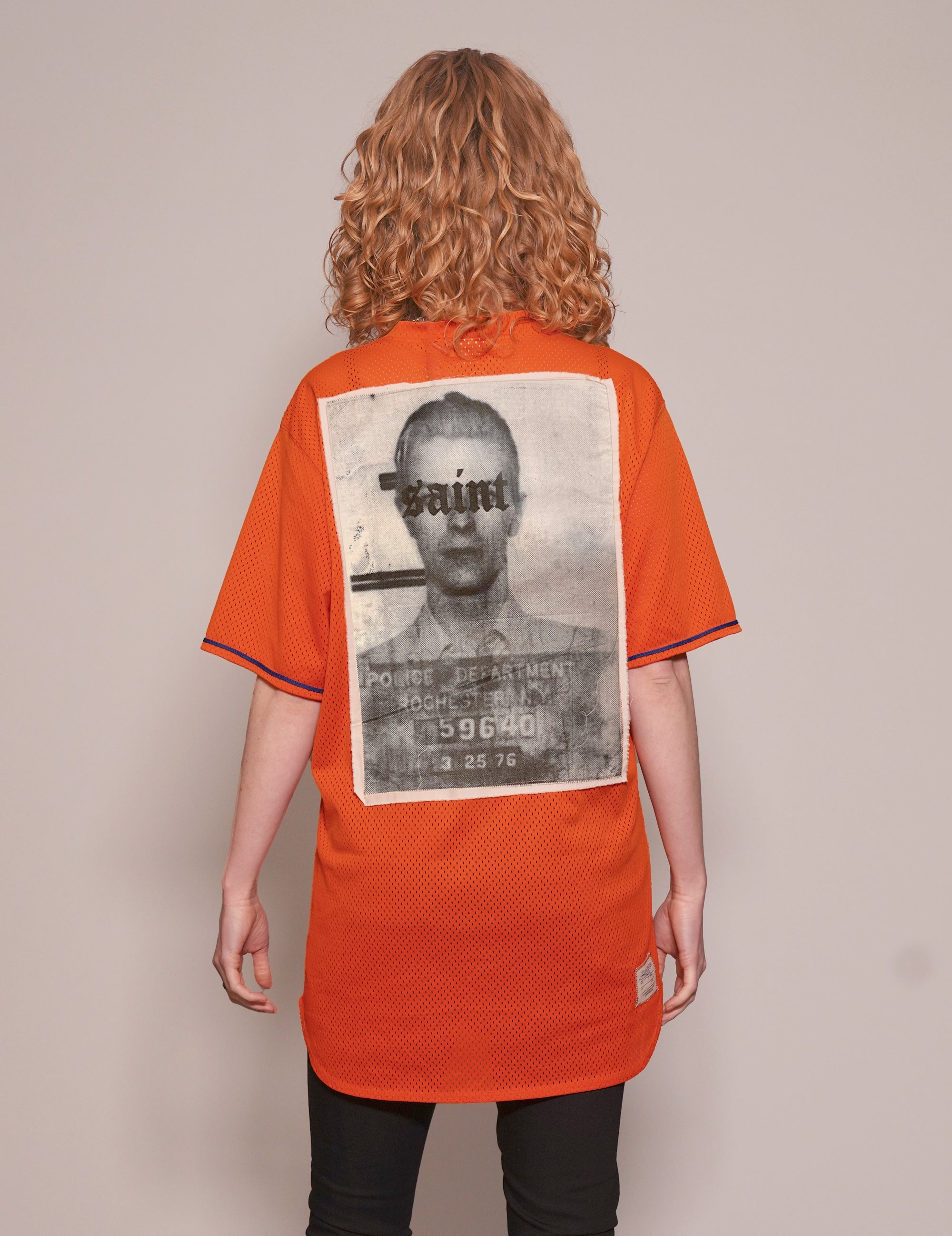 ST Vintage Nike MLB Eagles Tee customised with Bowie inspired mugshot patched print on the back. Model is 5'8" wearing size L