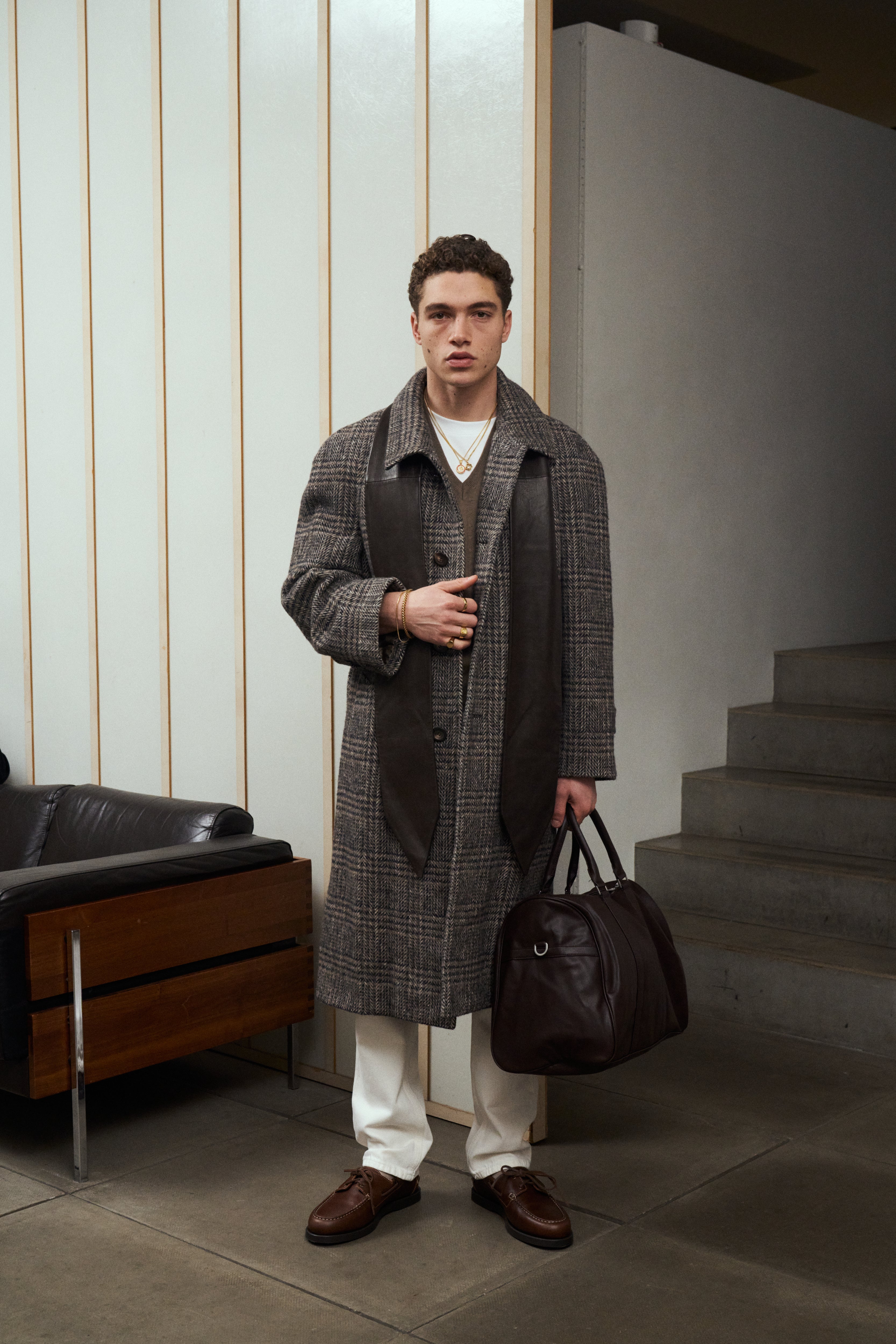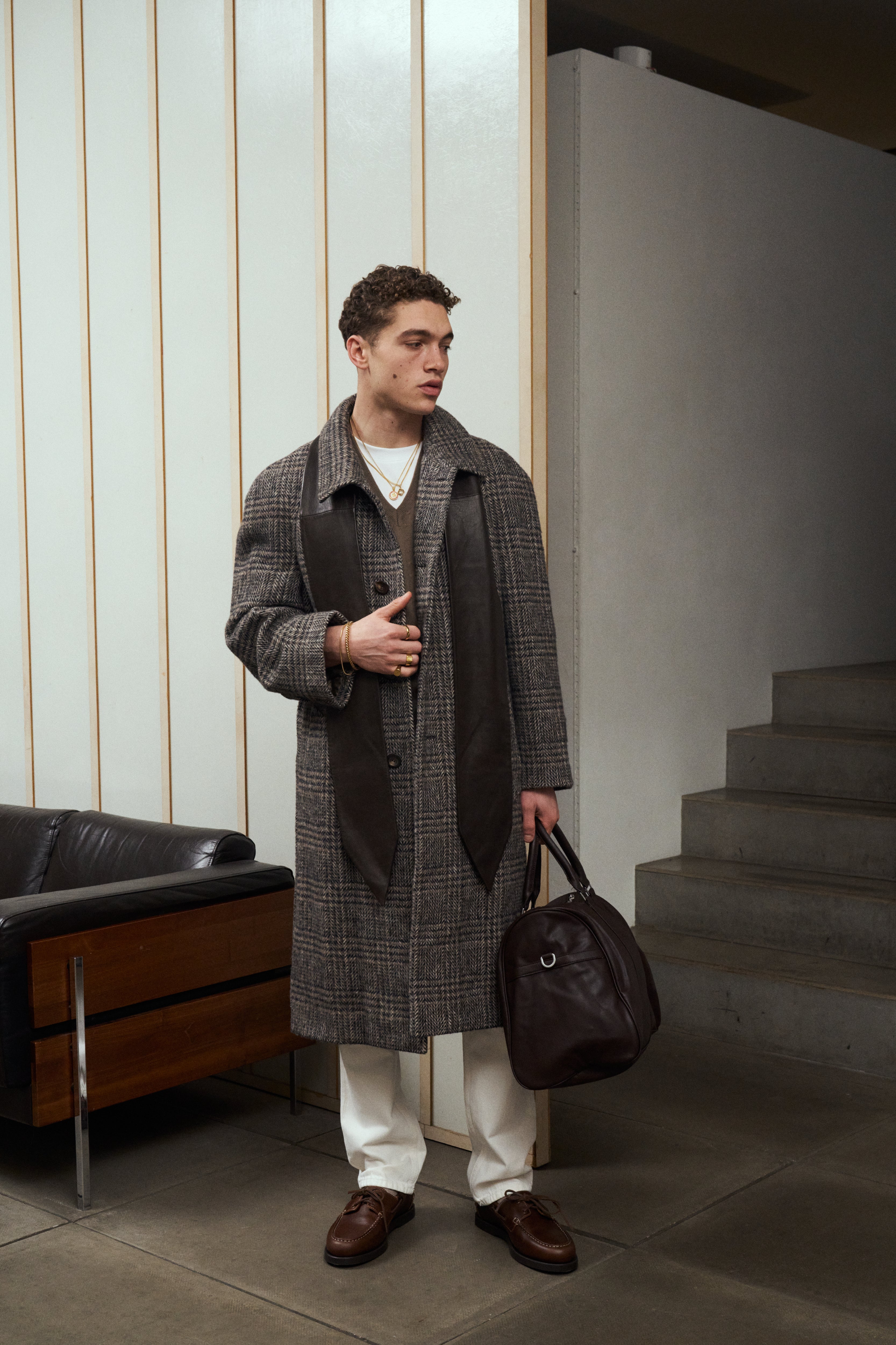 Vintage Wool Check Belted Coat - XL/XXL