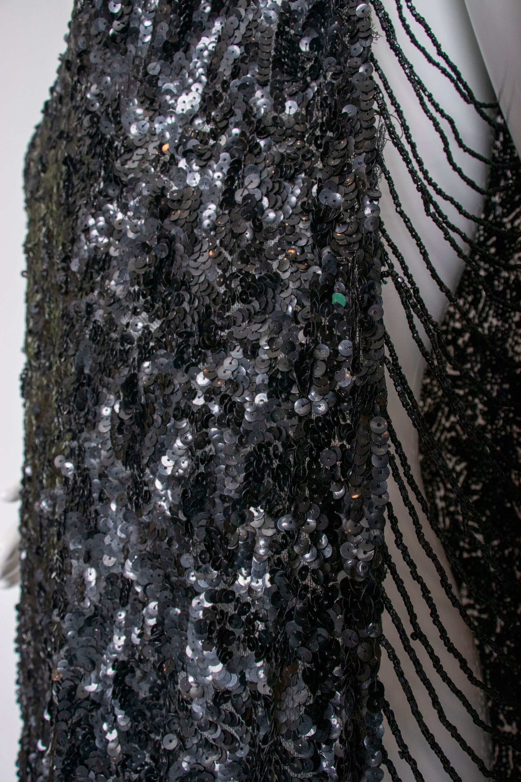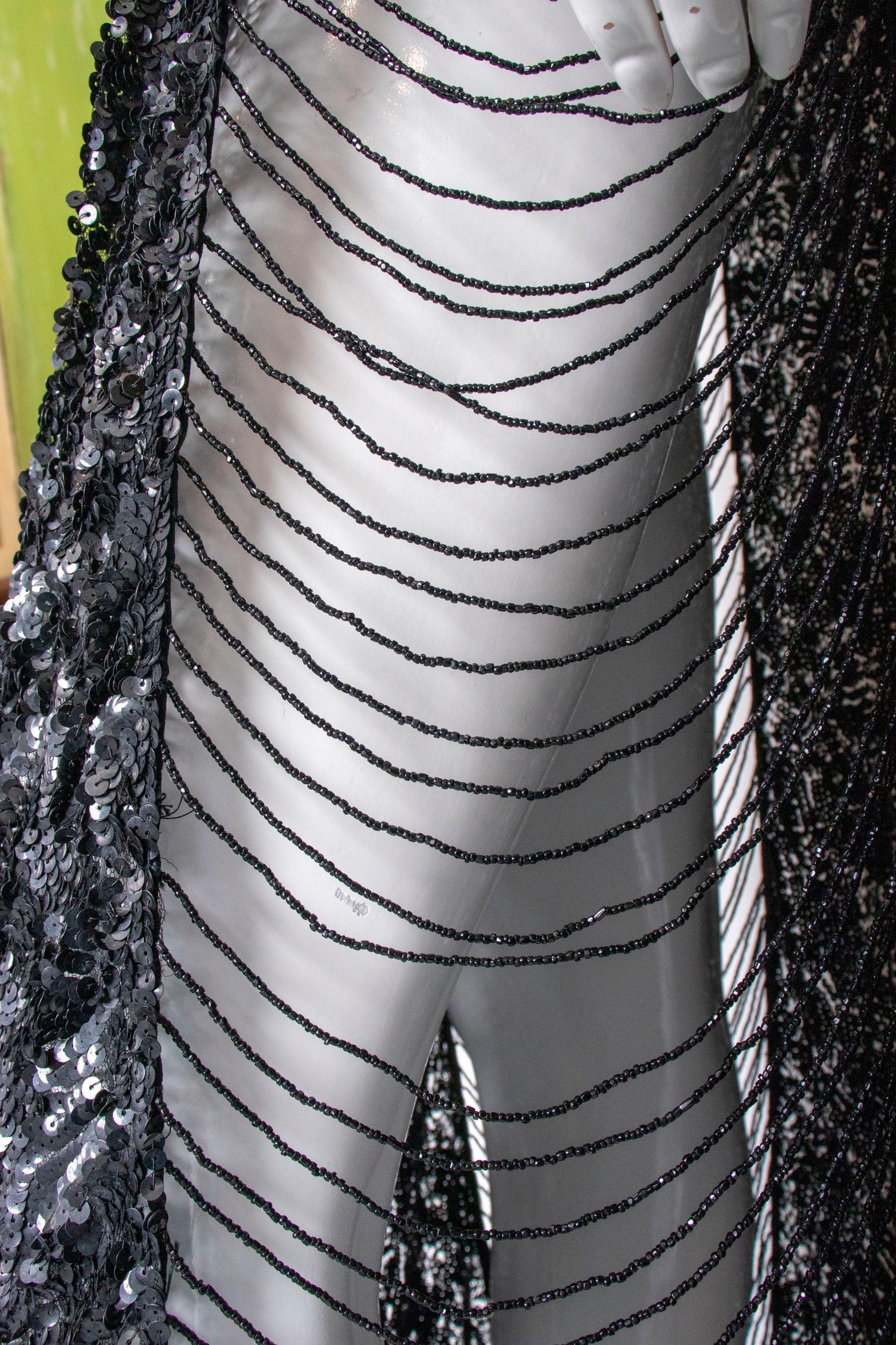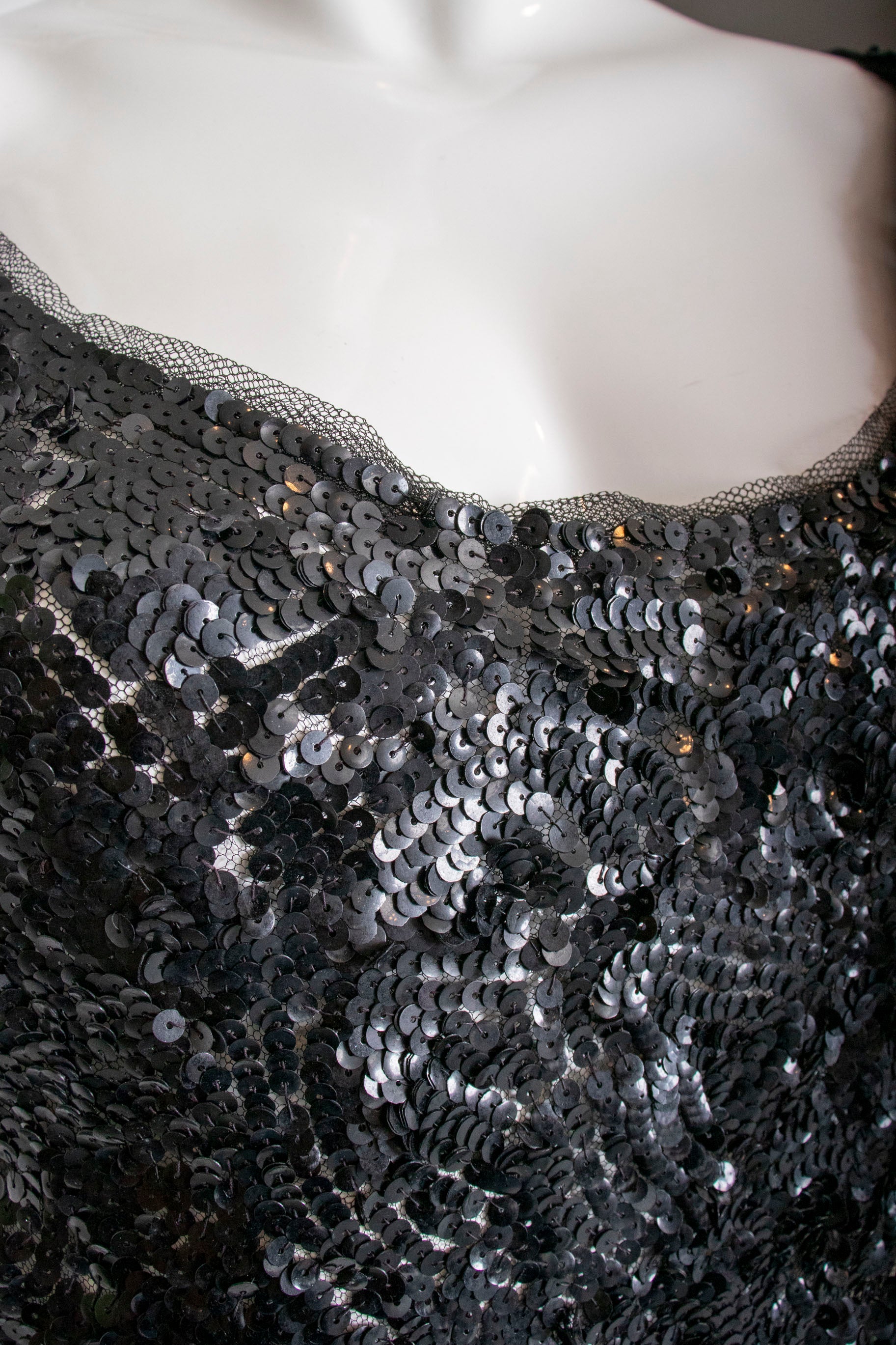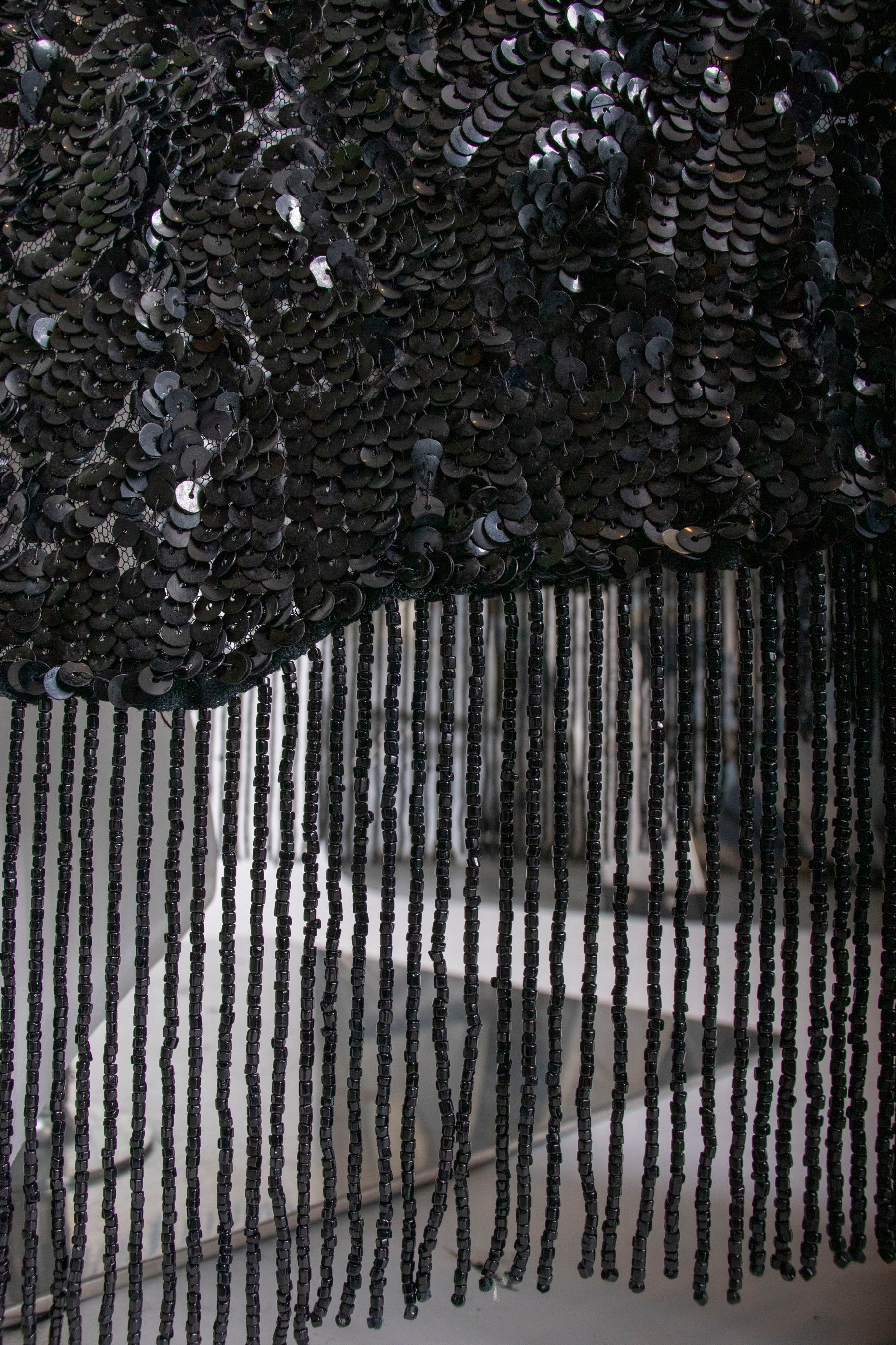 • Fabric: black sequin on tulle, black bead details