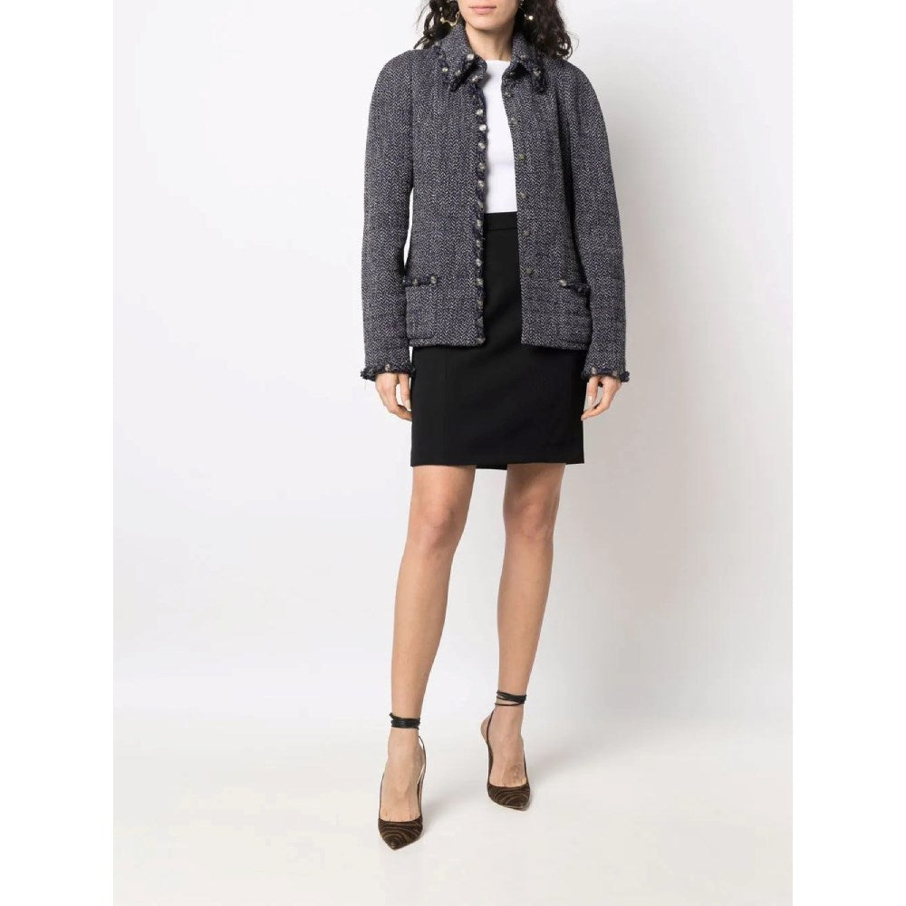 Chanel Blue Herringbone Wool Jacket - 2000s