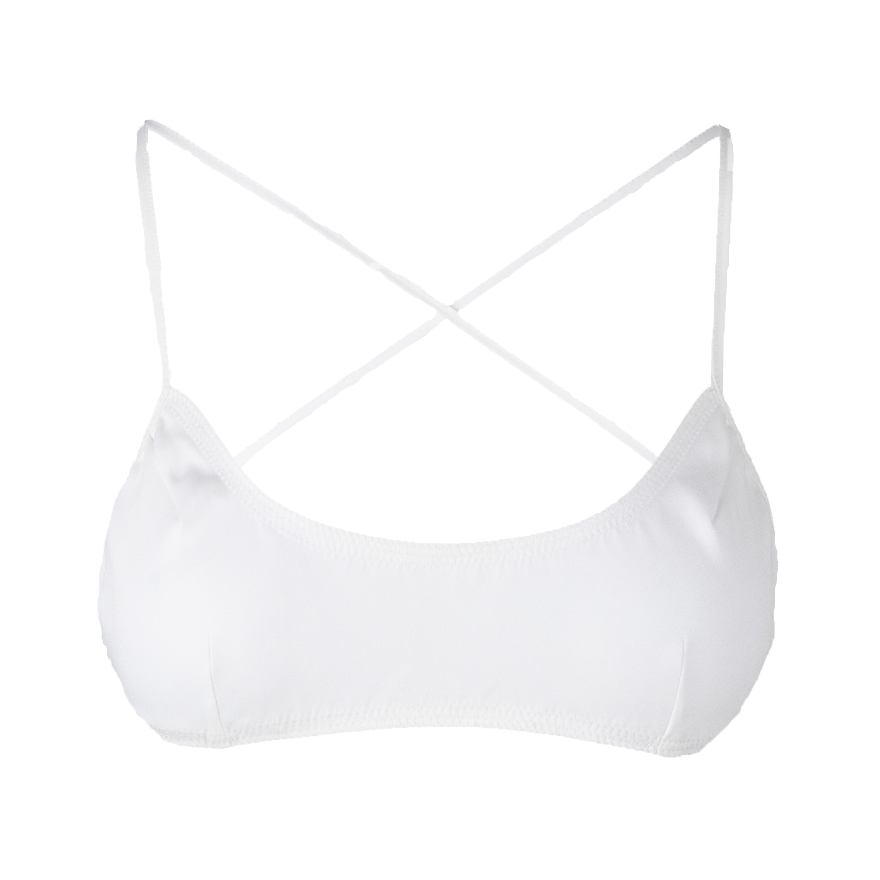 Crafted from high-quality materials, this Gianfranco Ferré bralette features a tube styled top with a crossed lace-up on the back.  The white color makes this piece versatile and will compliment any look.