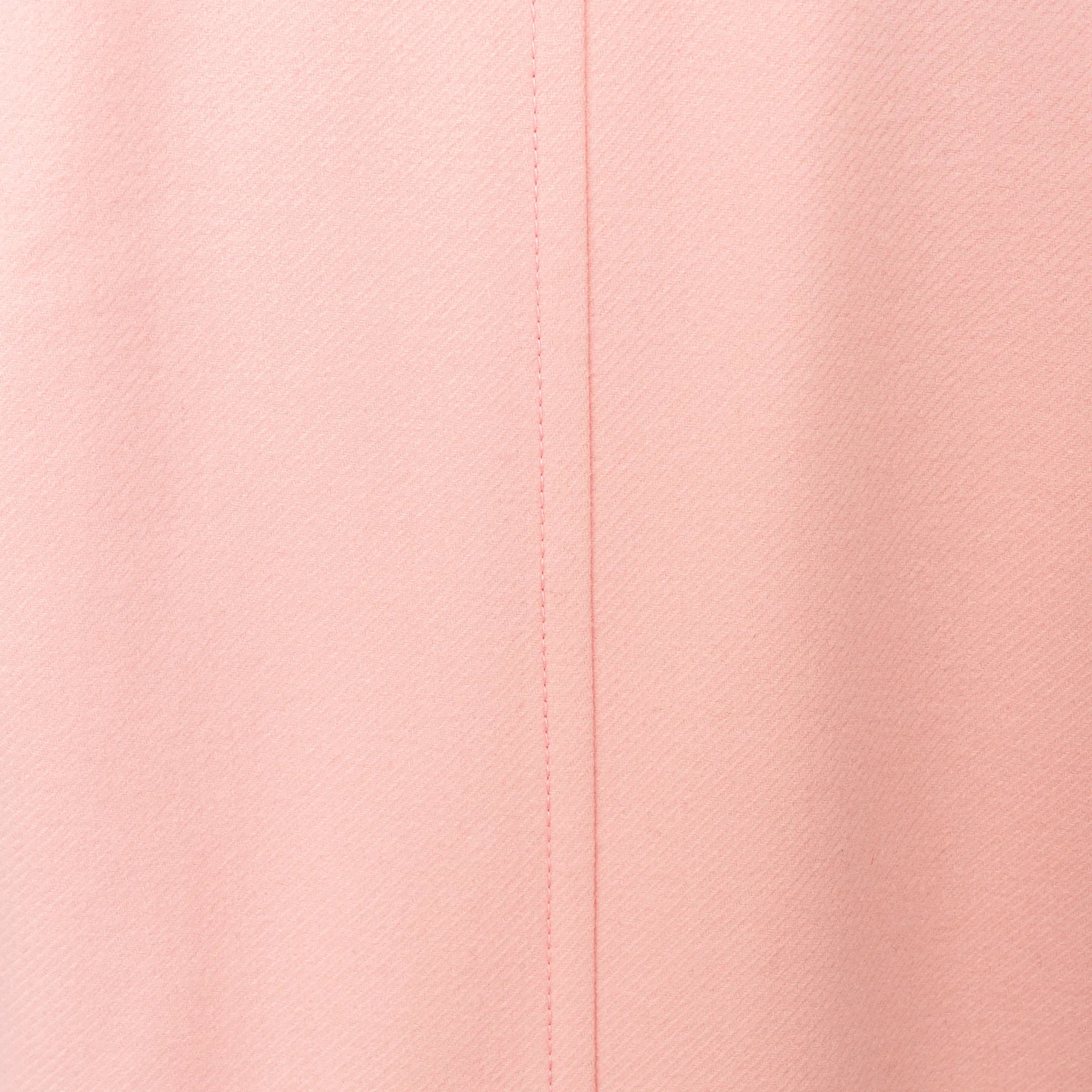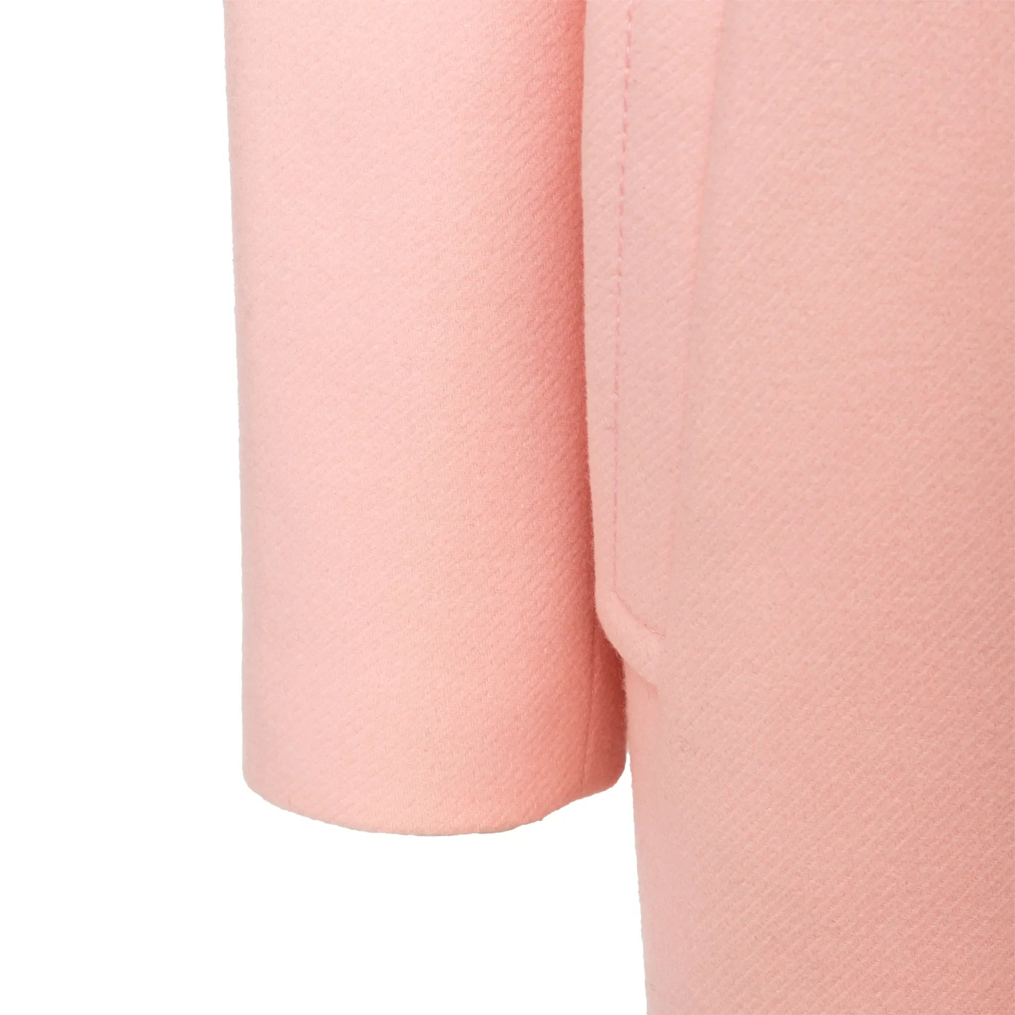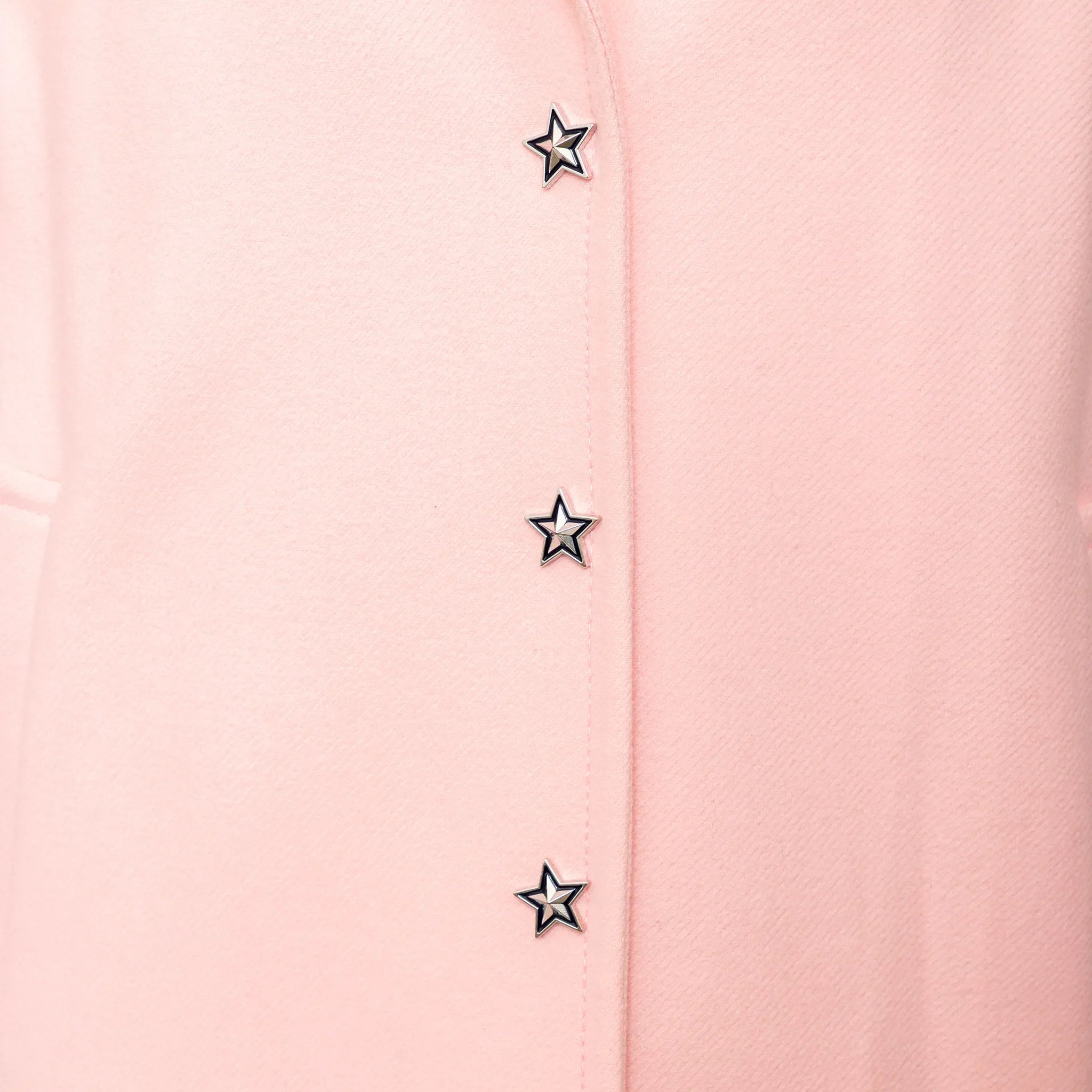 Iceberg long coat in soft pink virgin wool blend features a relaxed fit, star-shaped snap buttons, classic lapel collar, and smooth acetate lining for comfort.