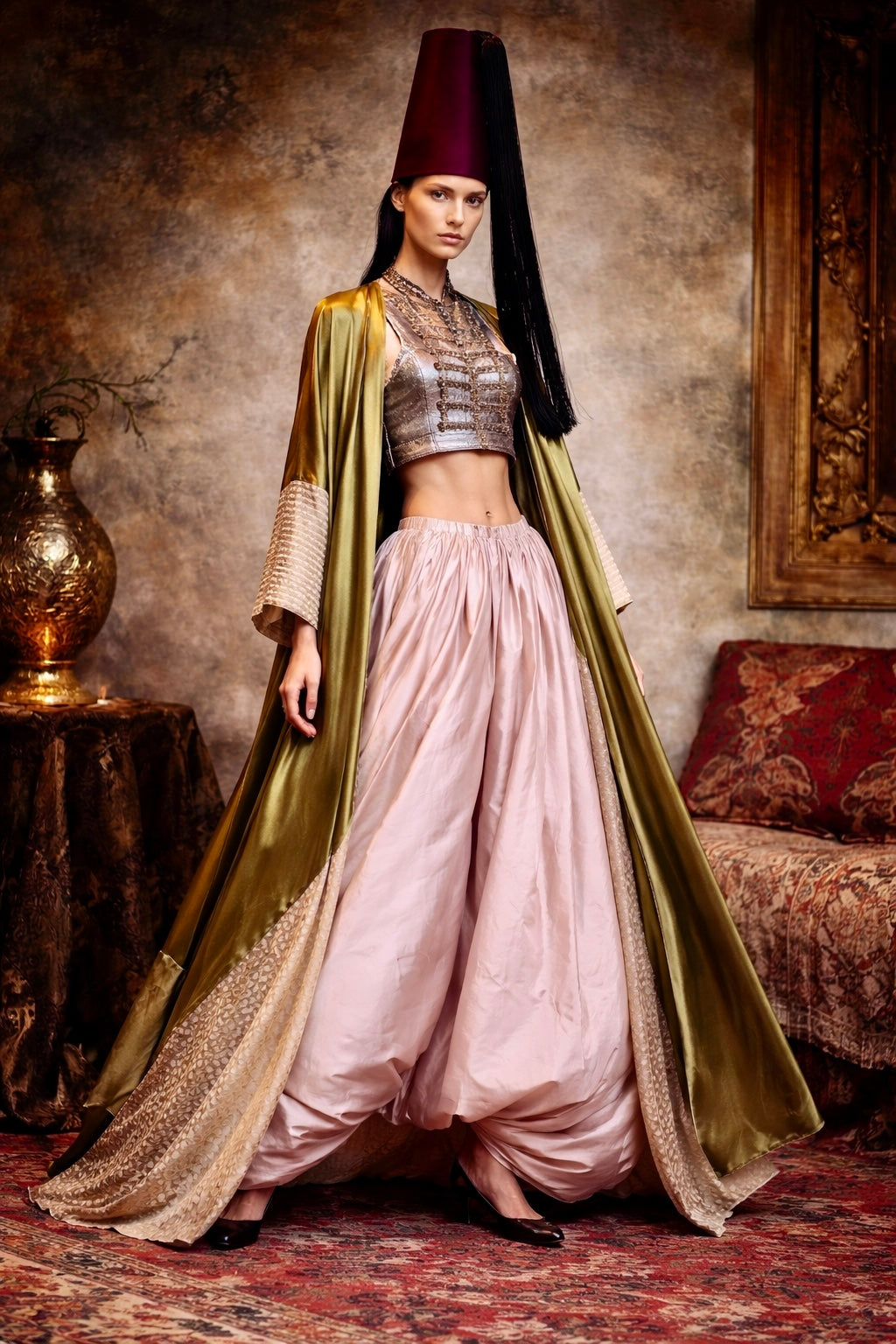 Rifat Ozbek, 90s silk and velvet long handkerchief hem robe