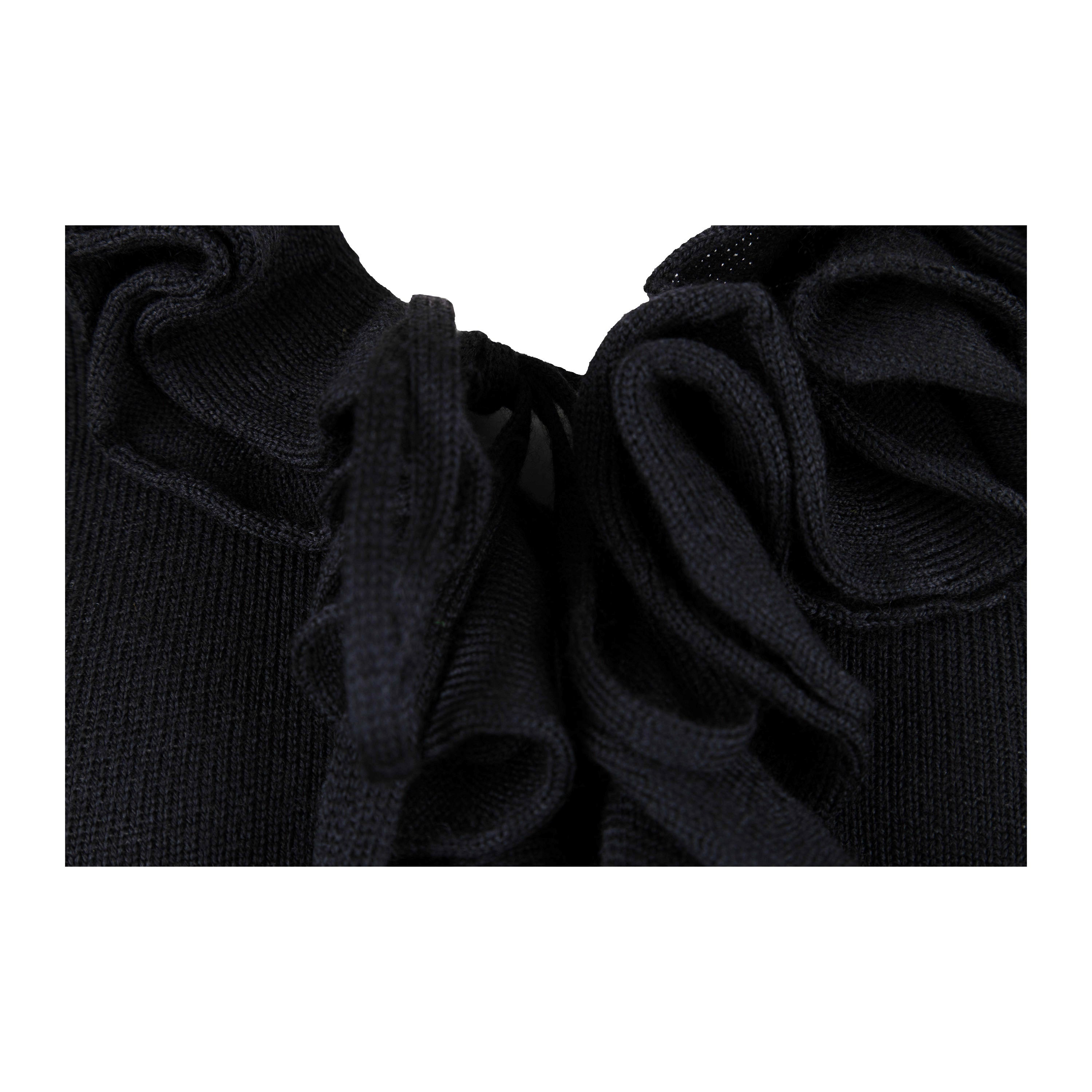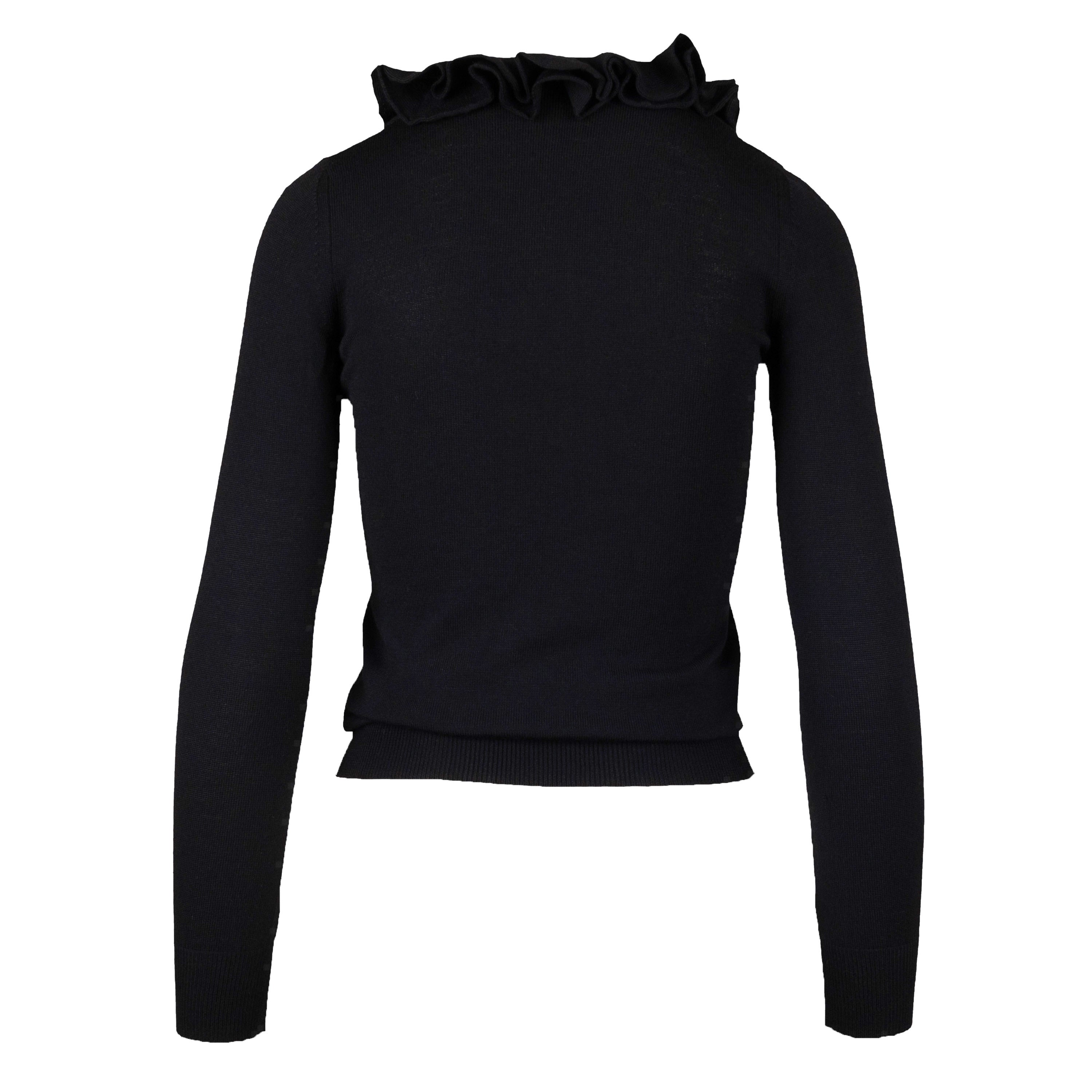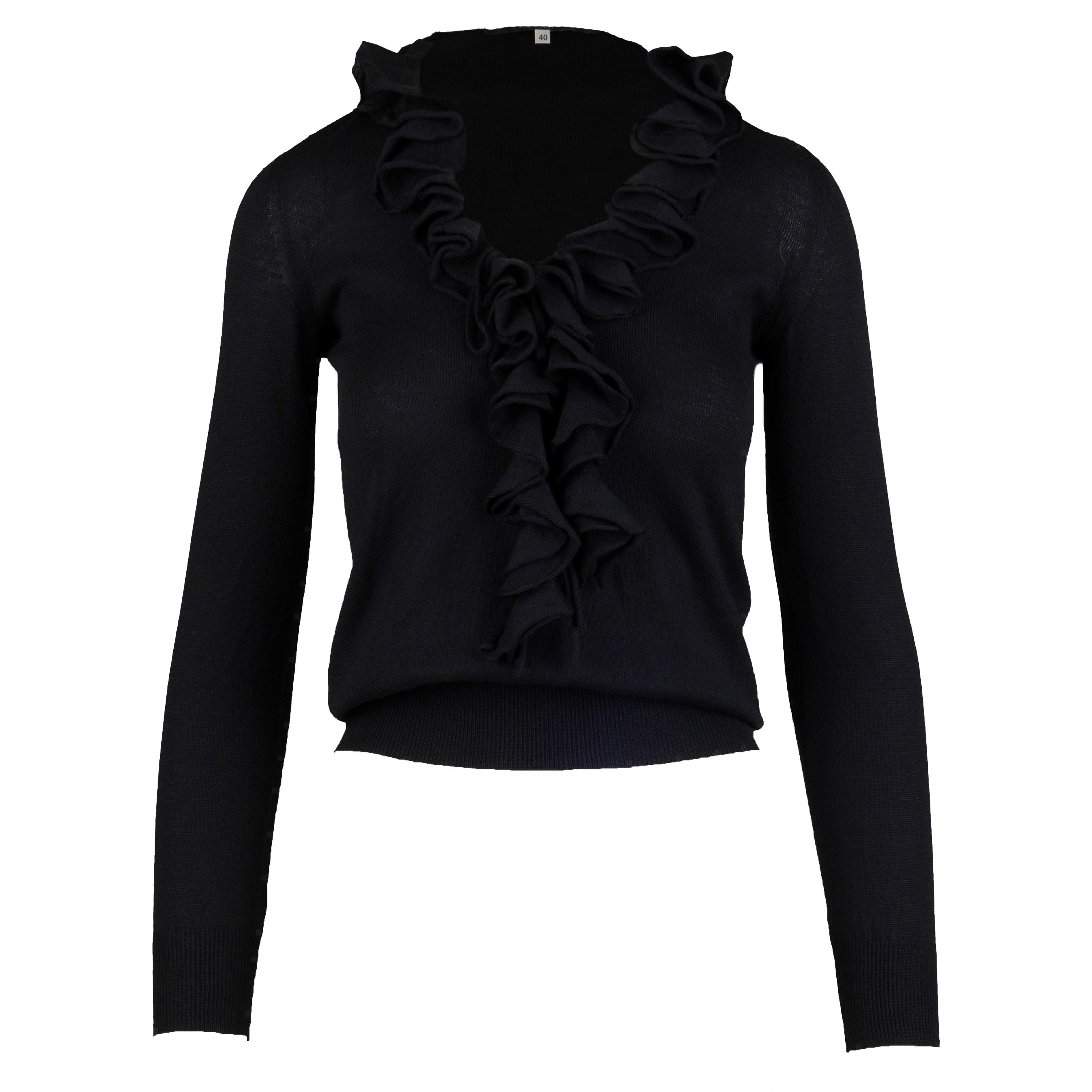 This Terre Alte Ruffled Neck Sweater blends classic chic with modern luxury. Made of 100% merino wool, the soft v-neck sweater features ruffles on the front, with a tie-knot at the end. Perfect for adding a touch of contemporary elegance.