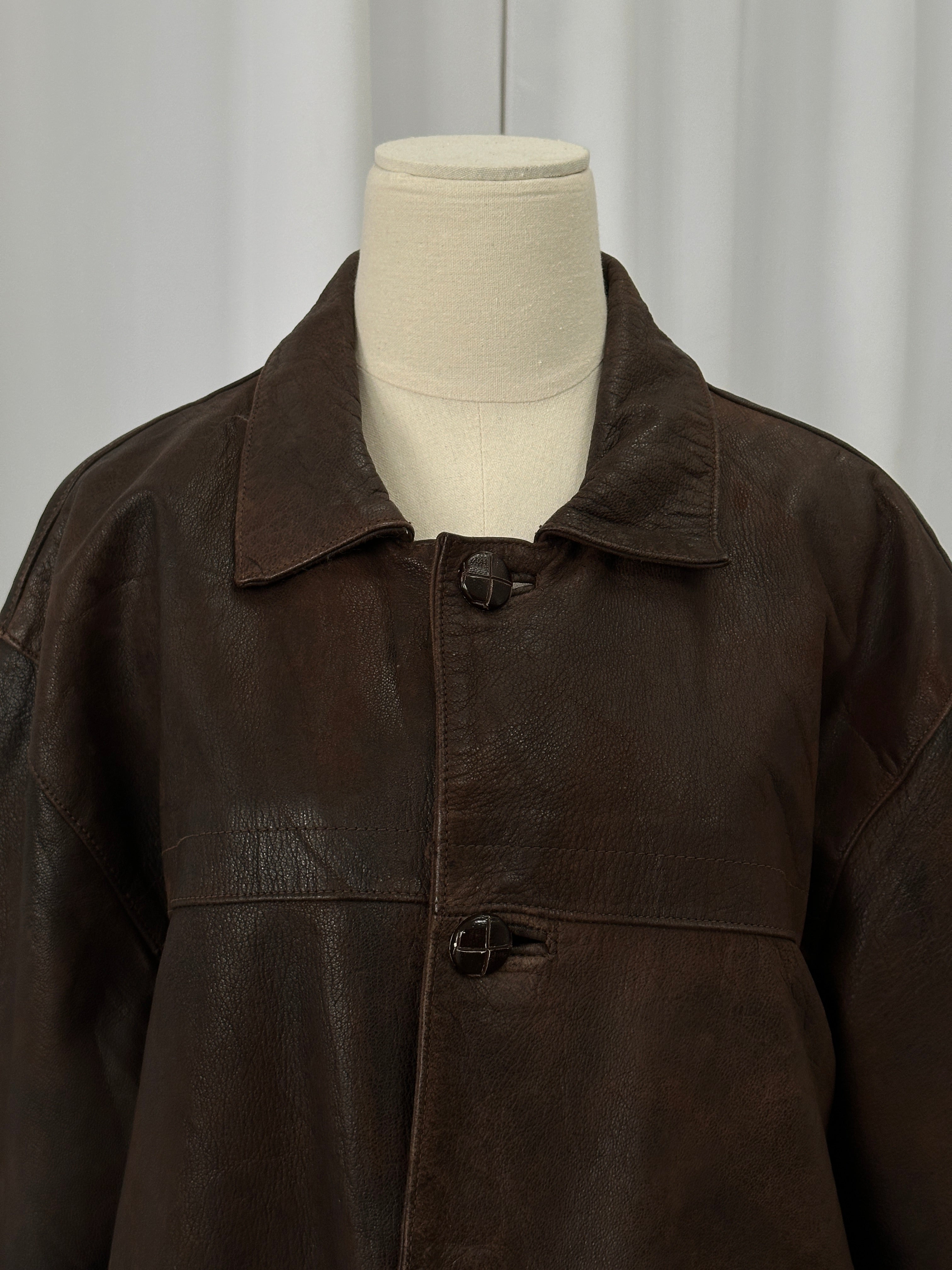Vintage 1980s Aged Boxy Leather Jacket - XL