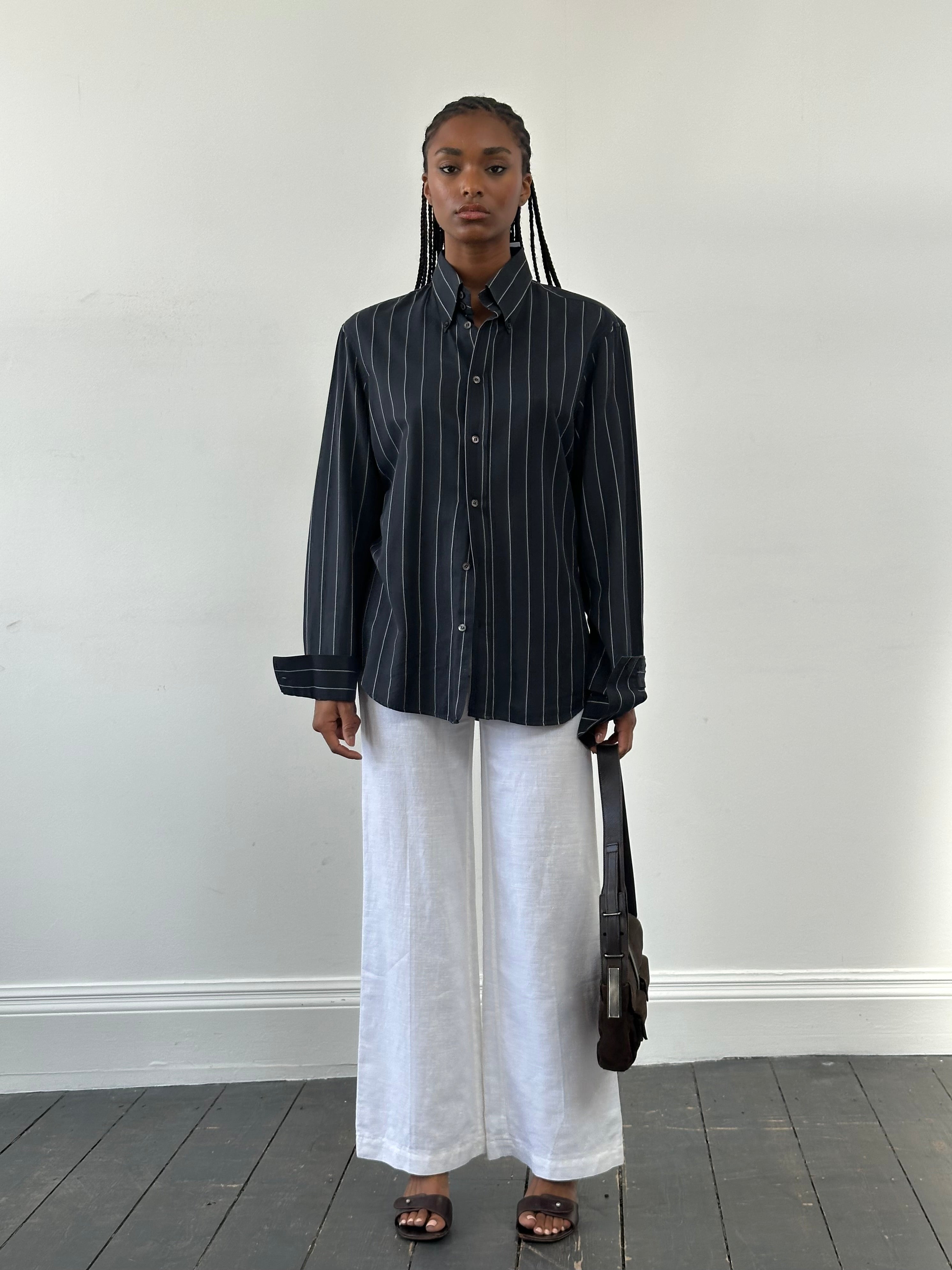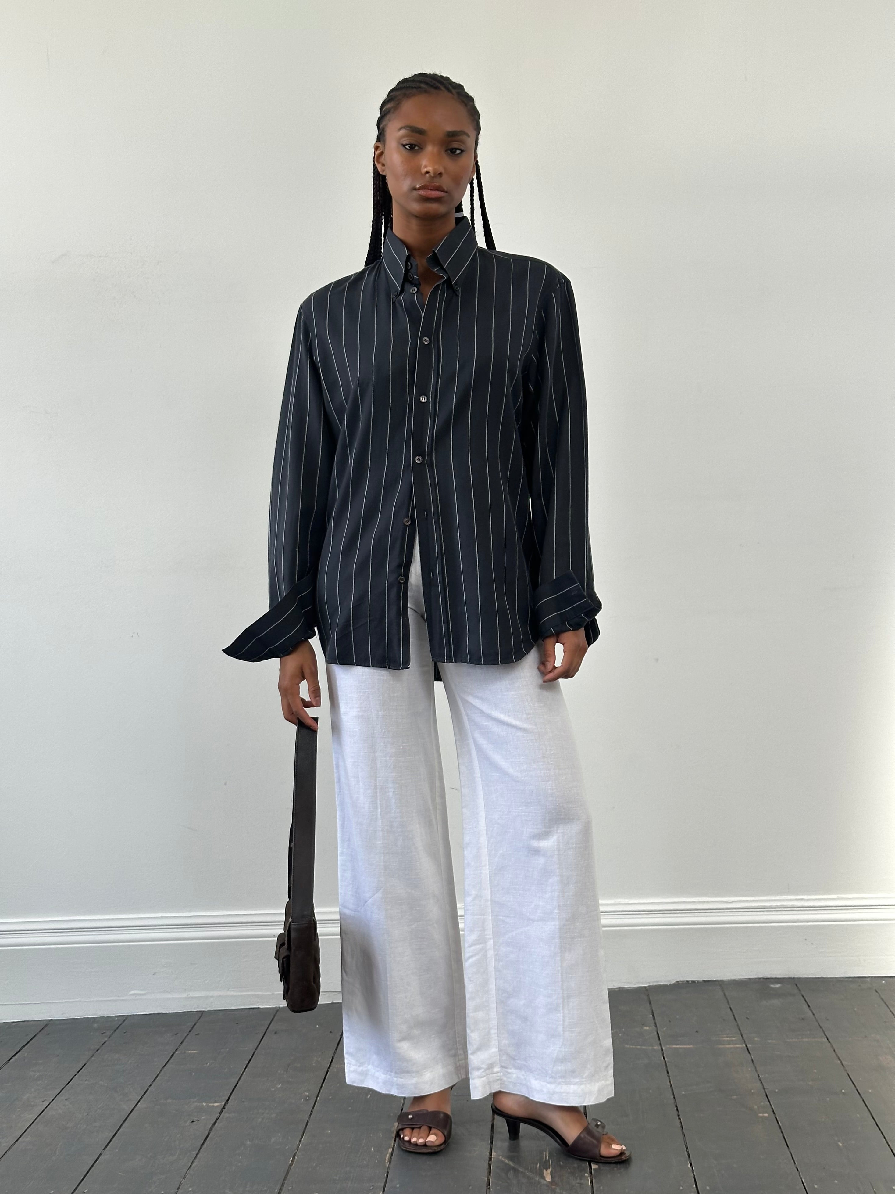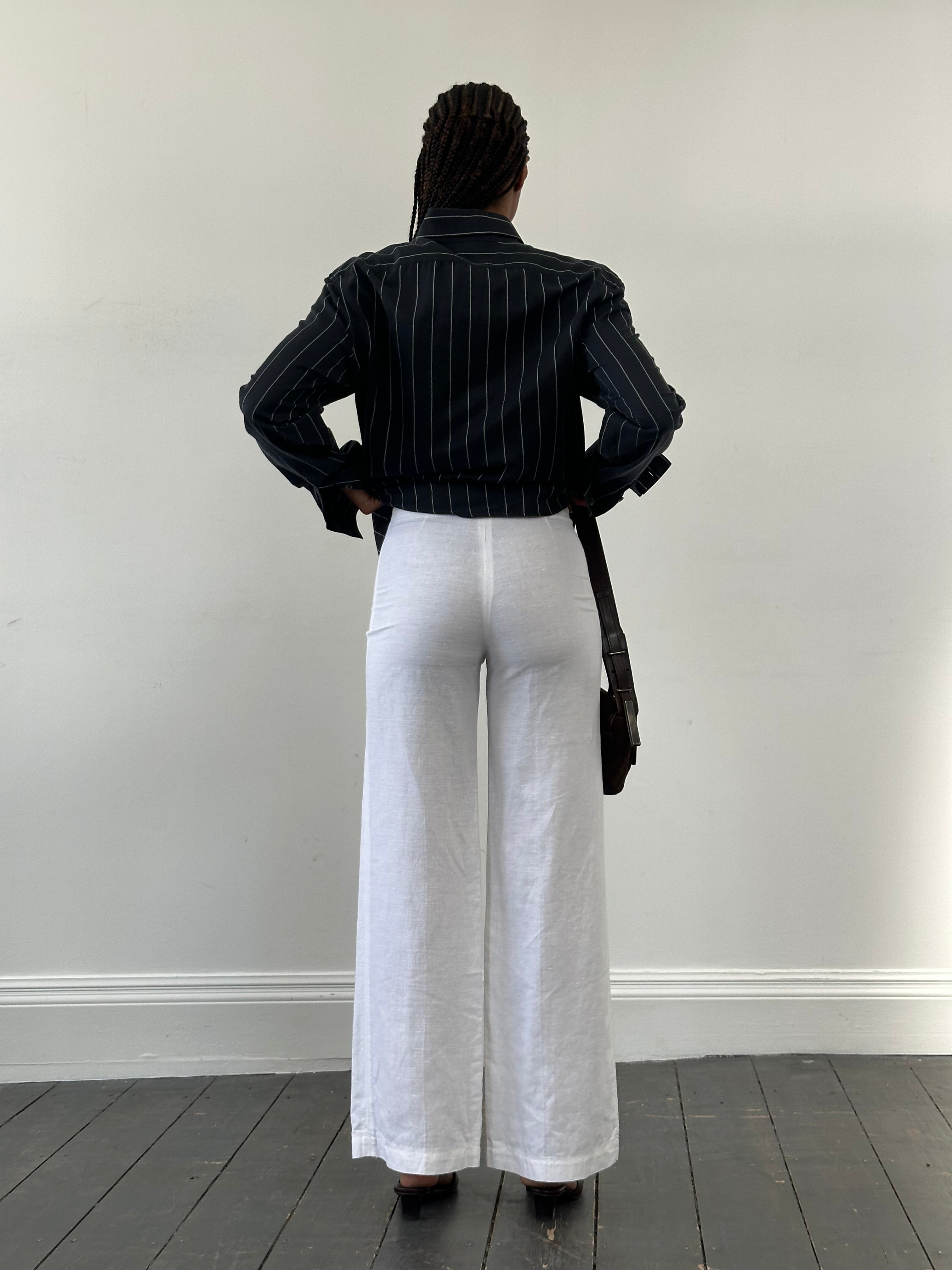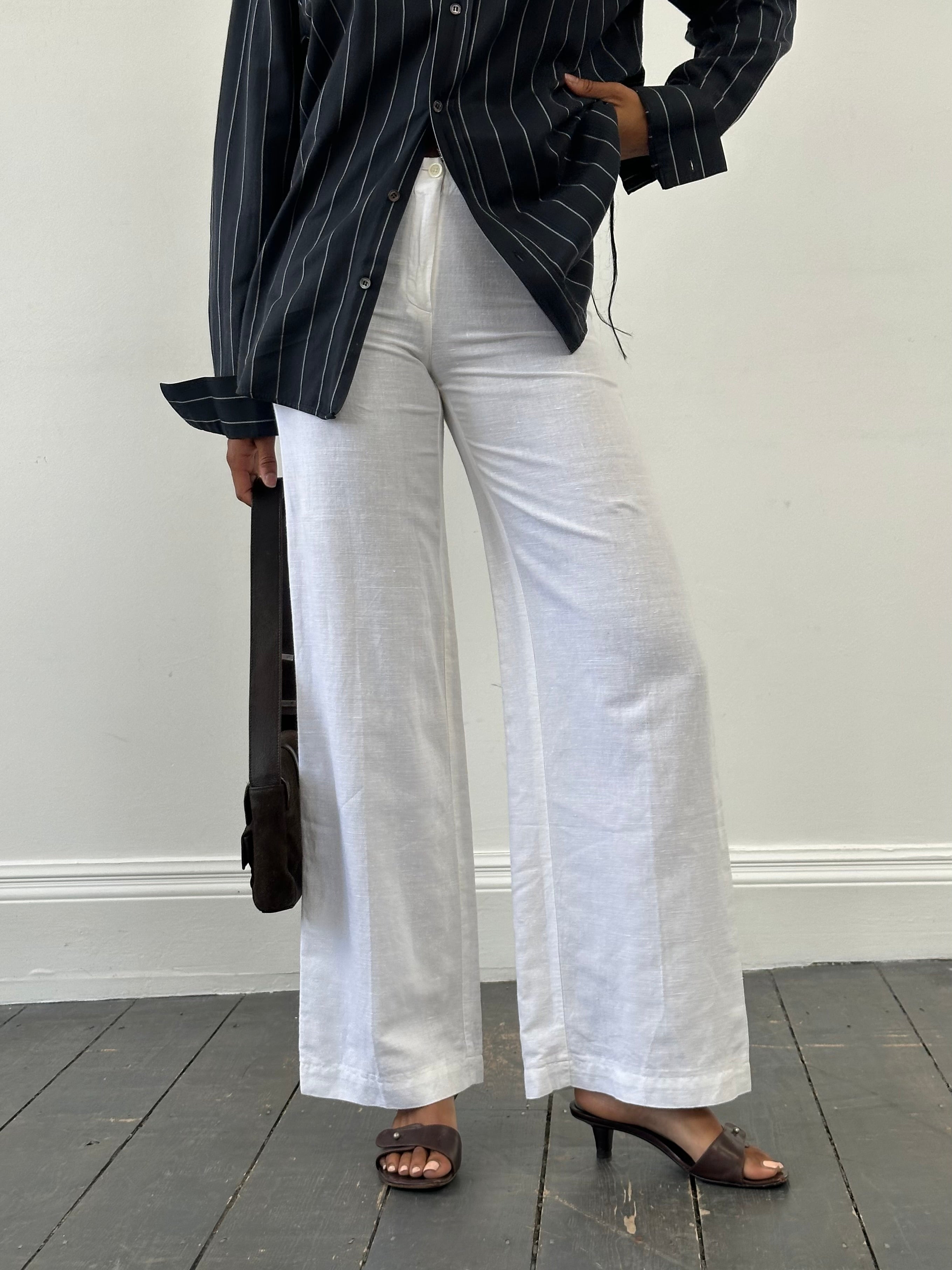Vintage 1990s Pure Linen Low Waist Wide Leg Trousers - W24
