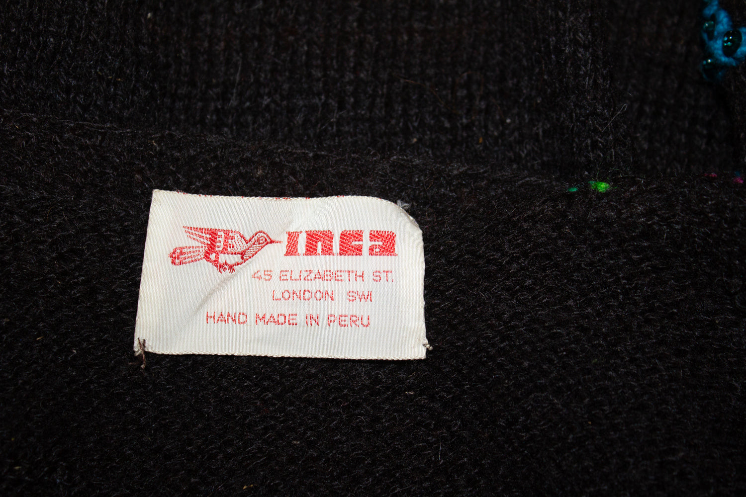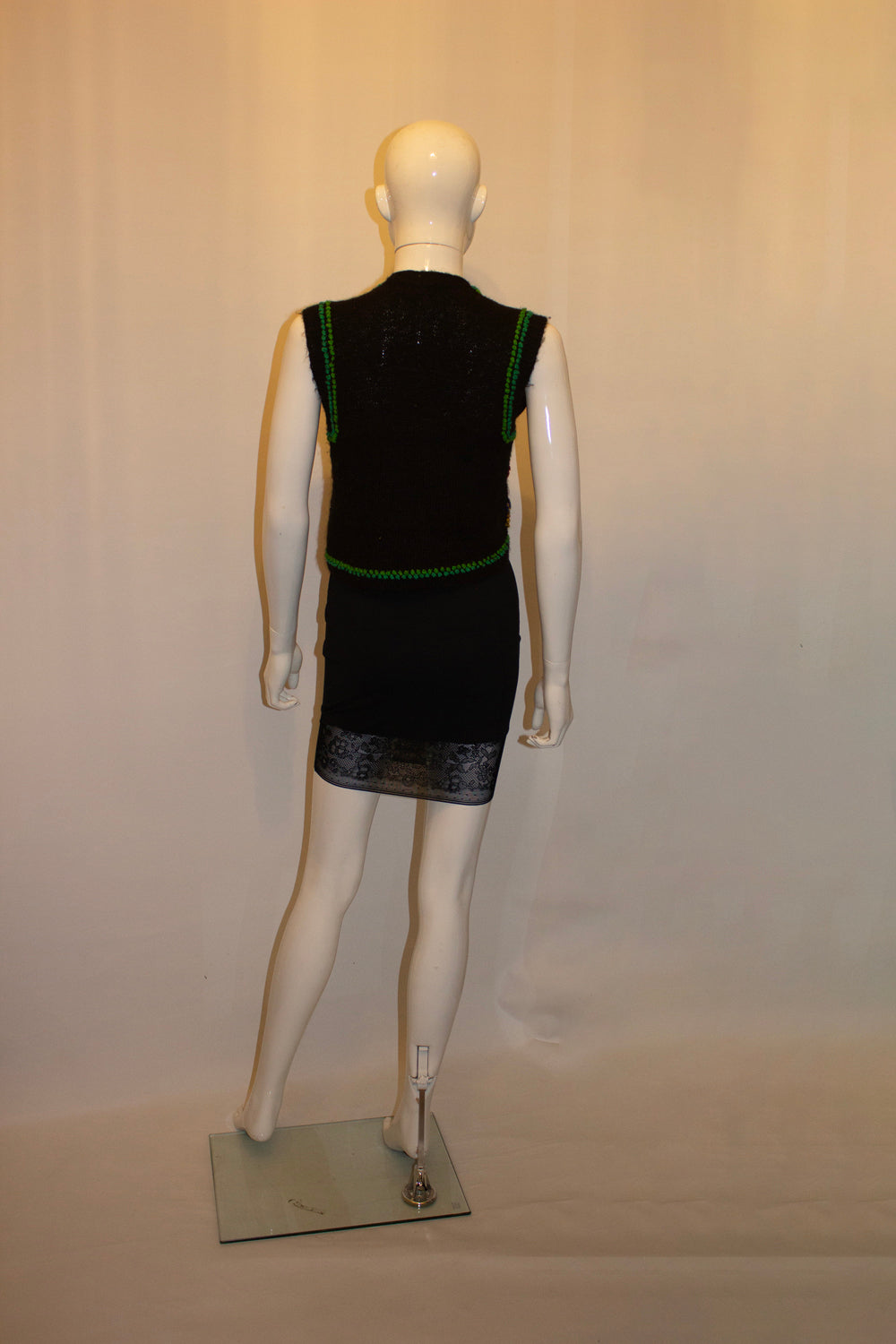 A wonderful vintage alpaca waistcoat by Inca of Elizabeth Street , London SW1. In a super soft black wool, the waist coat has attractive bead and sequin detail on the front.