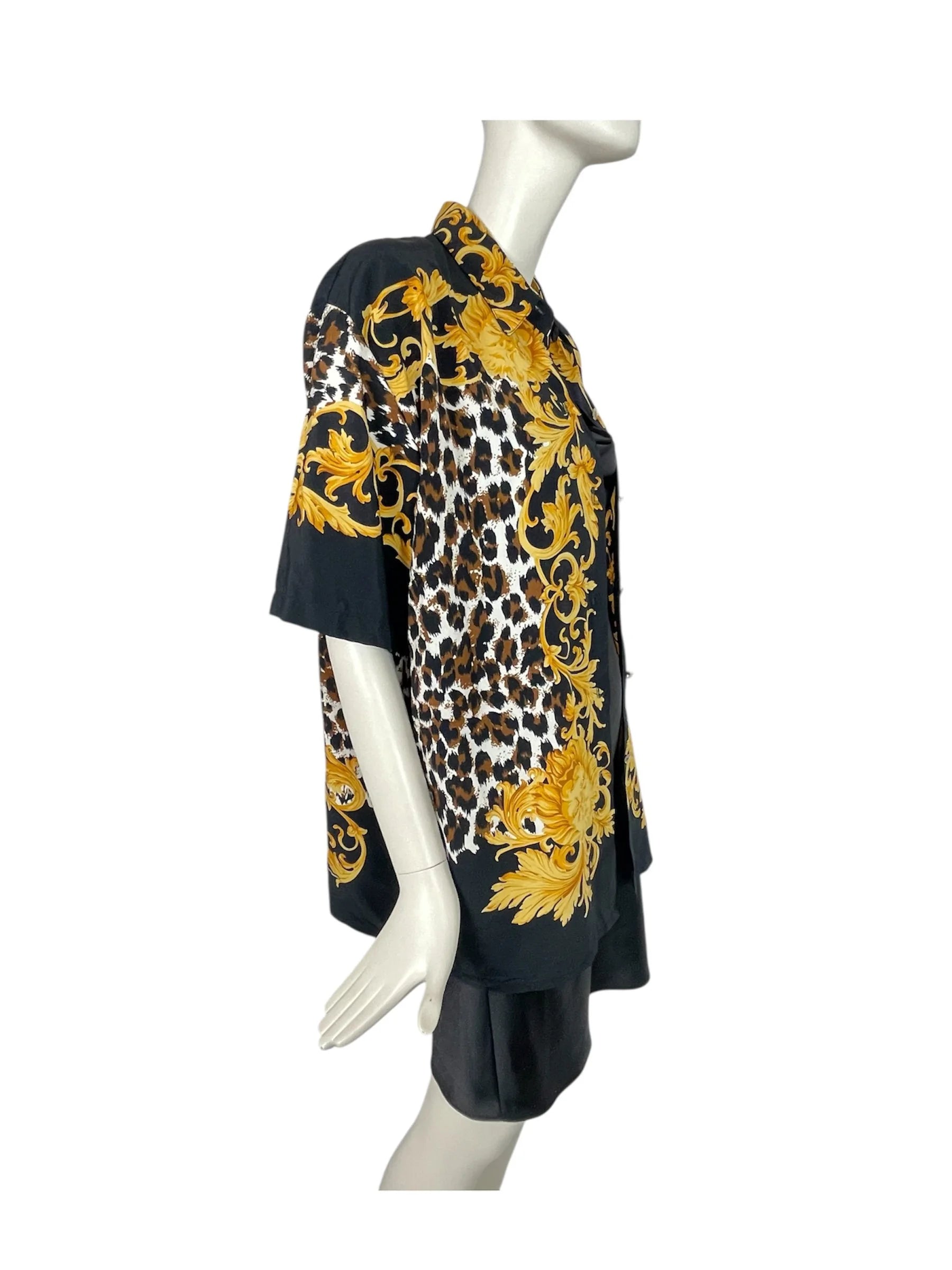 Vintage Baroque & Leopard Print Button-Up Shirt