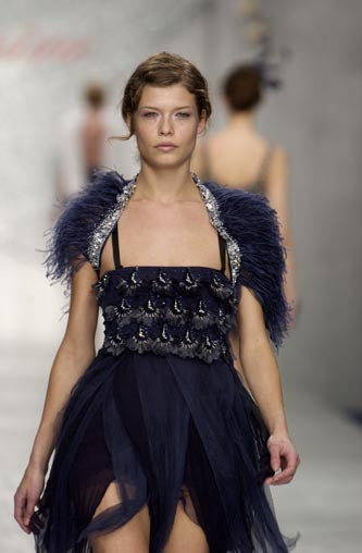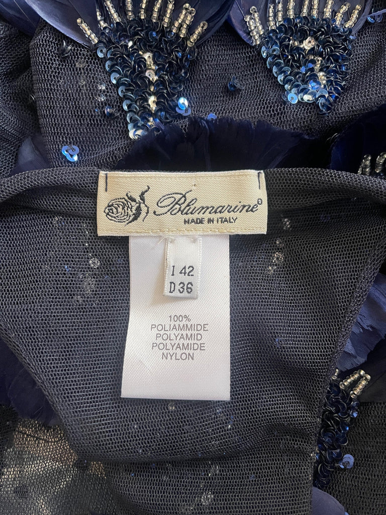 2003 Blumarine Runway Documented Blue Tulle Sequin and Feather Top