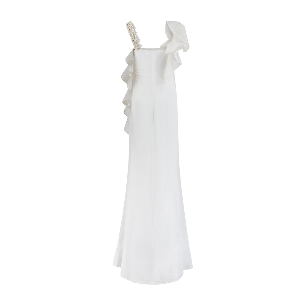 2011 Valentino White Dress with Ruffle Detail and Embellished Strap