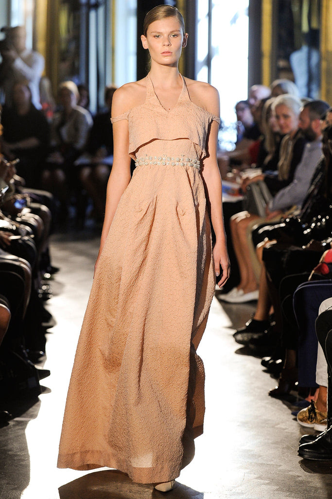 2014 Michael Van Der Ham Runway Documented Pale Peach Brocade Dress