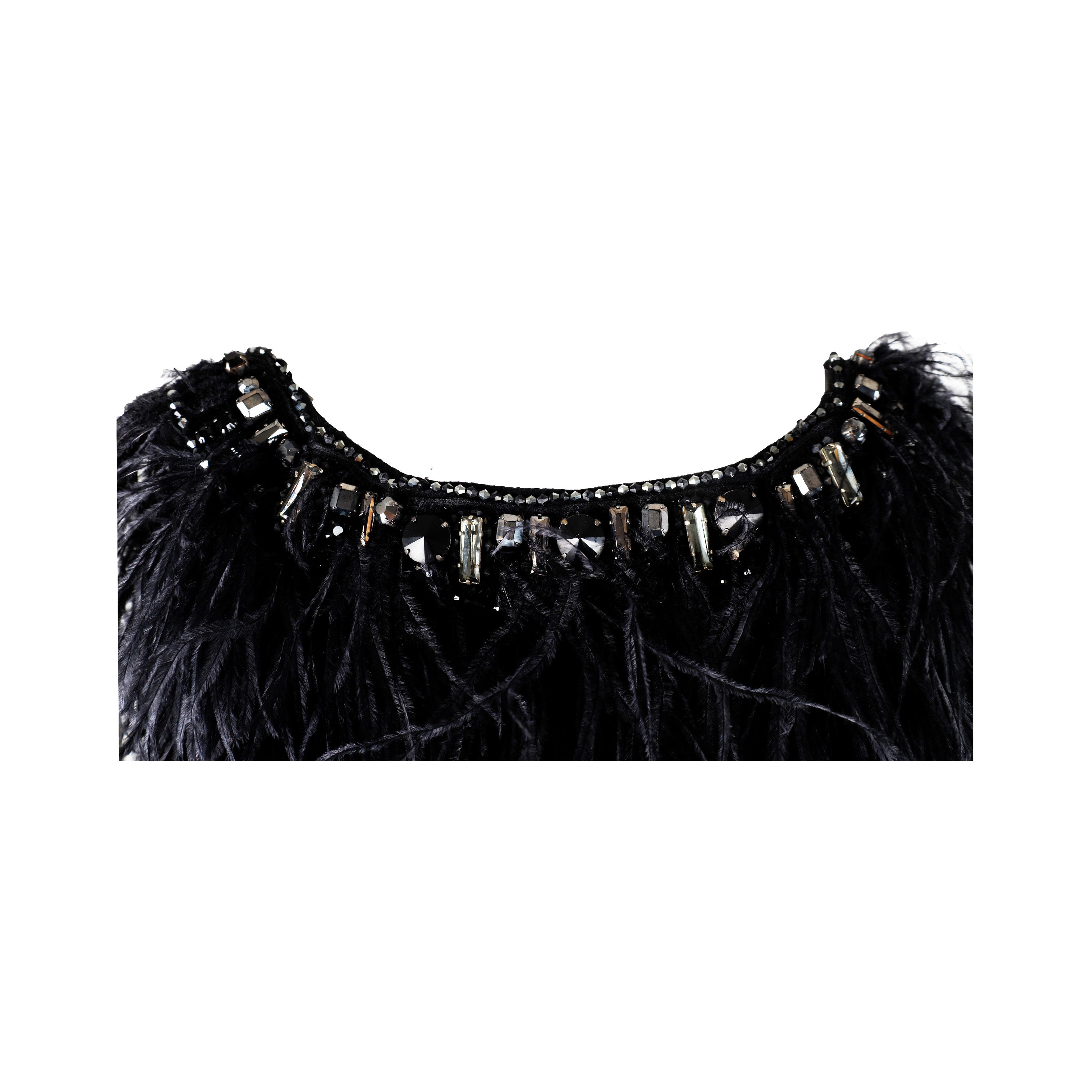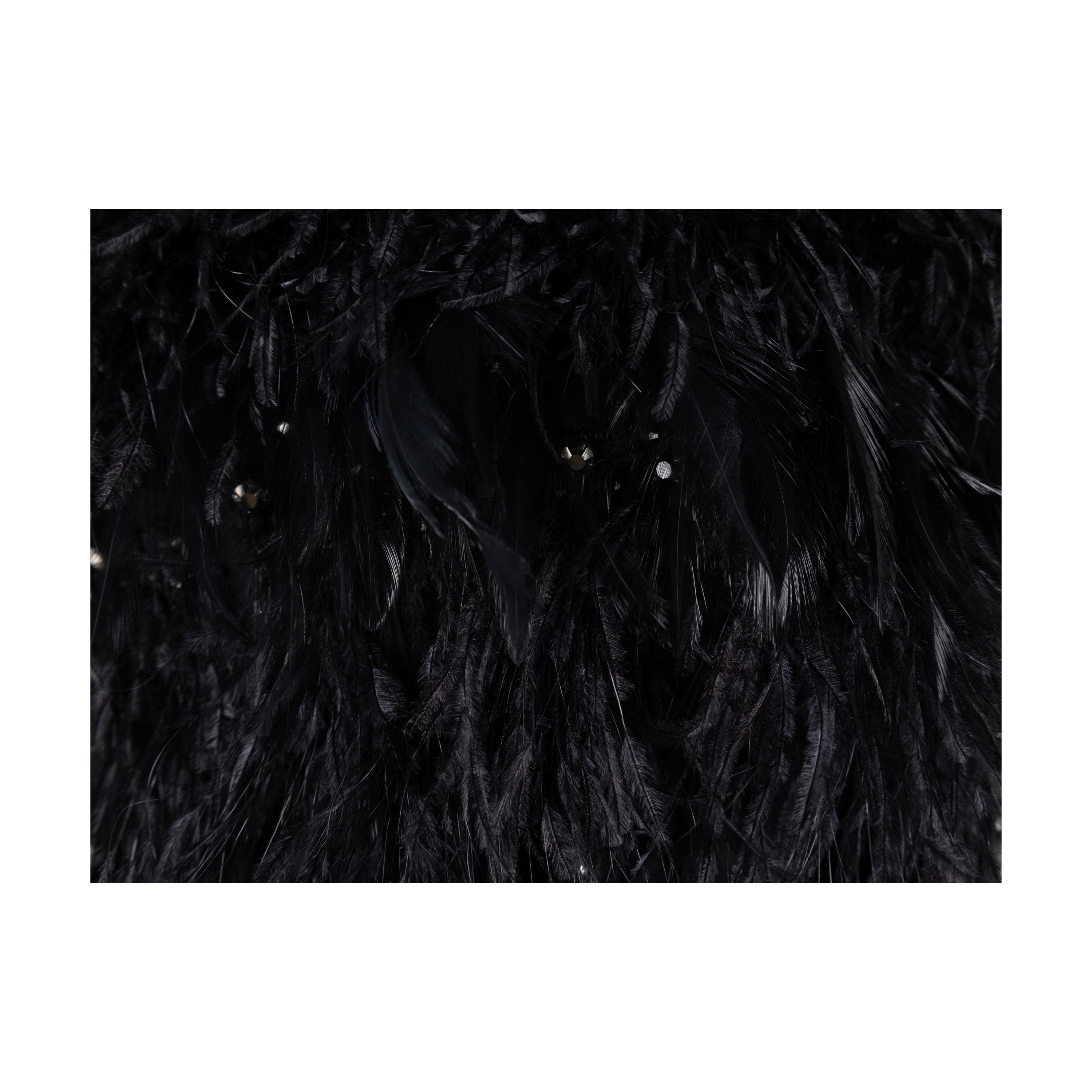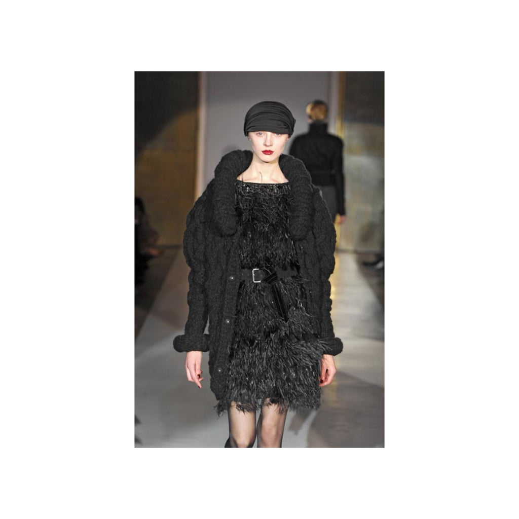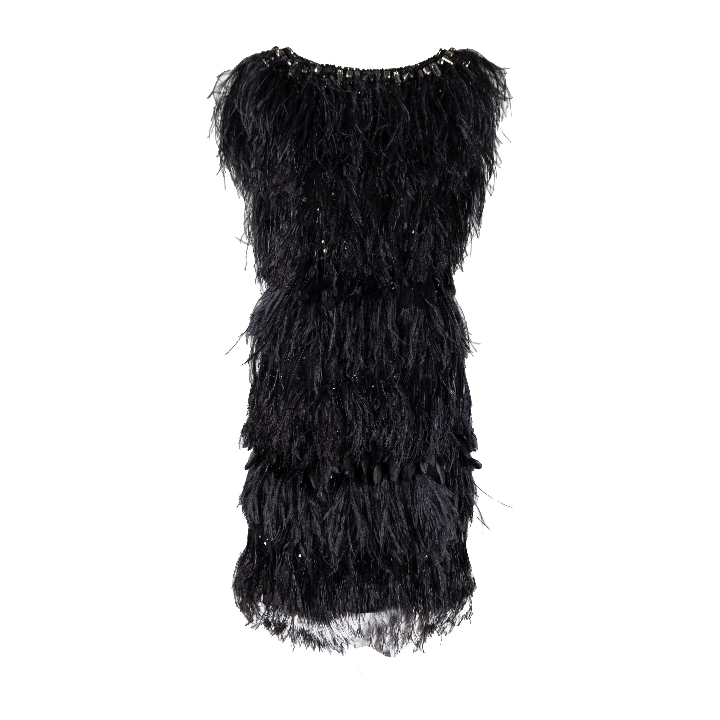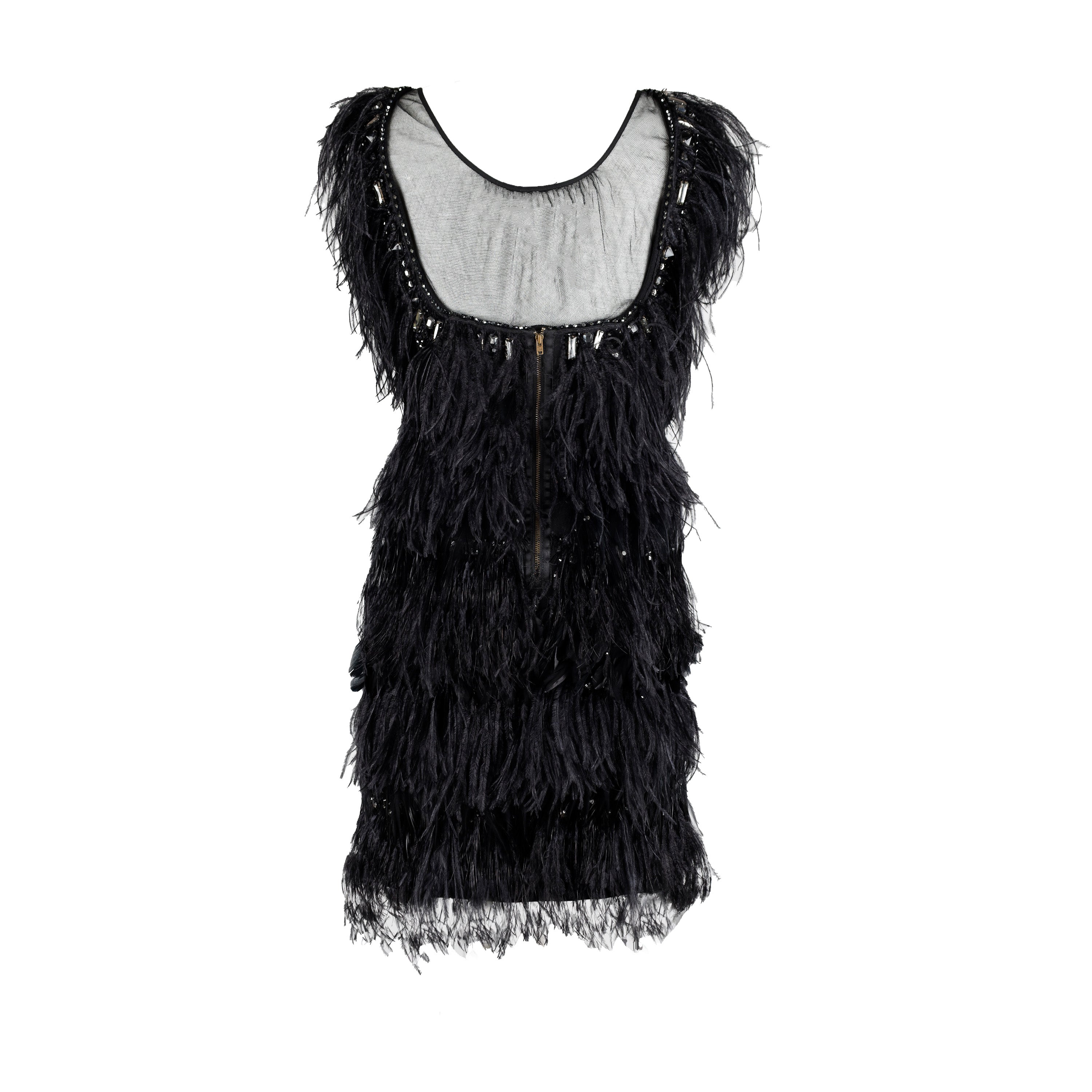 This gorgeous 6267 Feather Embroidered Dress from the Fall Winter 2007 collection has been crafted using a blend of virgin and Angora wool. The dress features an eye-catching design covered with exotic feathers, beads, and embellishments, and a striking open back with mesh part. Perfect for making a statement at any event.