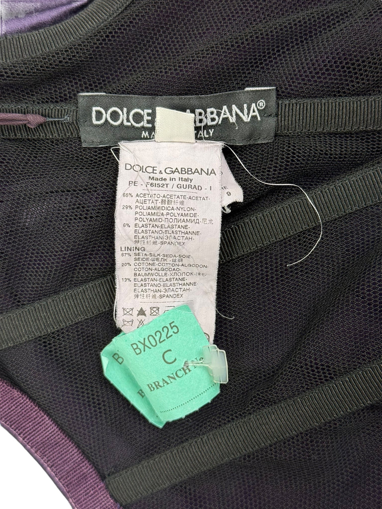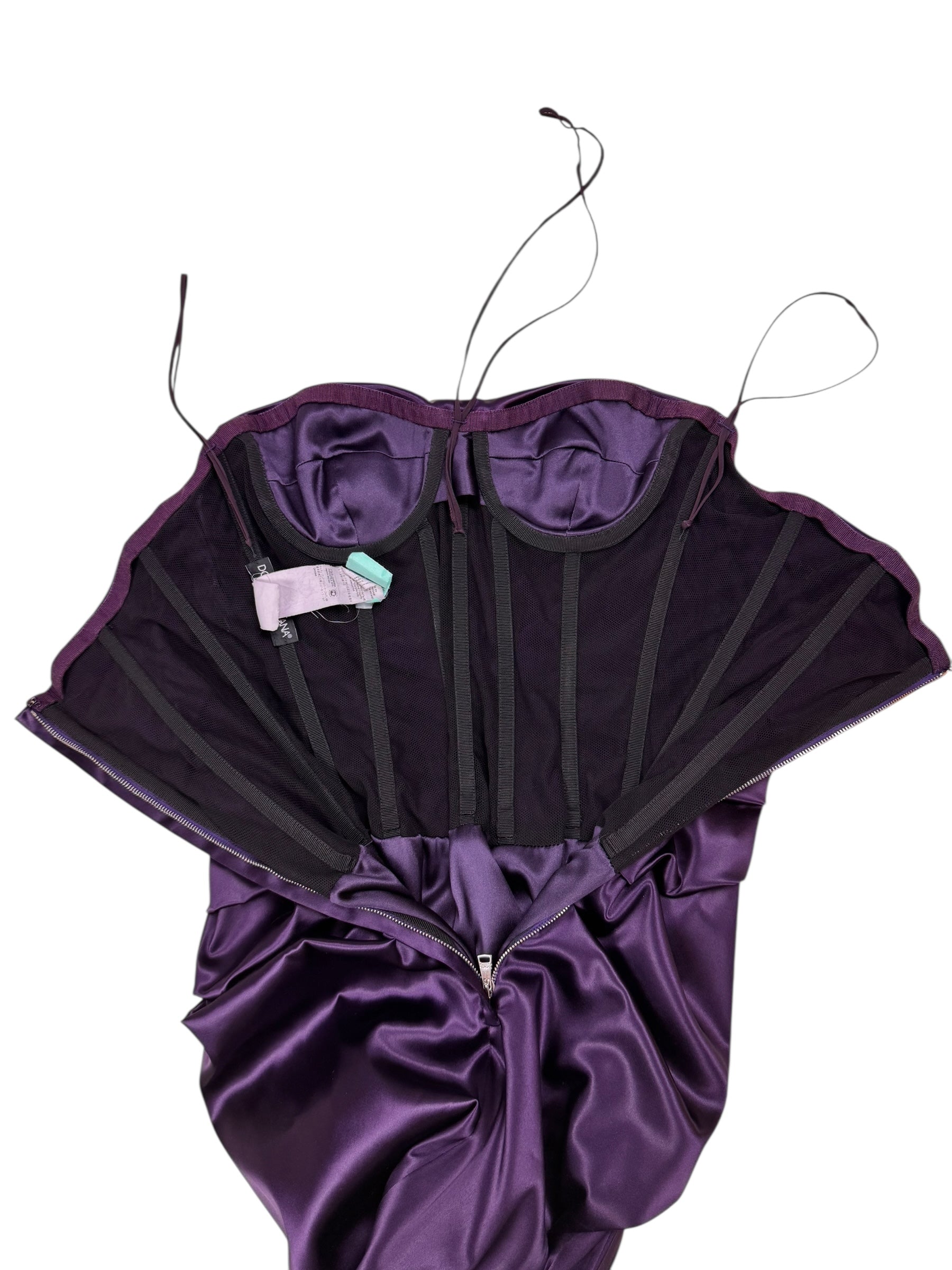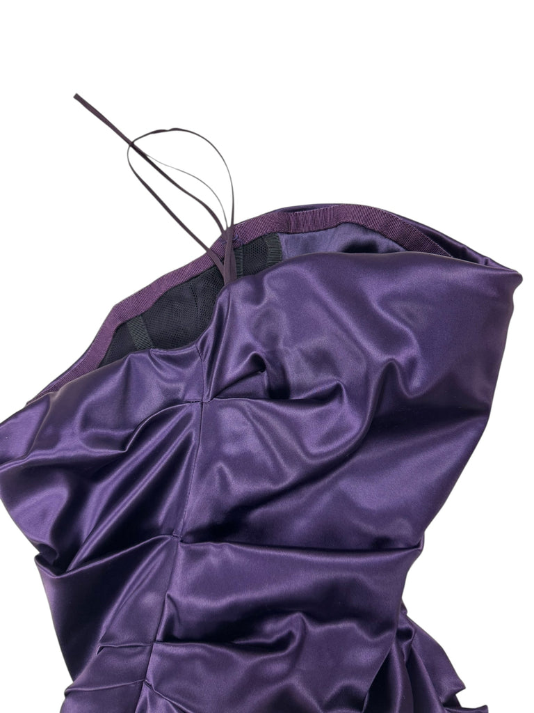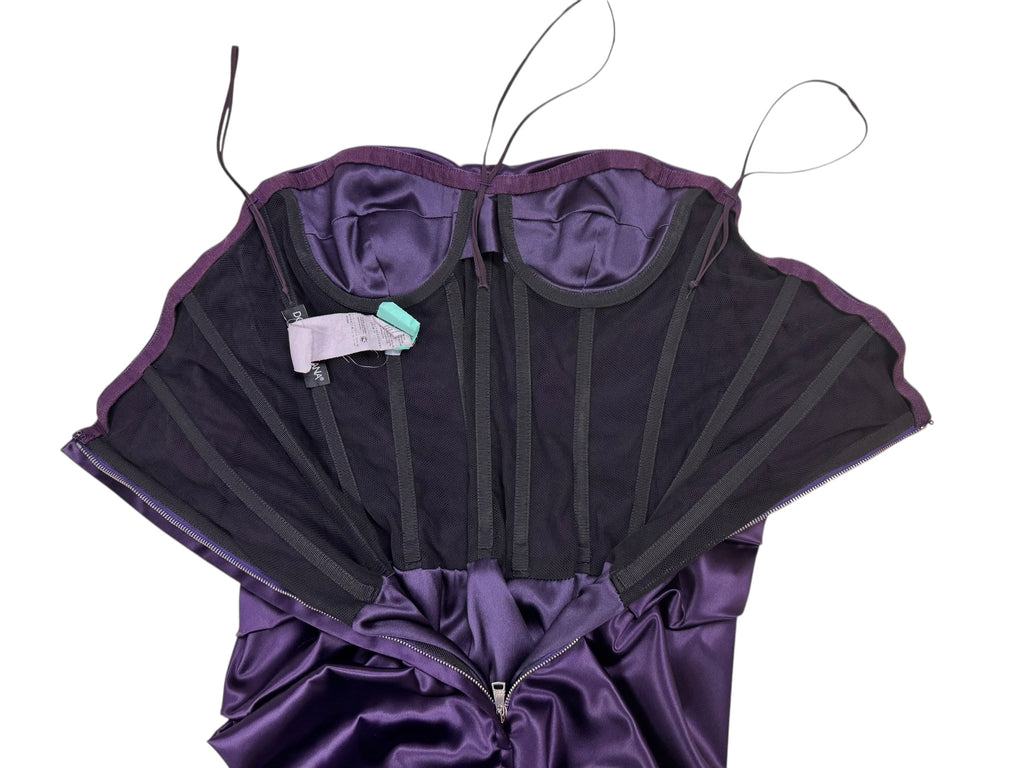 Dolce & Gabbana F/W 2009 corseted deep purple ruched satin gown. Size S (UK8/10). All details below: