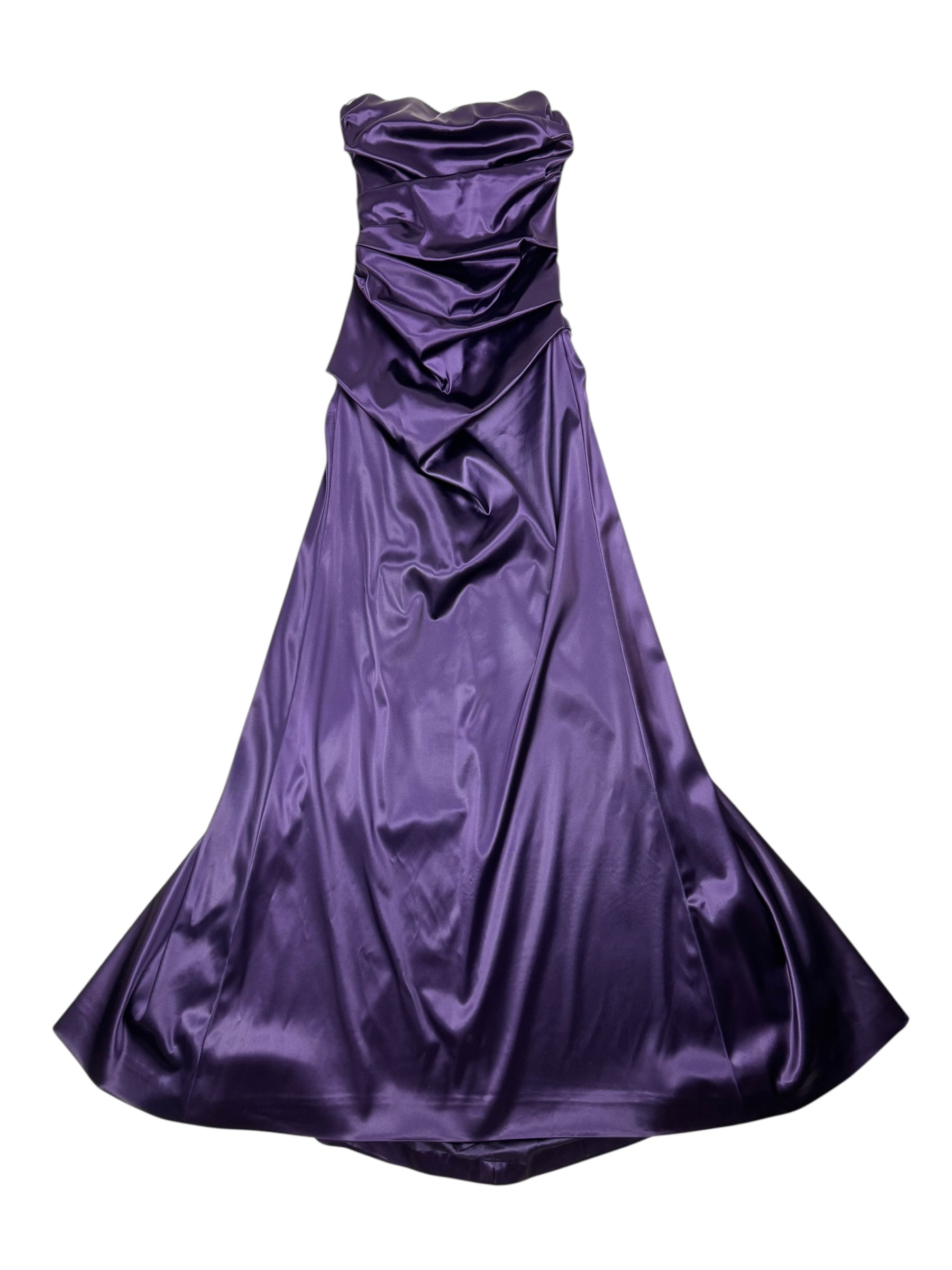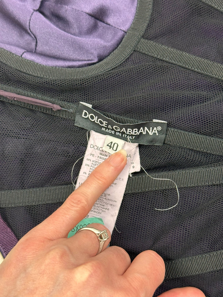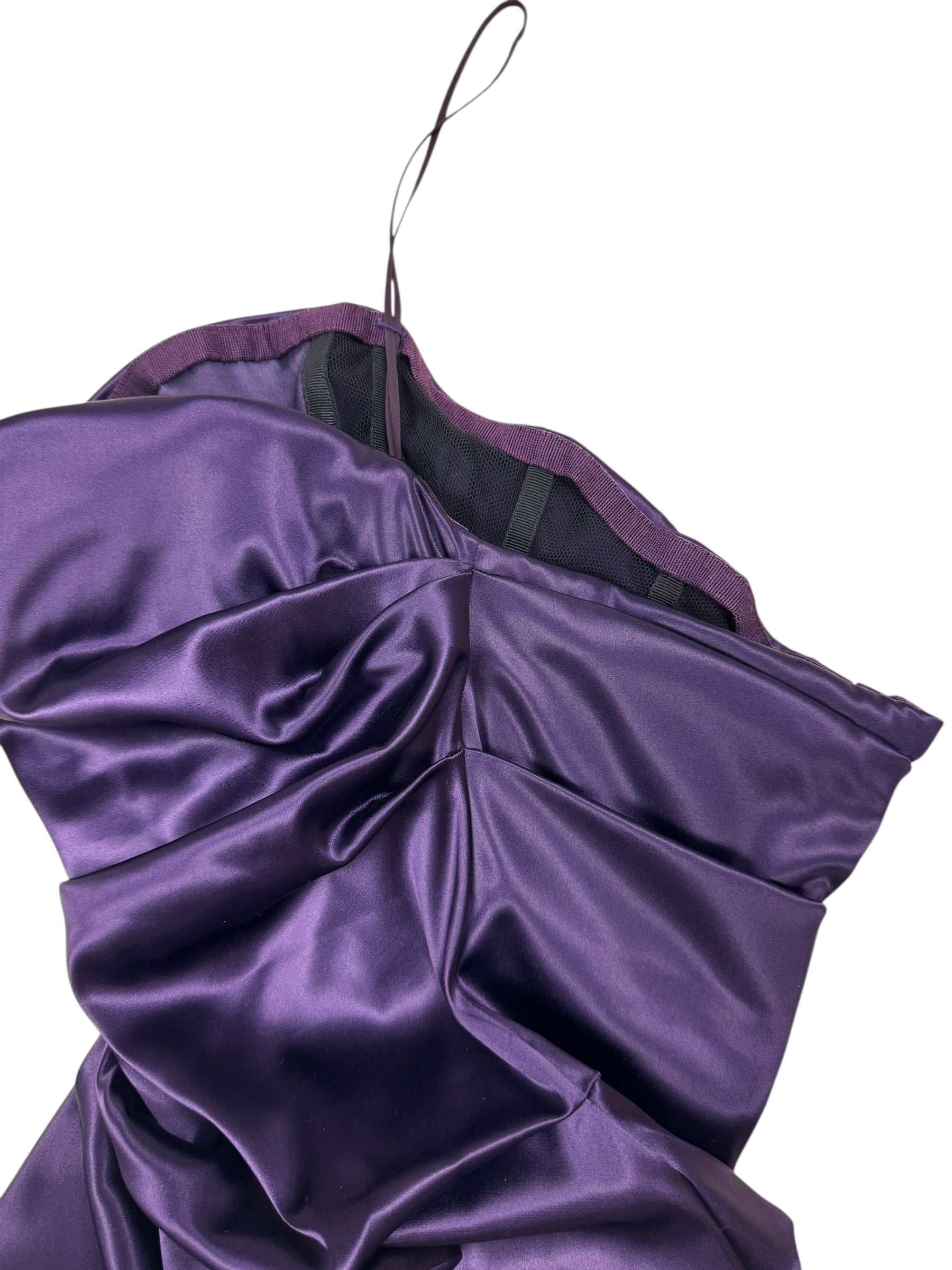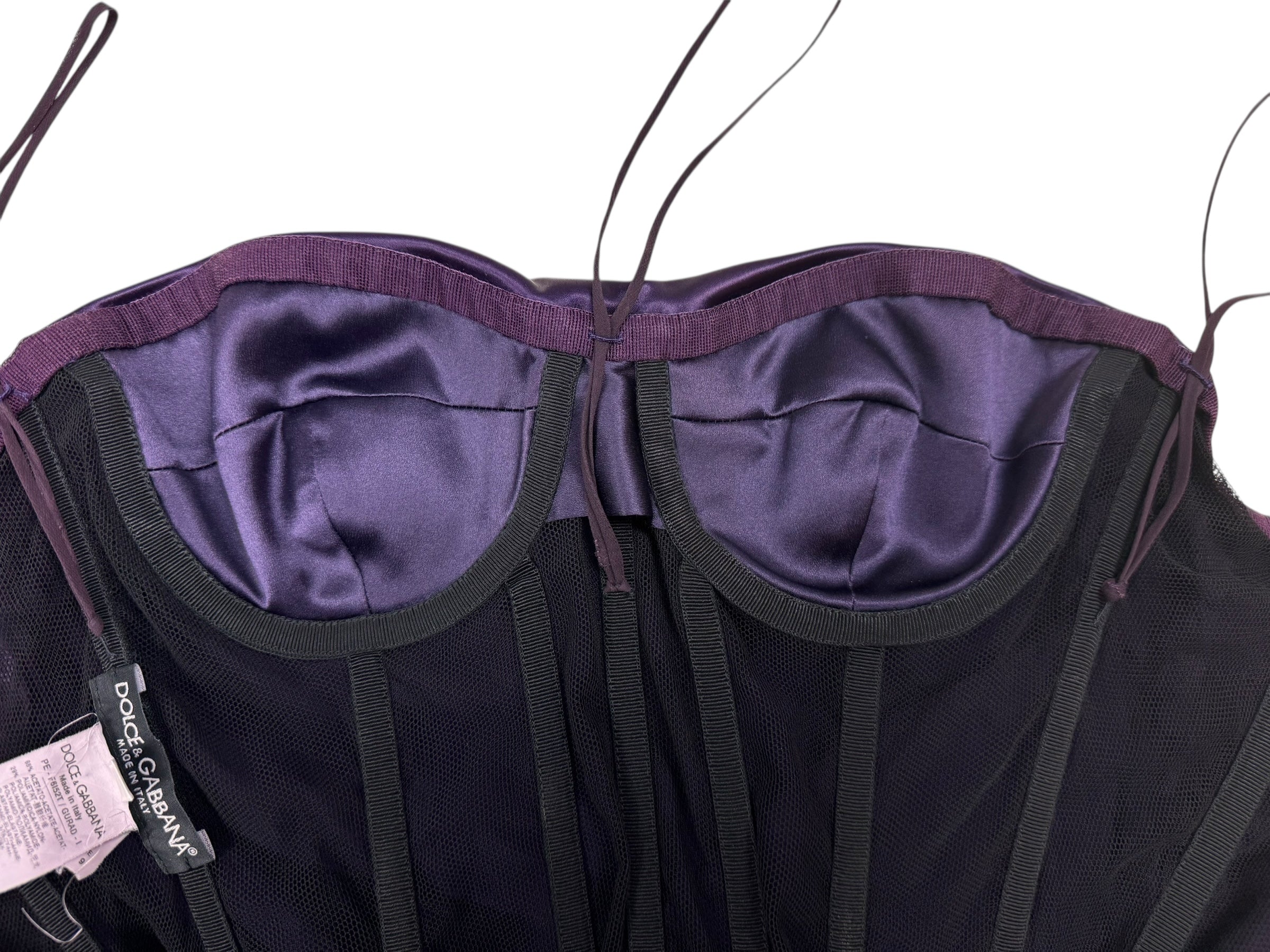 Dolce & Gabbana F/W 2009 corseted deep purple ruched satin gown. Size S (UK8/10). All details below: