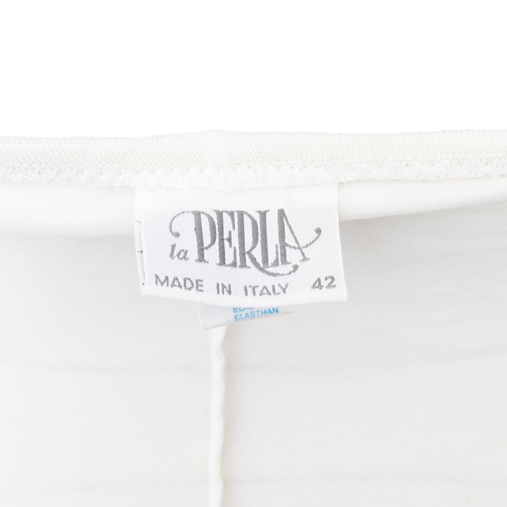 Expertly designed by La Perla, this ruched dress features a plunging neckline and elasticized waist for a flattering, comfortable fit. The halter neck style and delicate beaded accent at the waist add a signature touch to this white dress, made from a high-quality blend of nylon and elastane.